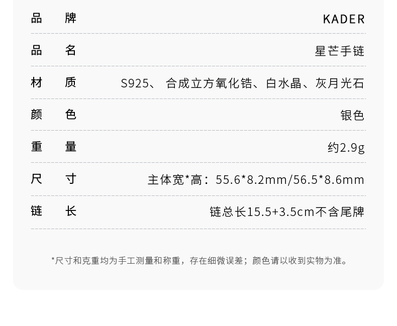 KADER卡蒂罗星芒手链女925银轻奢小众设计款高级生日礼物送女友送闺蜜