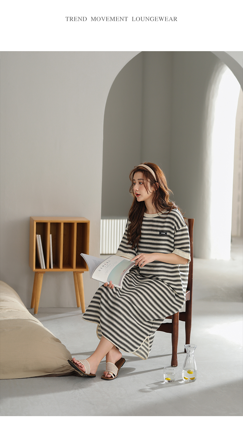 可人儿小众设计师新款泡泡绵女睡衣夏季短袖少女睡裙可外穿连衣裙