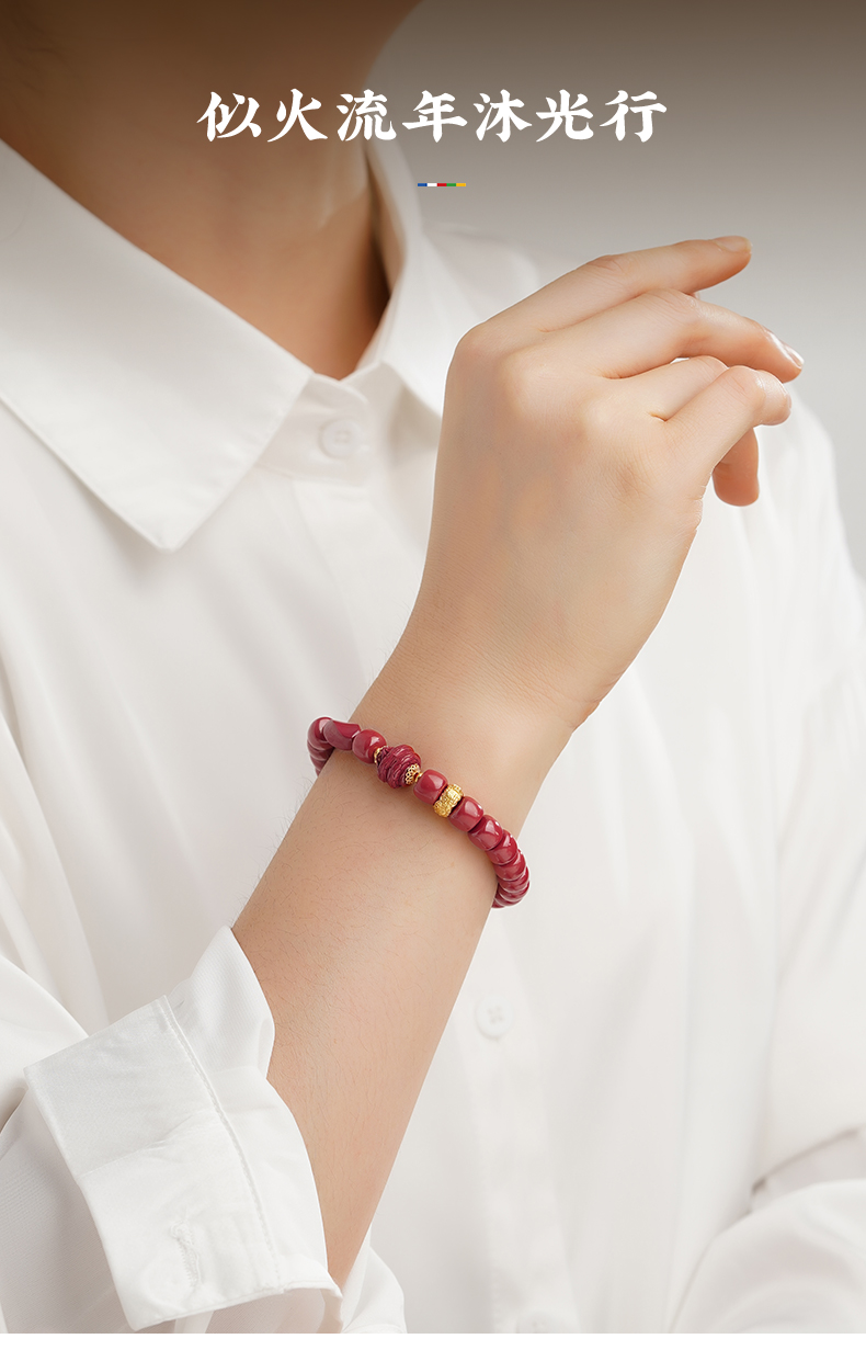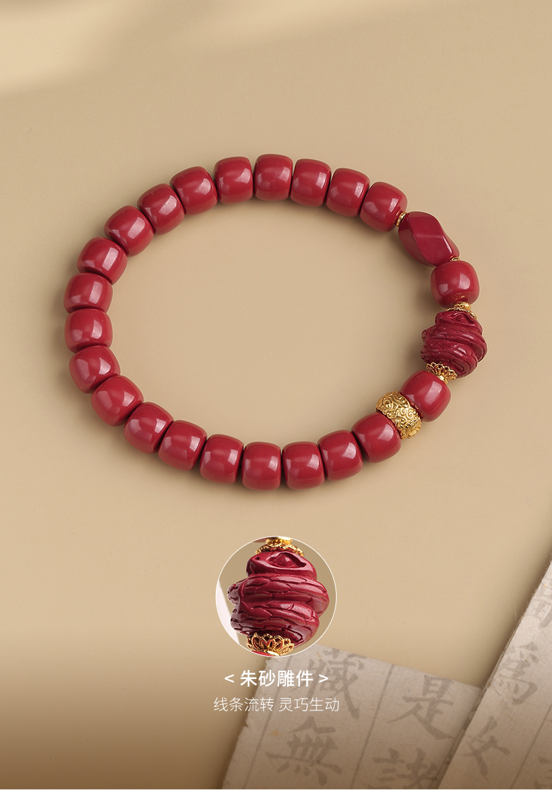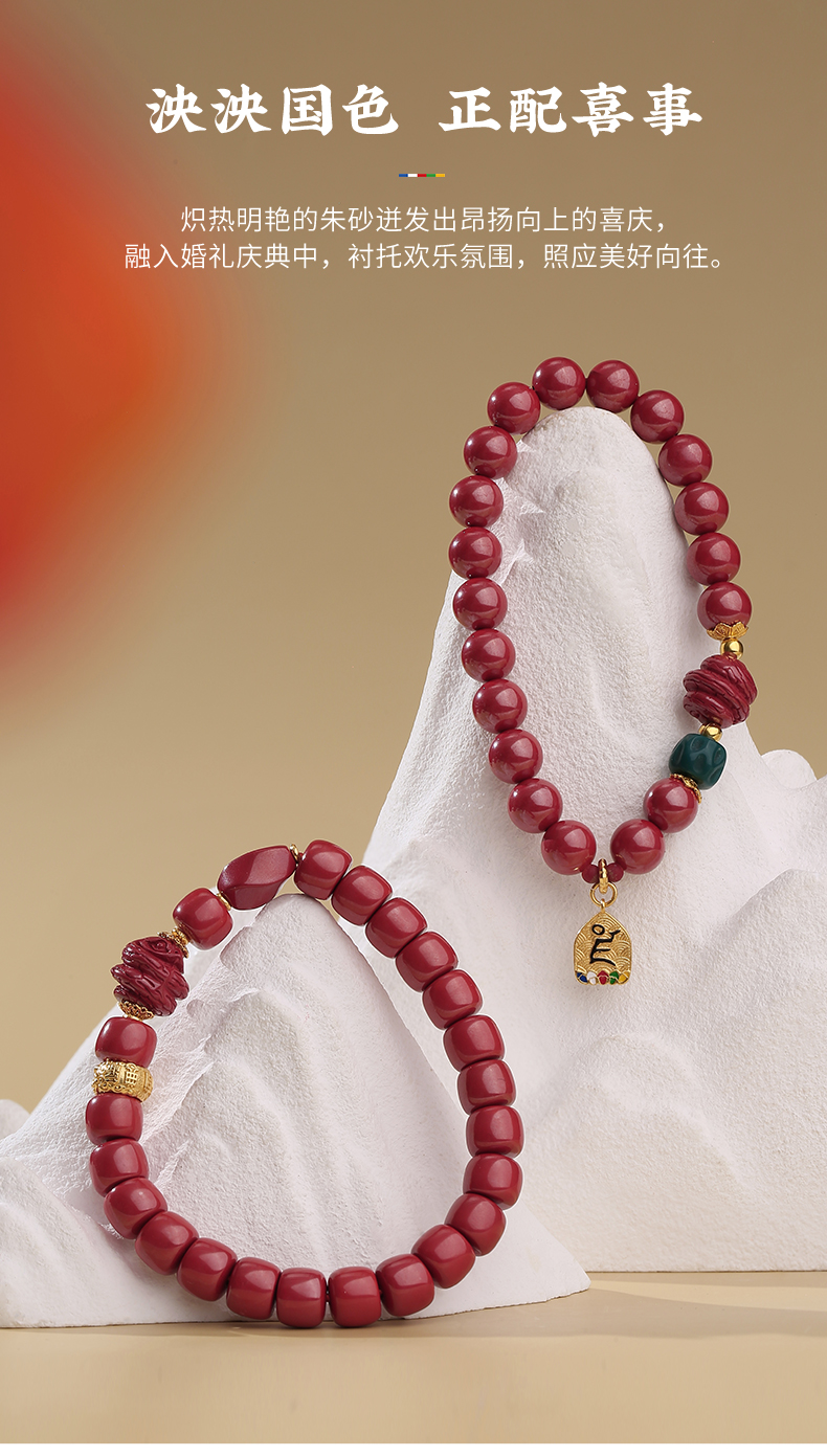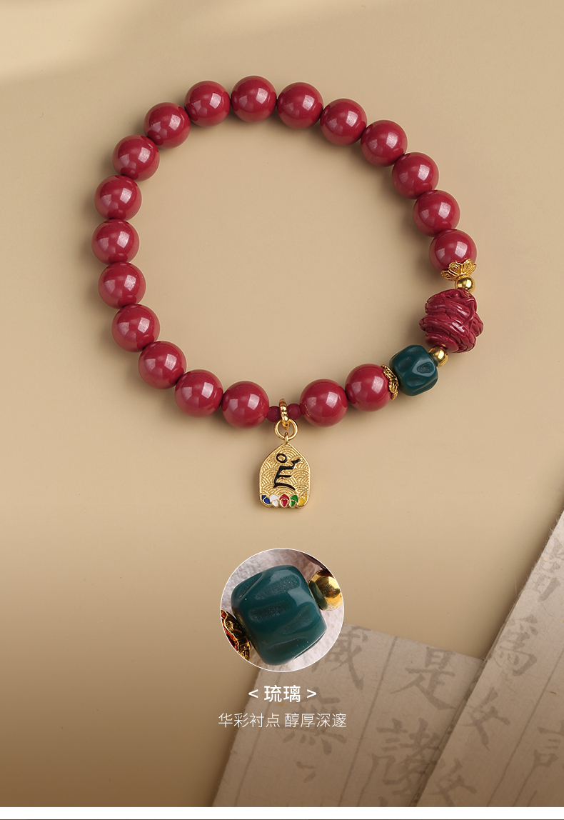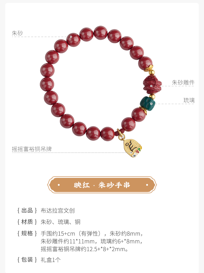 布达拉宫朱砂蛇生肖手串朱砂蛇生肖铜五财神挂坠手串