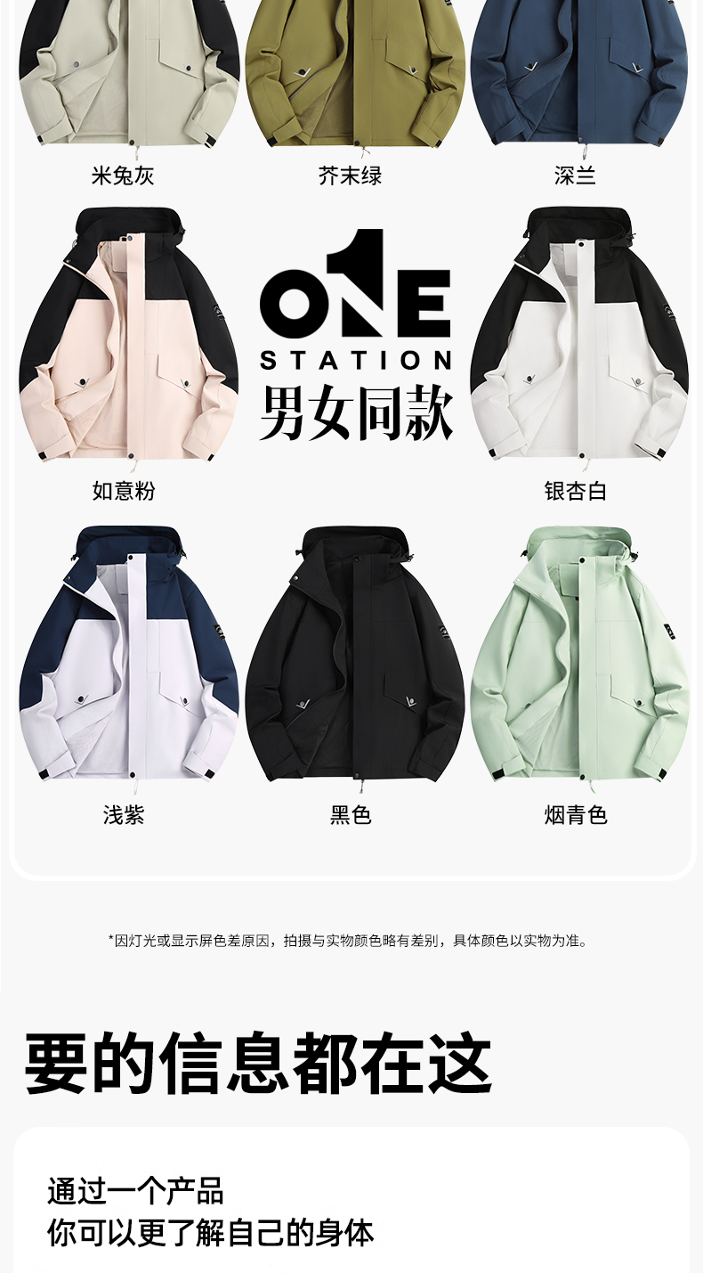 【精选】O1E STATION防风防水男女同款百搭夹克外套(八色可选)2558