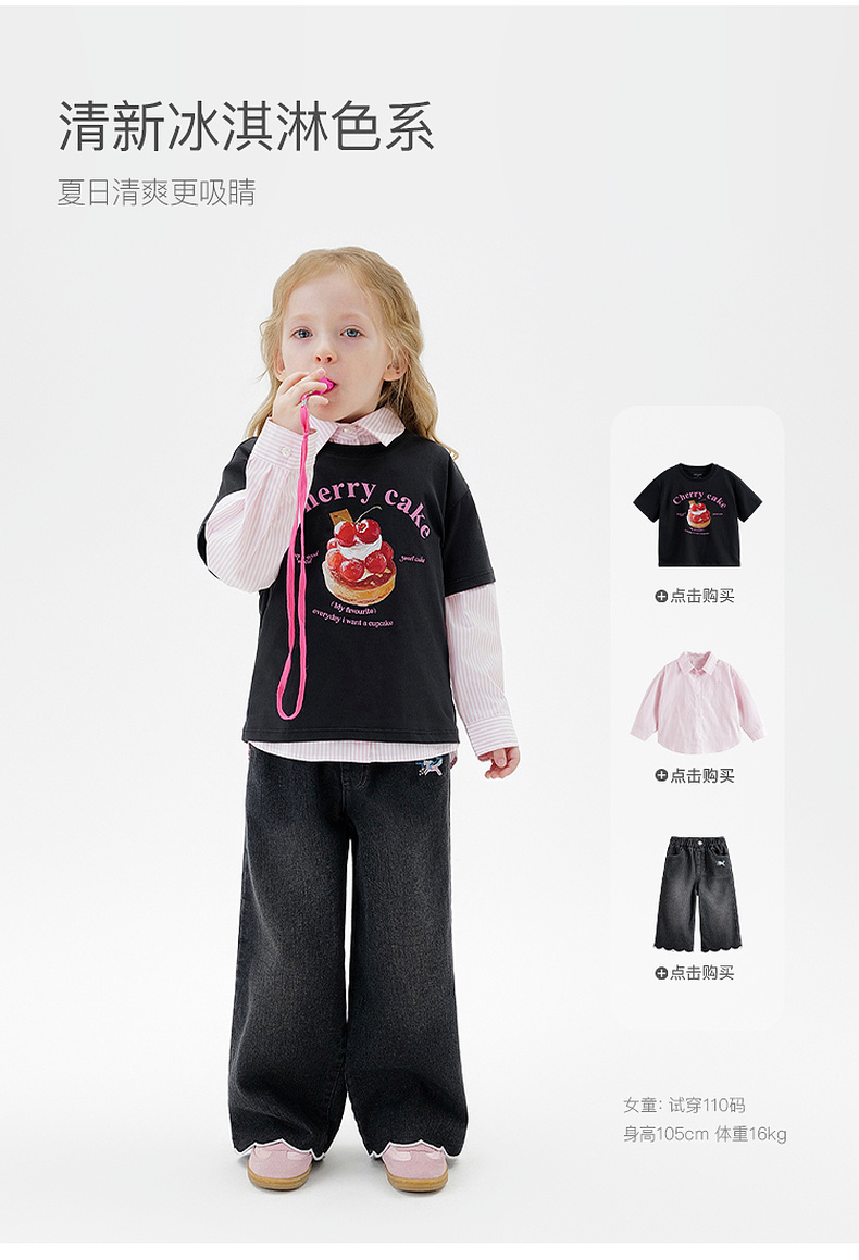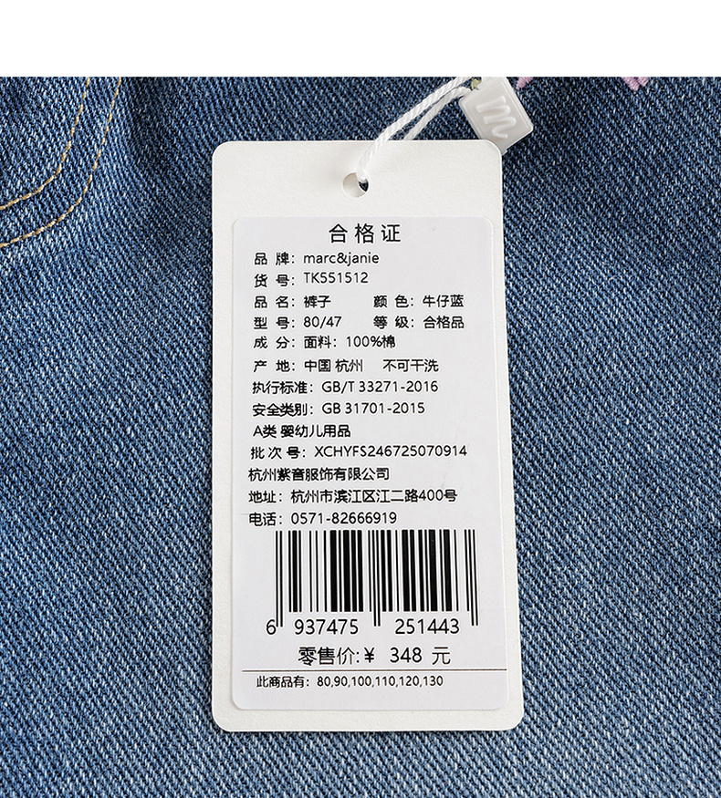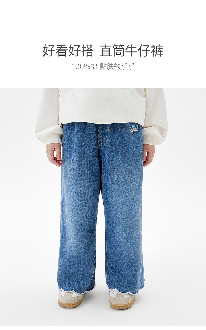 马克珍妮女童云感纯棉直筒牛仔裤2025年秋装新款551512