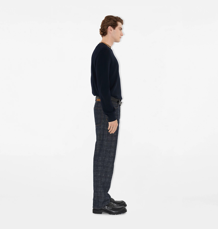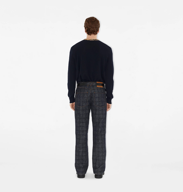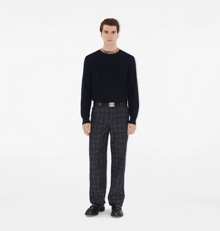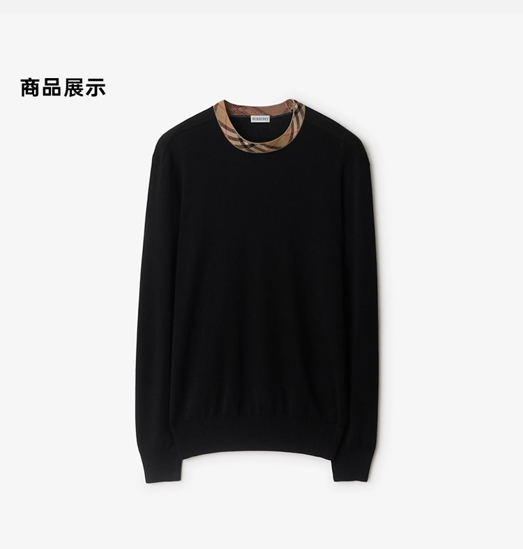 BURBERRY 巴宝莉 男士格纹饰边针织羊毛衫 黑色 8112148 A1189