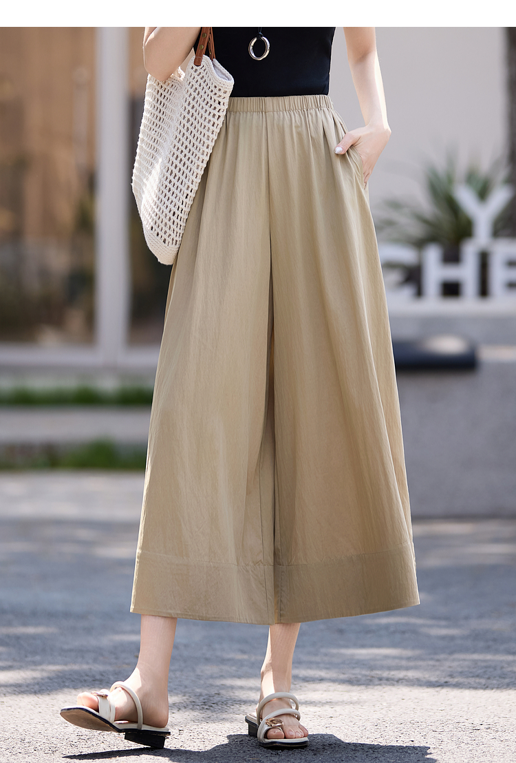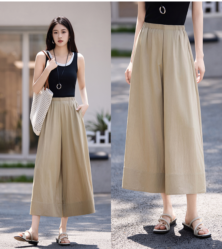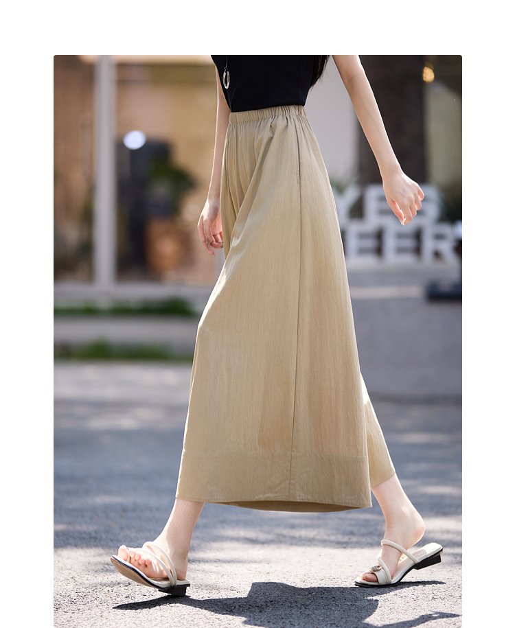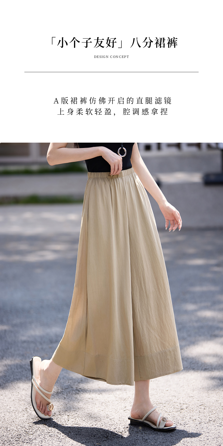【专属特价】熙世界慵懒风宽松大摆裙裤女2025夏新款休闲小个子八九分阔腿裤子