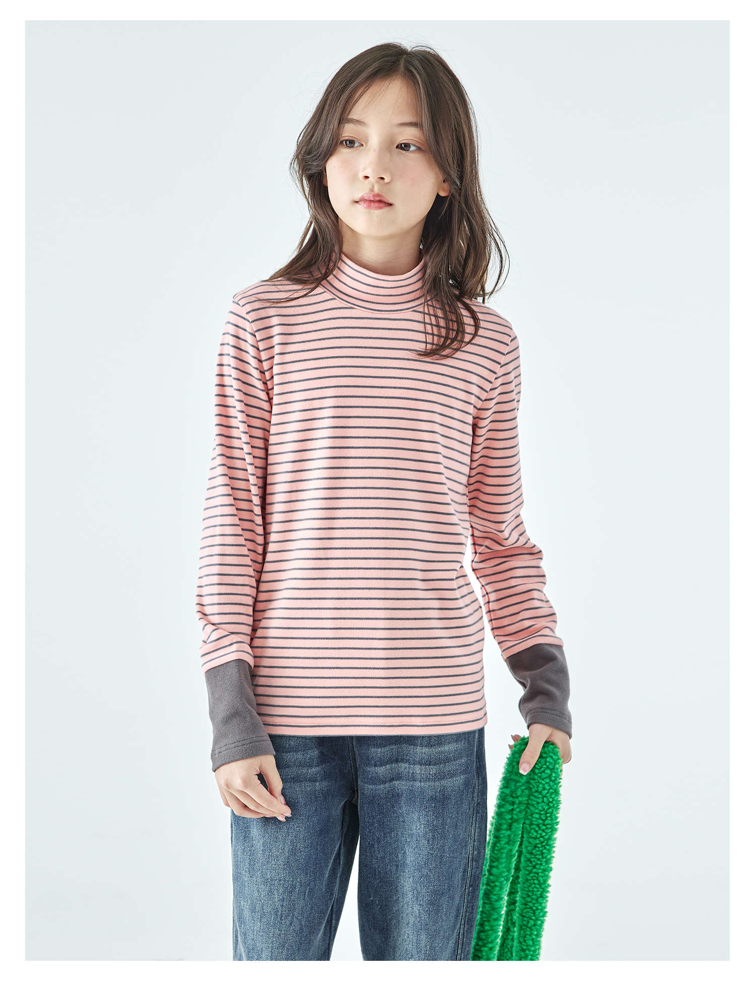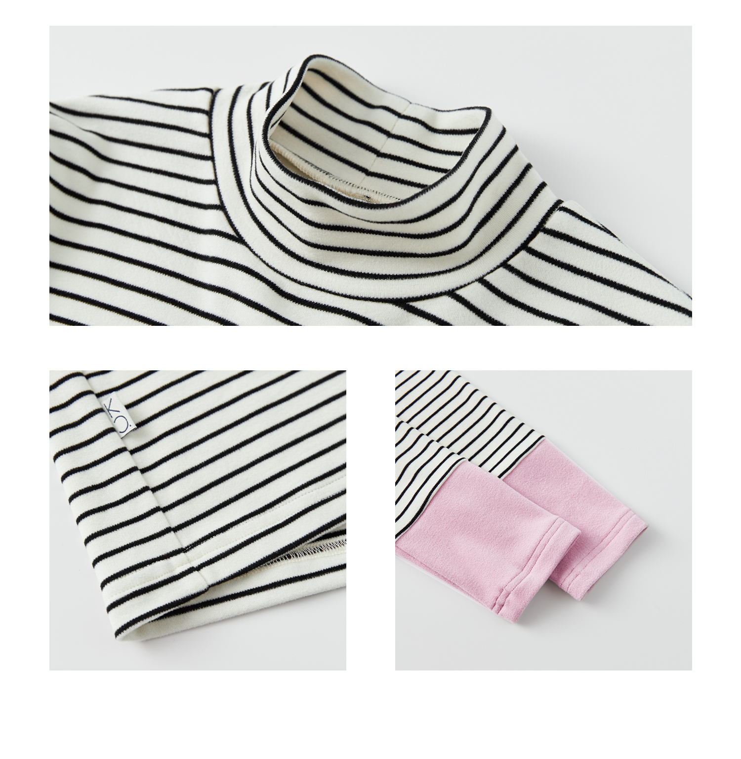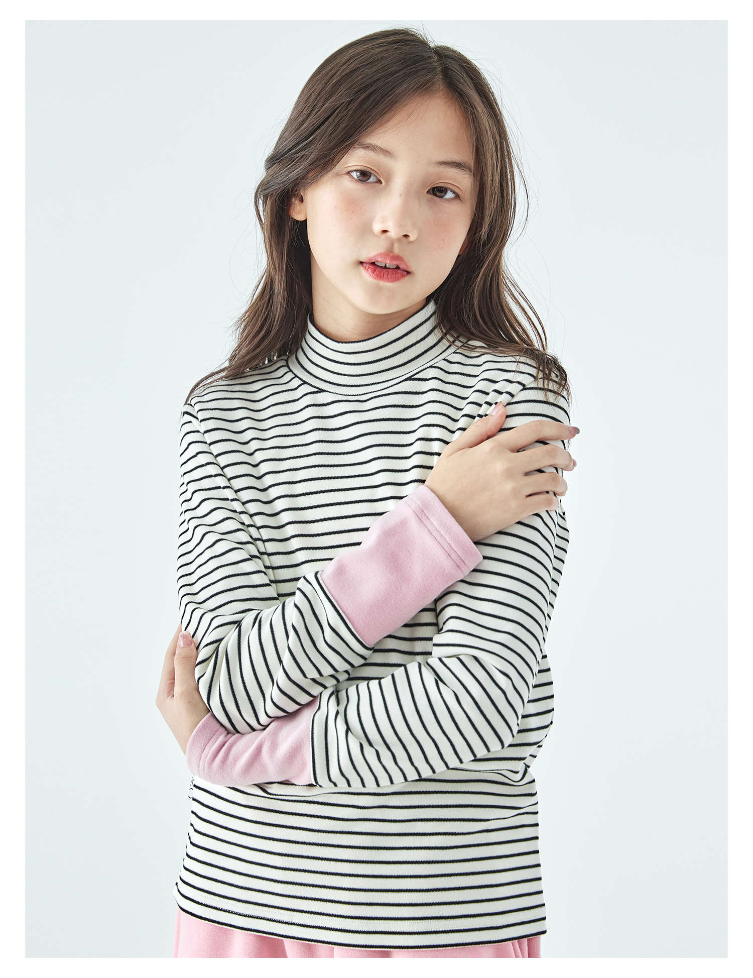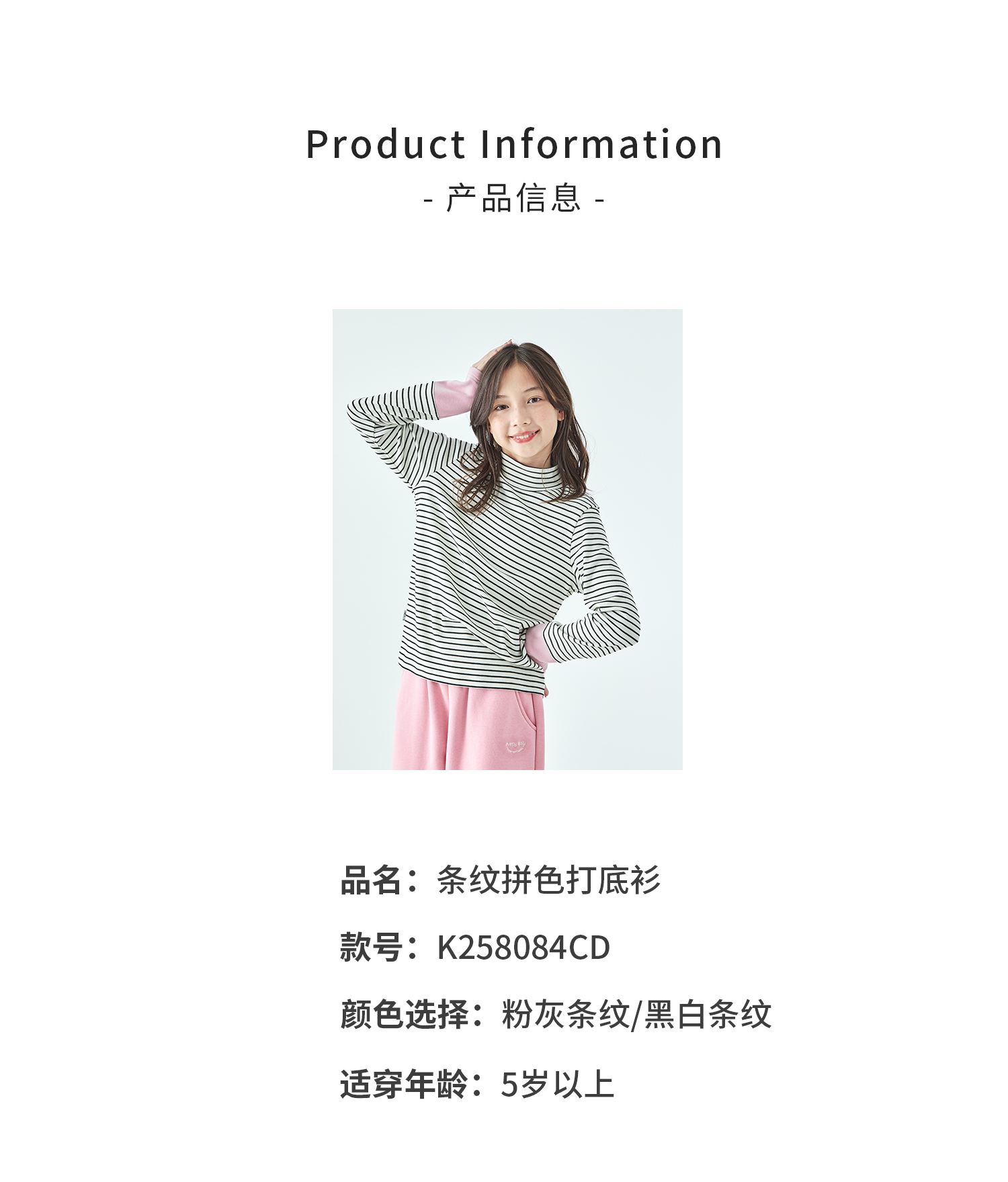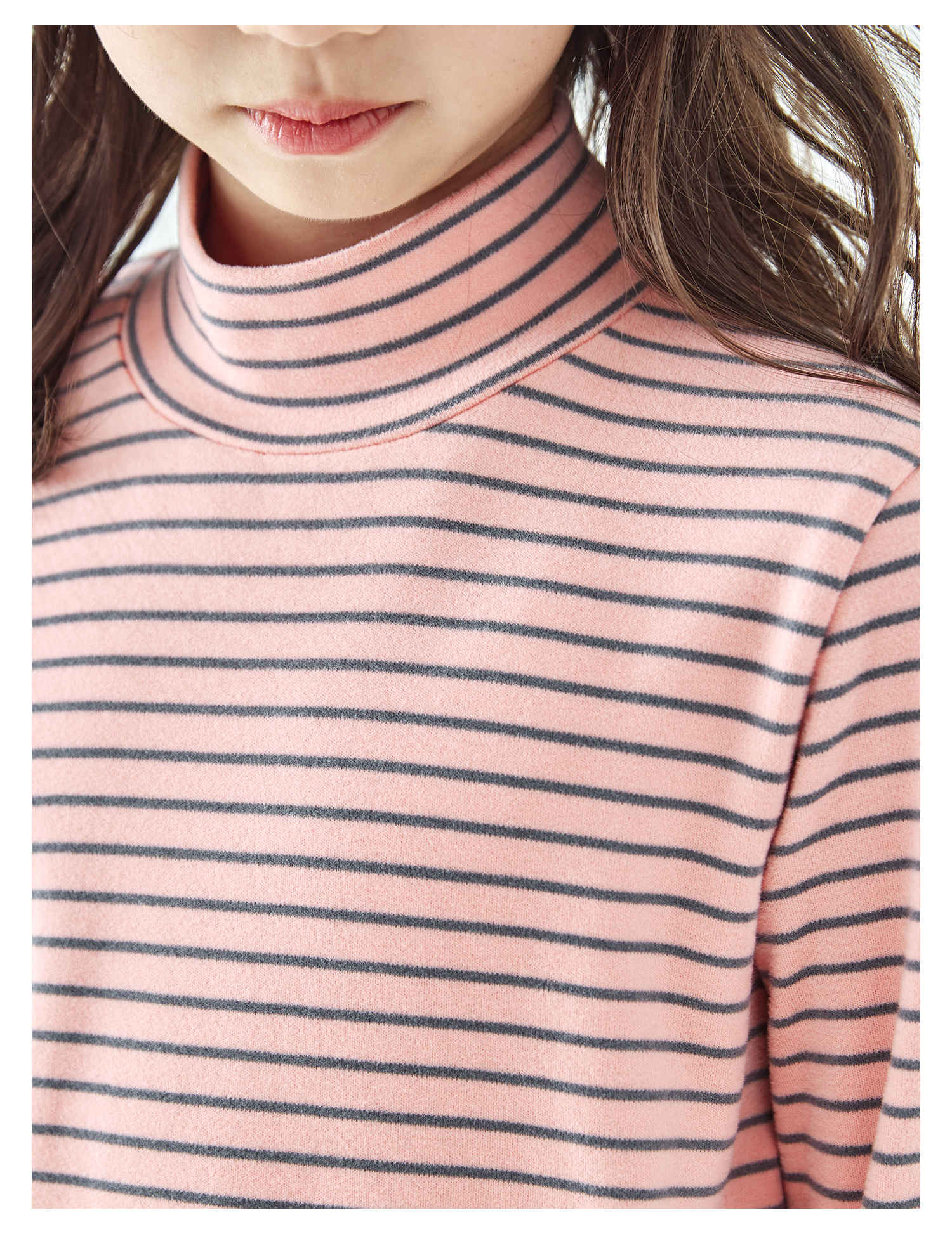 棵初25年冬季新款亲子中大女童经典条纹拼色打底衫高回弹保暖上衣