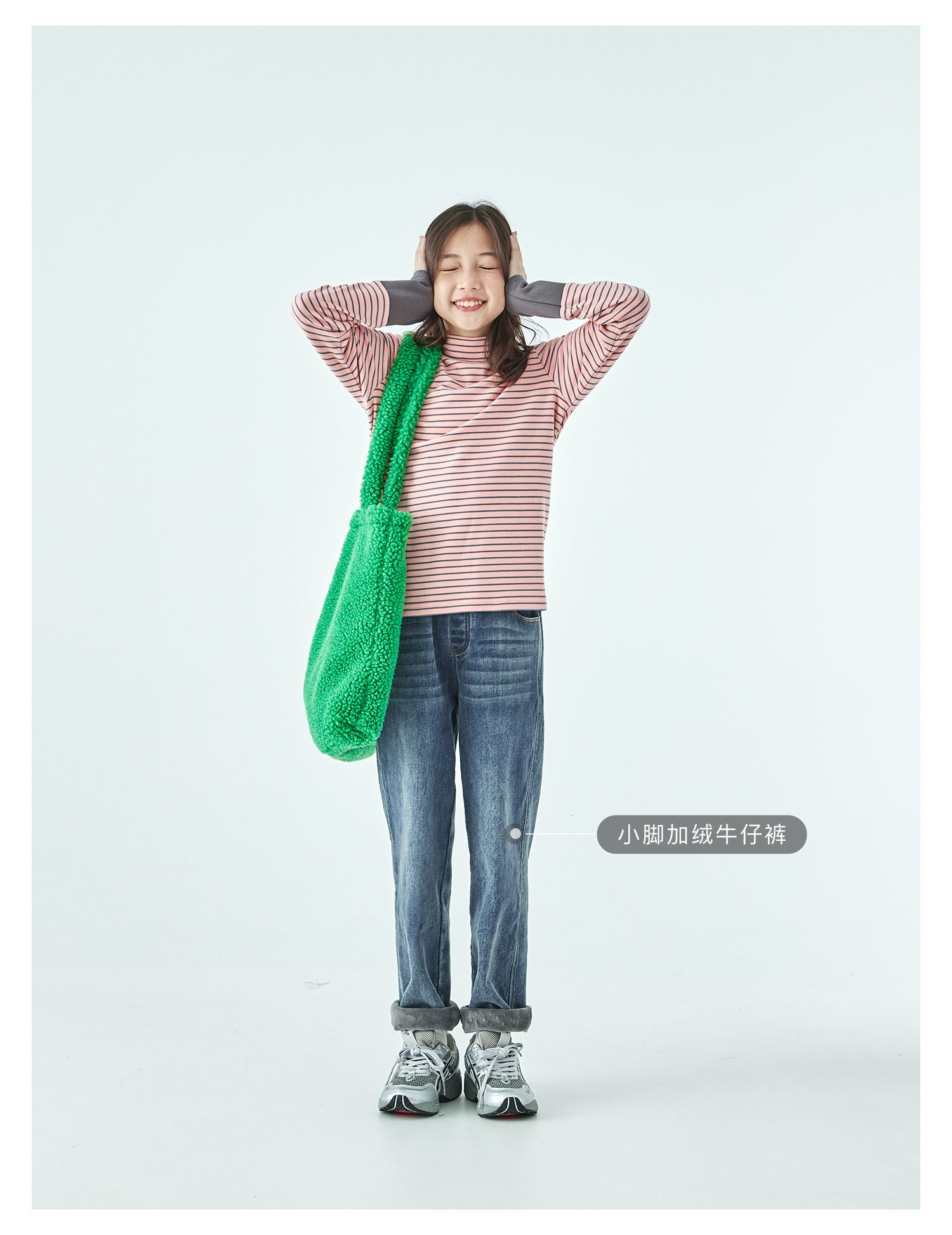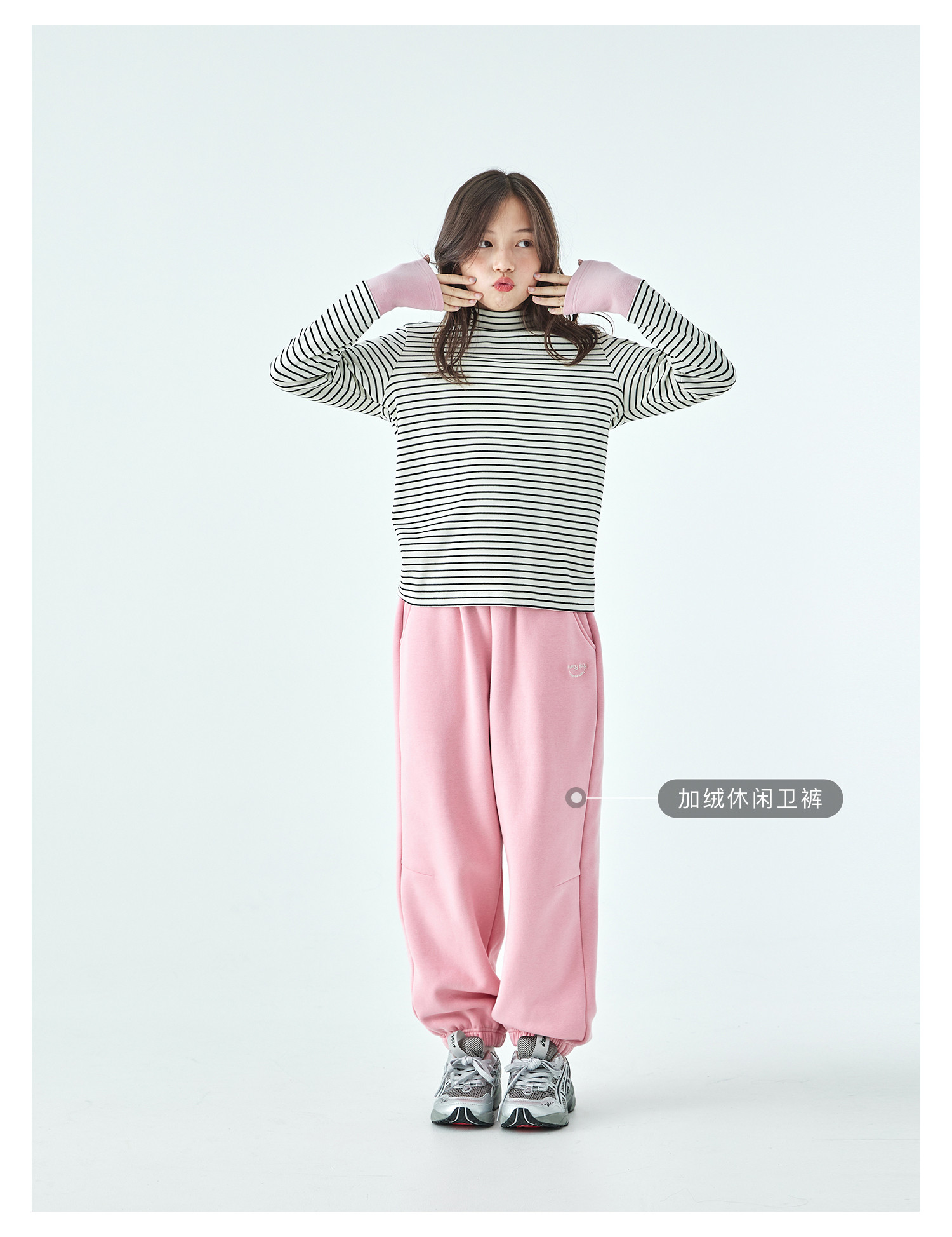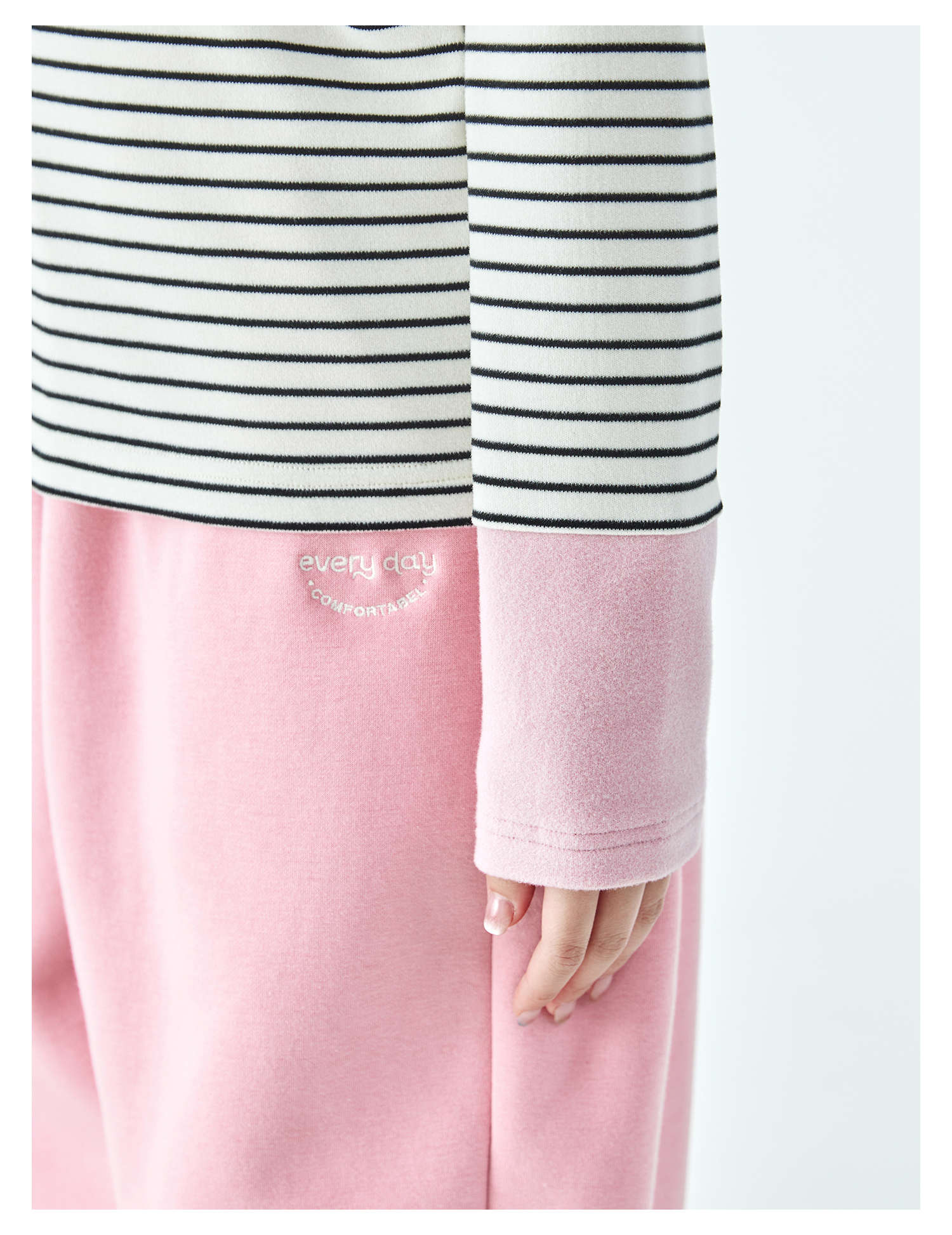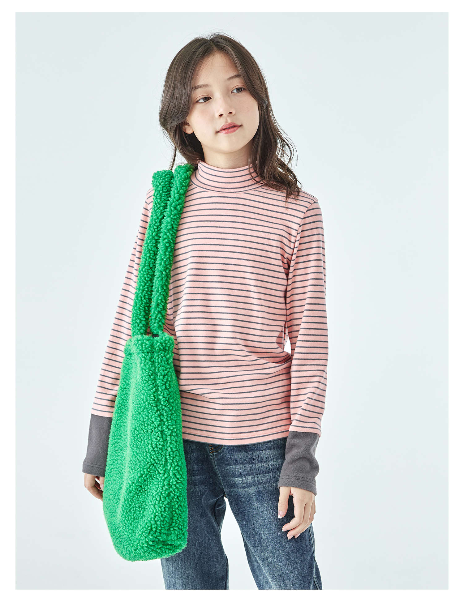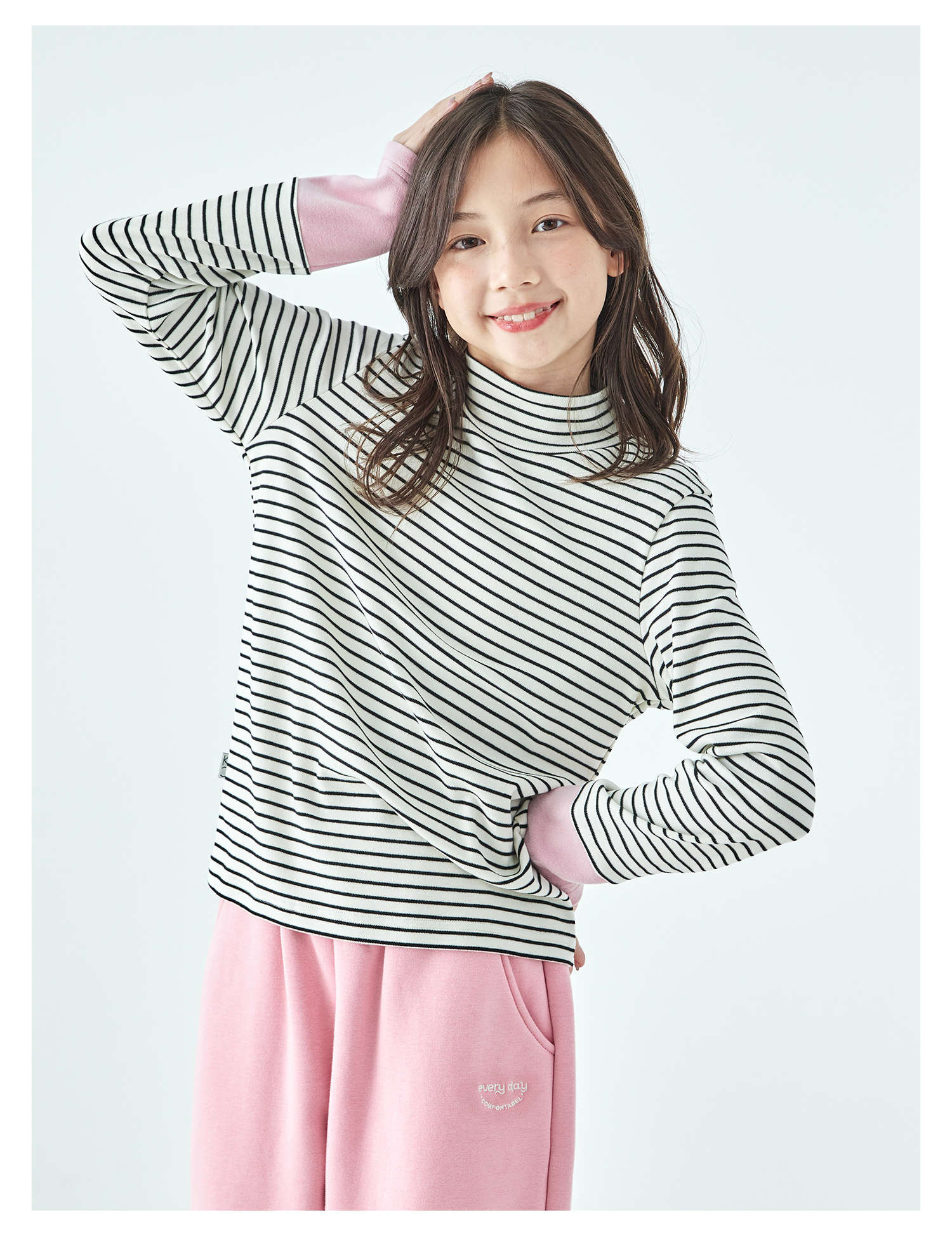 棵初25年冬季新款亲子中大女童经典条纹拼色打底衫高回弹保暖上衣