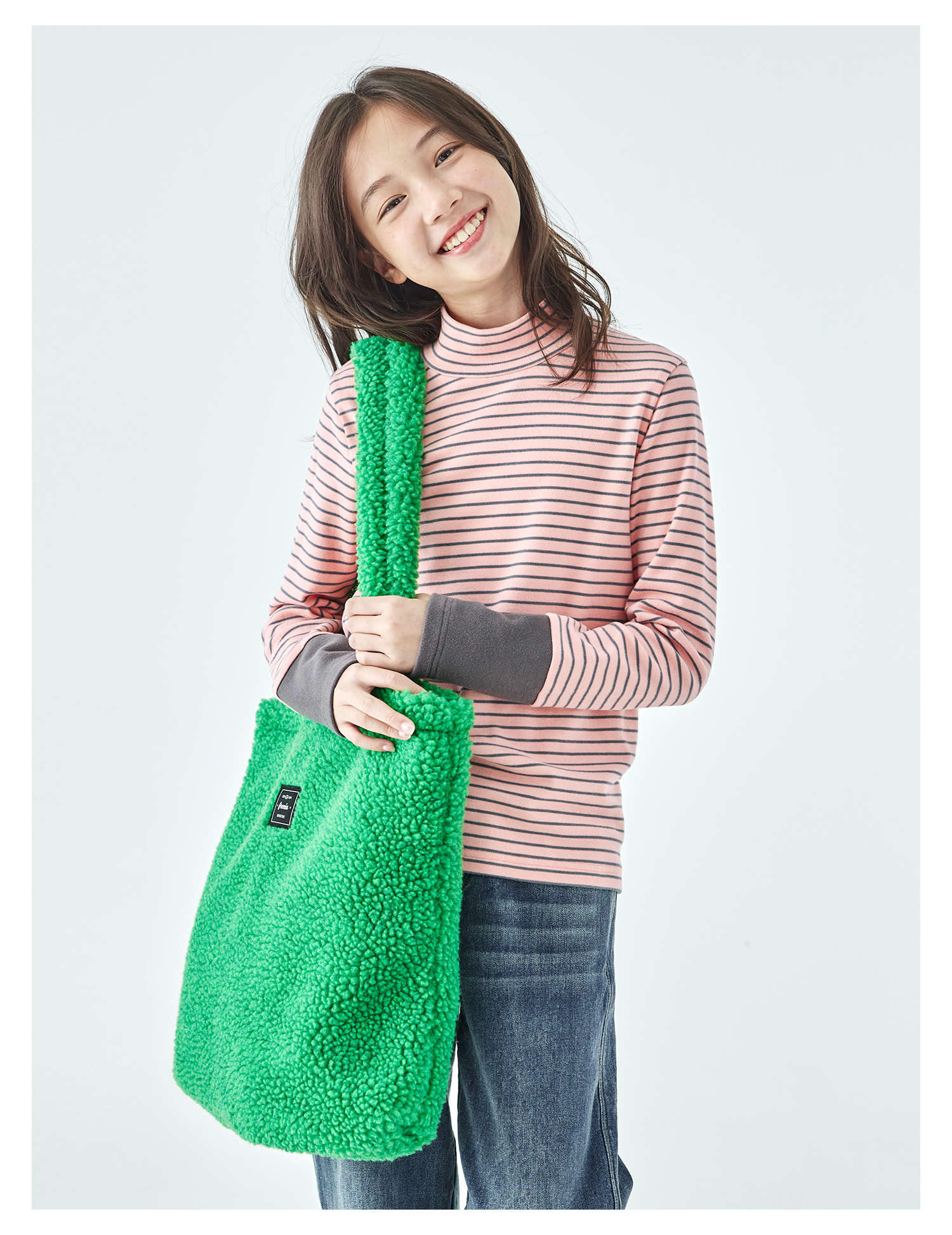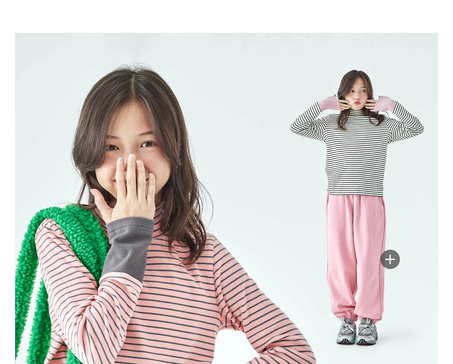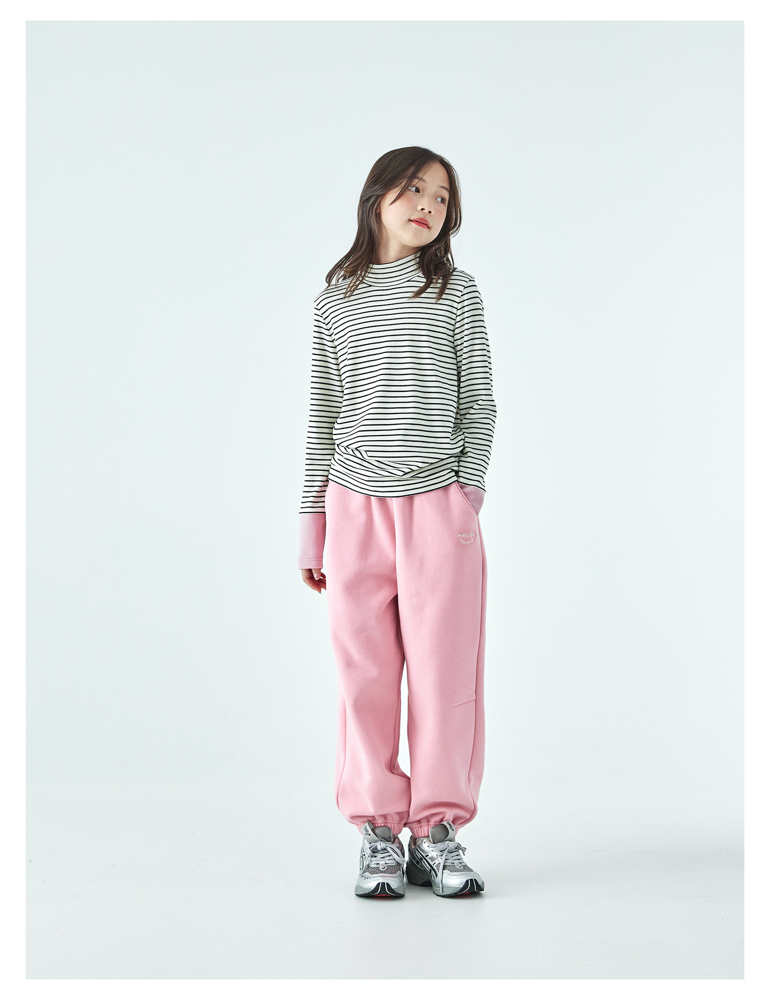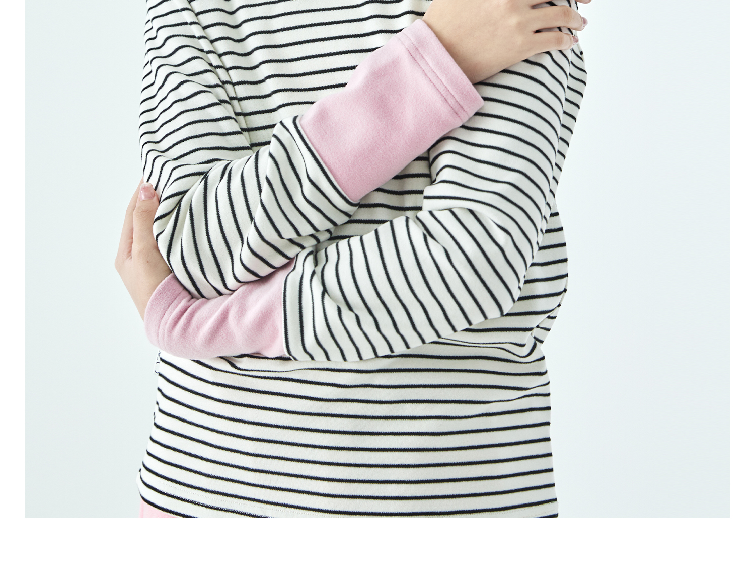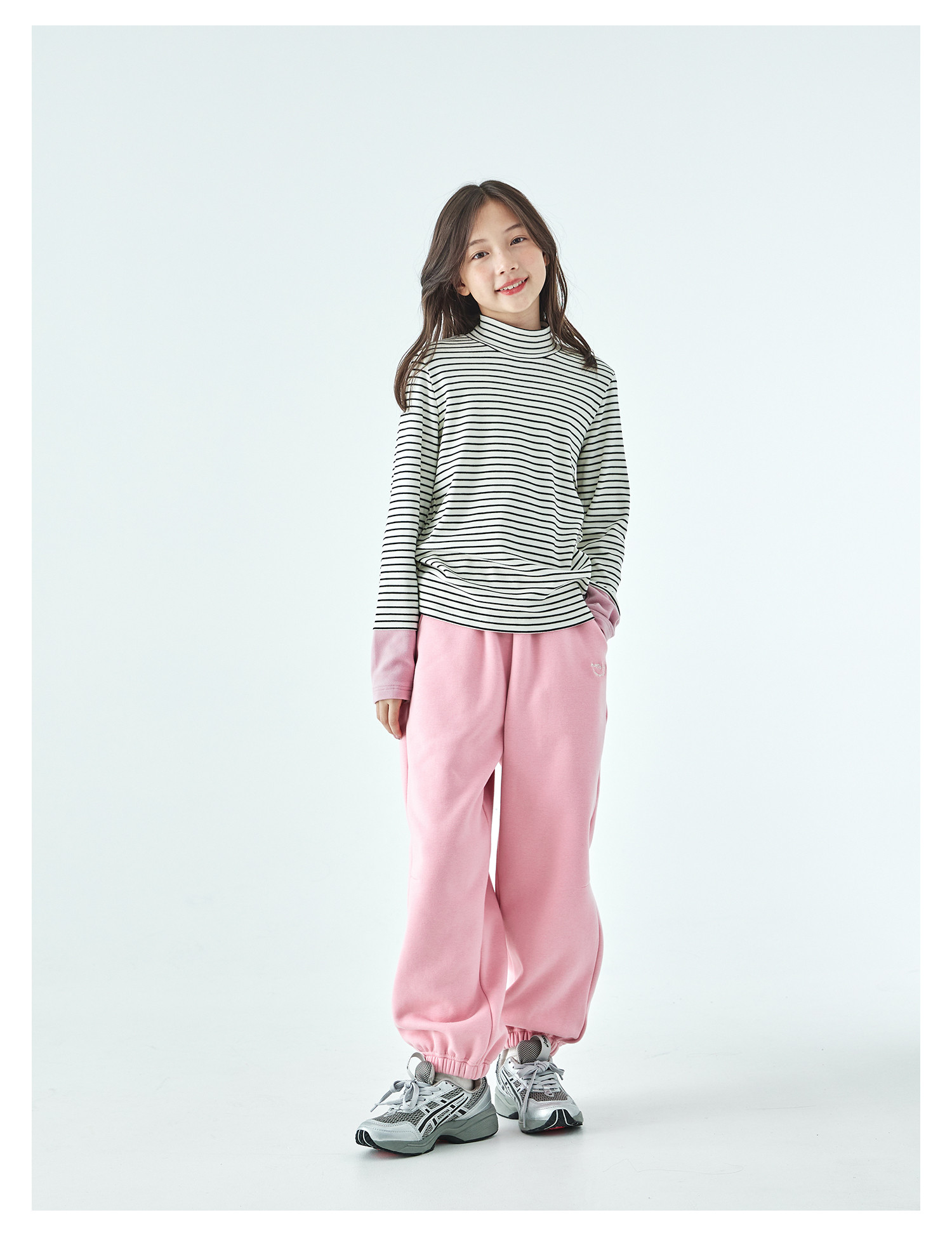 棵初25年冬季新款亲子中大女童经典条纹拼色打底衫高回弹保暖上衣