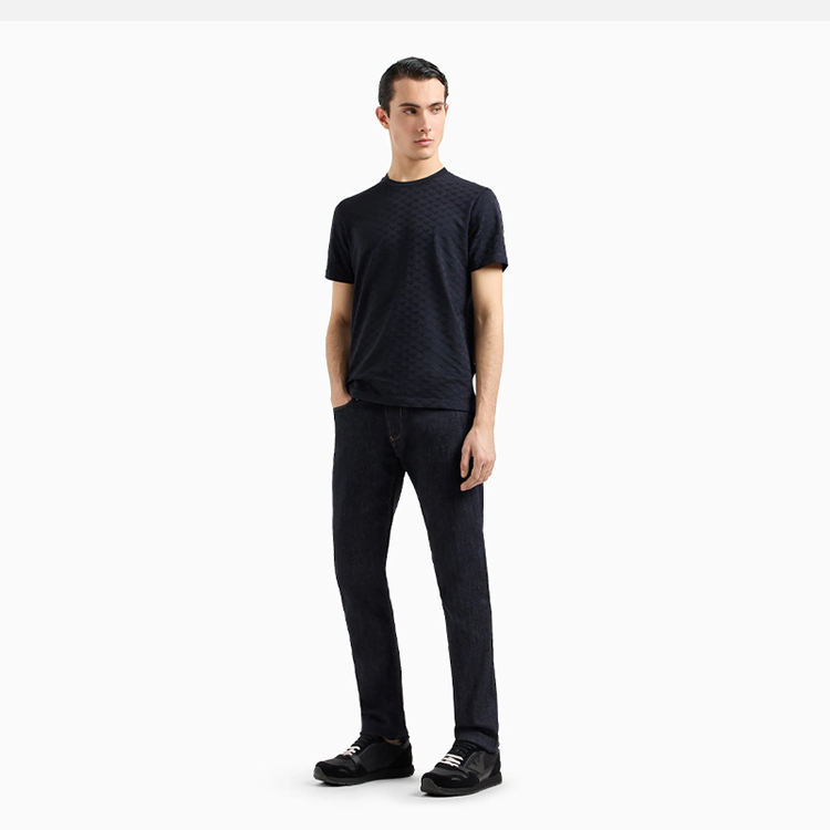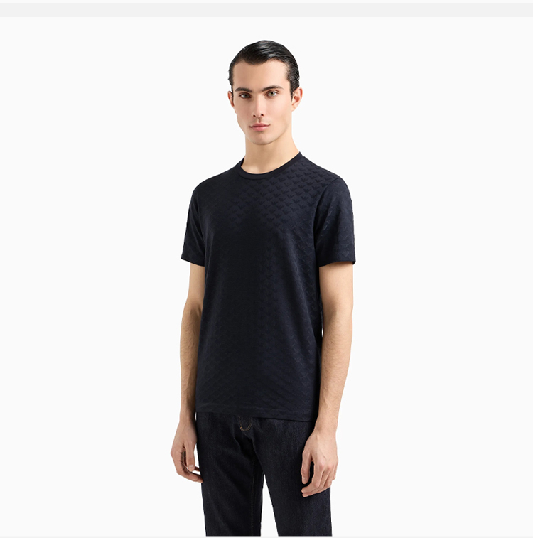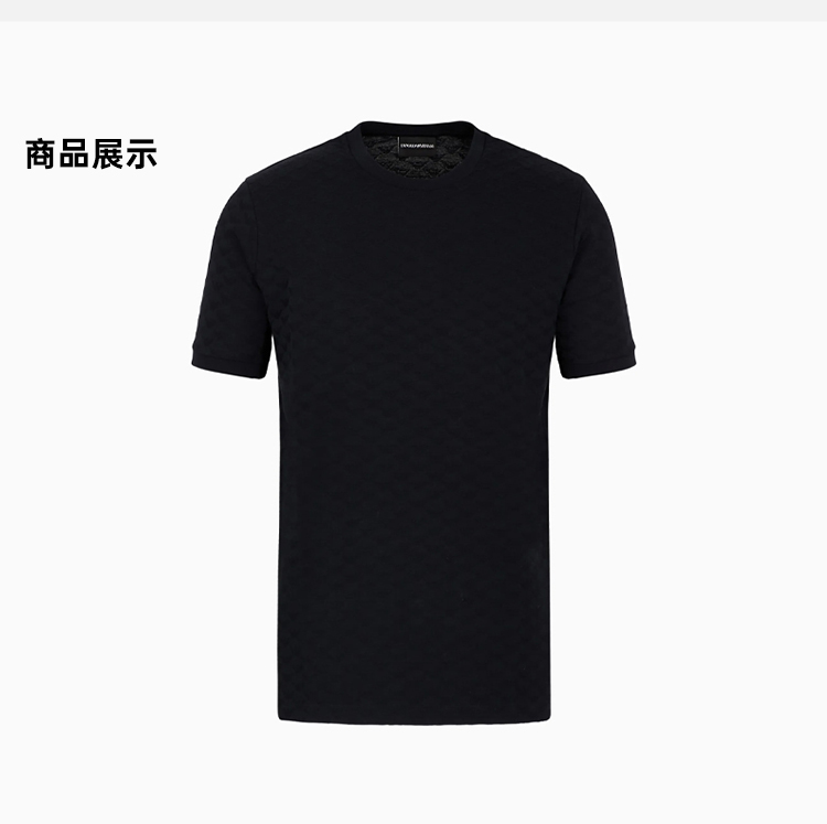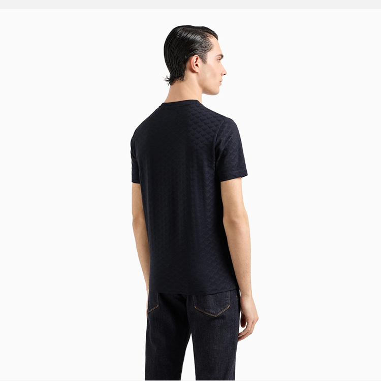 【三】EMPORIO ARMANI 阿玛尼 男士全身提花鹰图案棉质针织圆领短袖T恤 深蓝色 8N1TL7 1JHWZ 0920