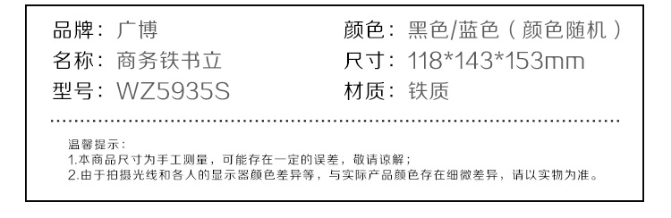 广博(GuangBo)6英寸(高15cm)金属铁书立书挡书靠2片/付 颜色随机WZ5935S