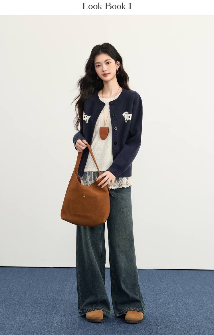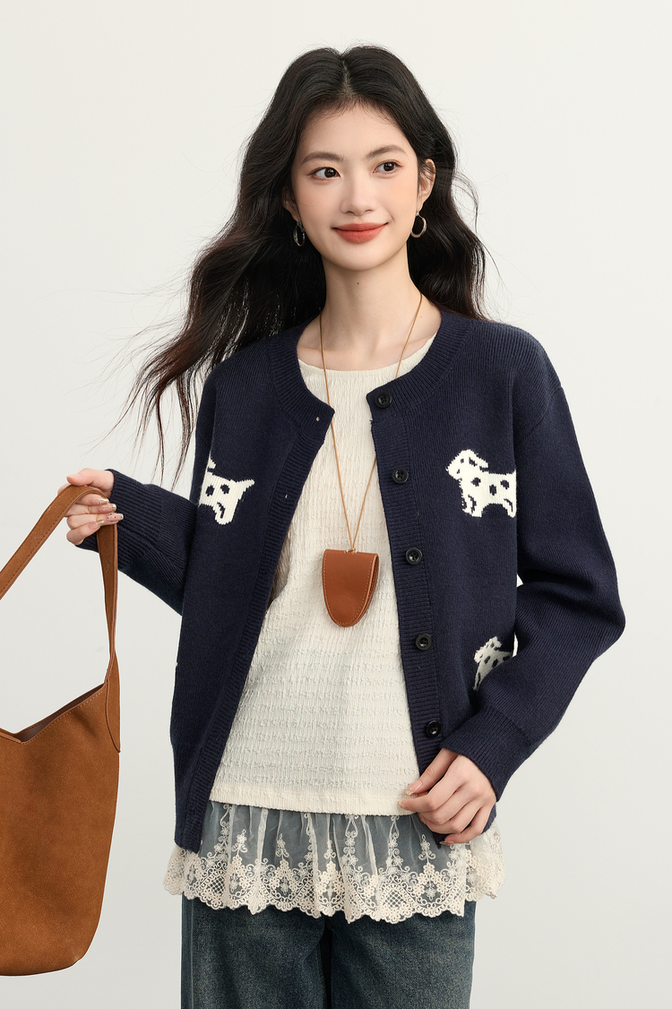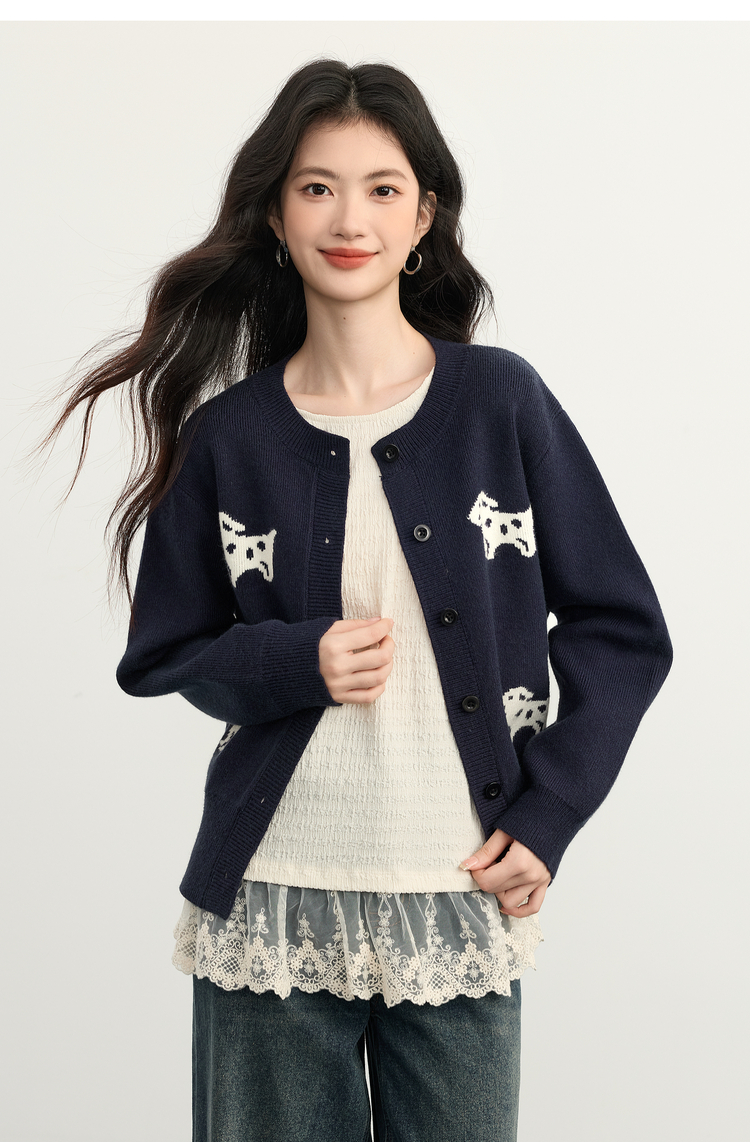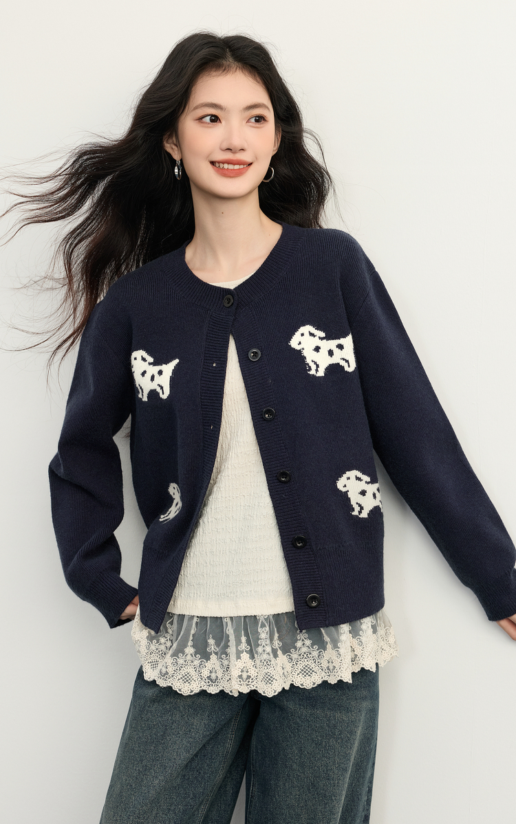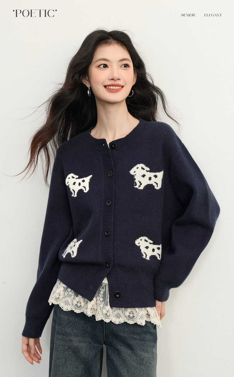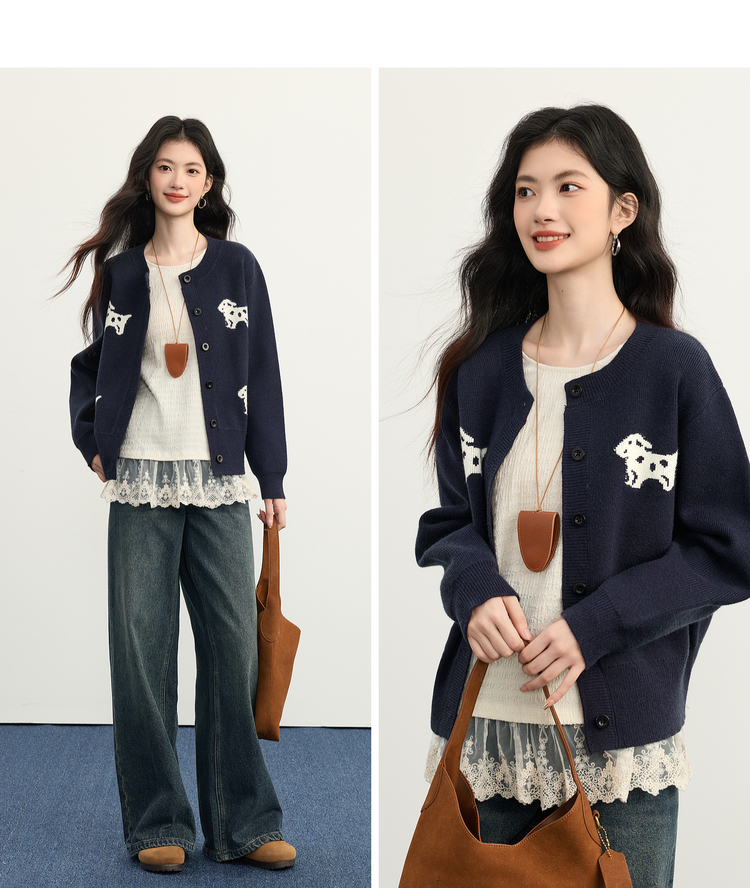 【年货节】熙世界「2/28支安迪绒」小狗毛衣短外套女秋冬小个子软糯针织开衫