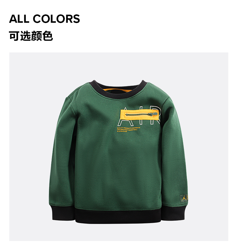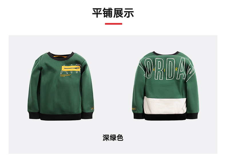 乔丹童衣童装正品秋冬男童军绿加绒套头衫卫衣 JD2142037