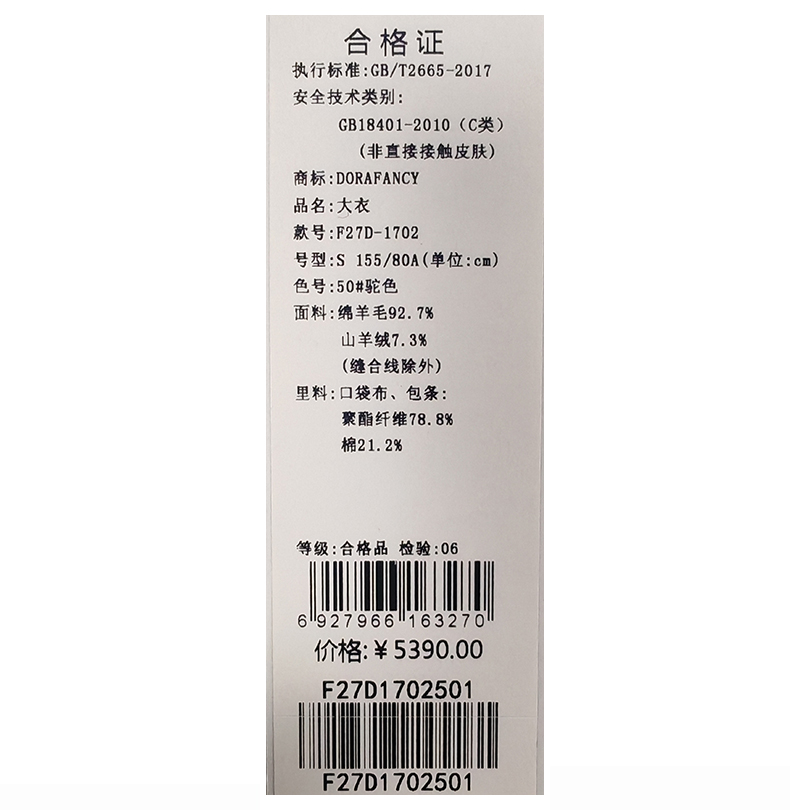 朵拉梵西呢大衣F27D1702