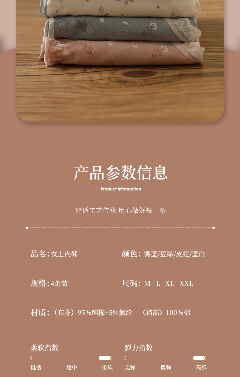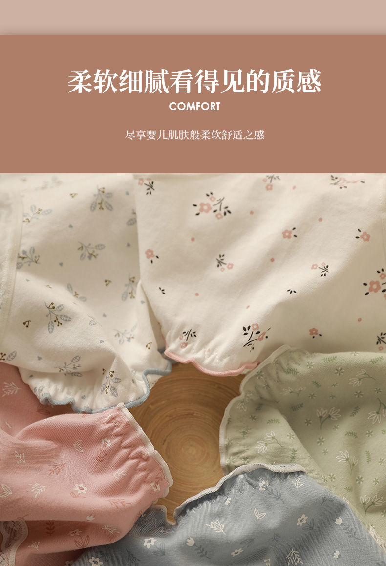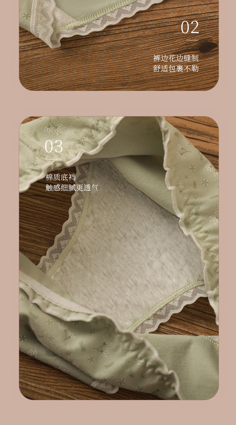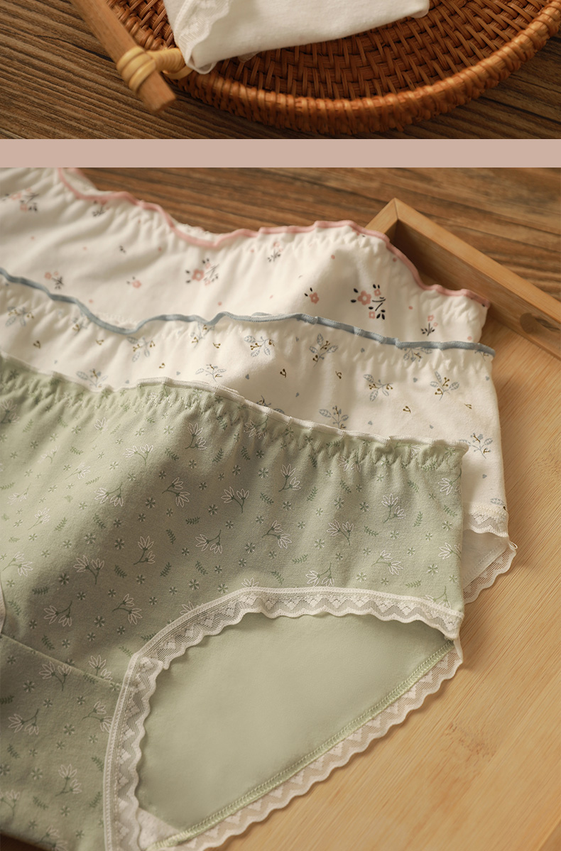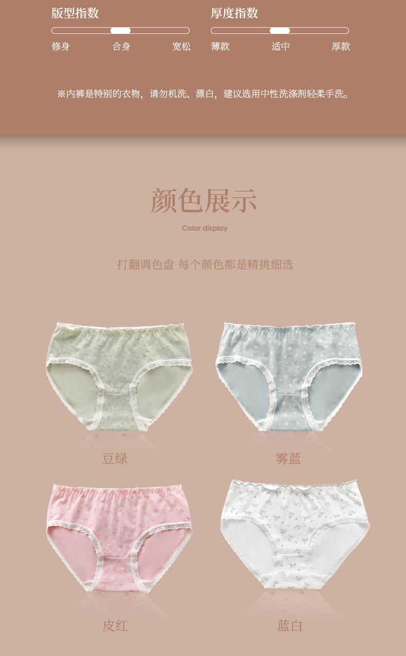 洁丽雅4条装中腰纯棉女士内裤蕾丝花边双层纯棉内裆简约舒适亲肤三角裤女