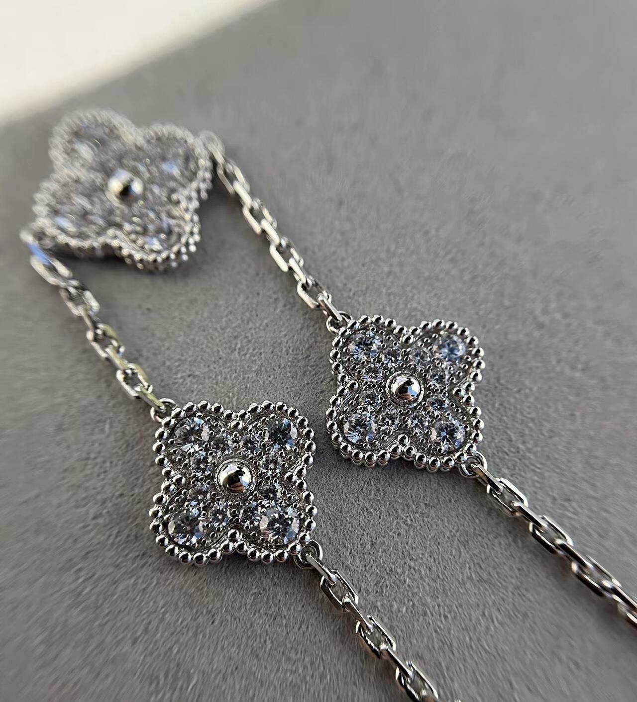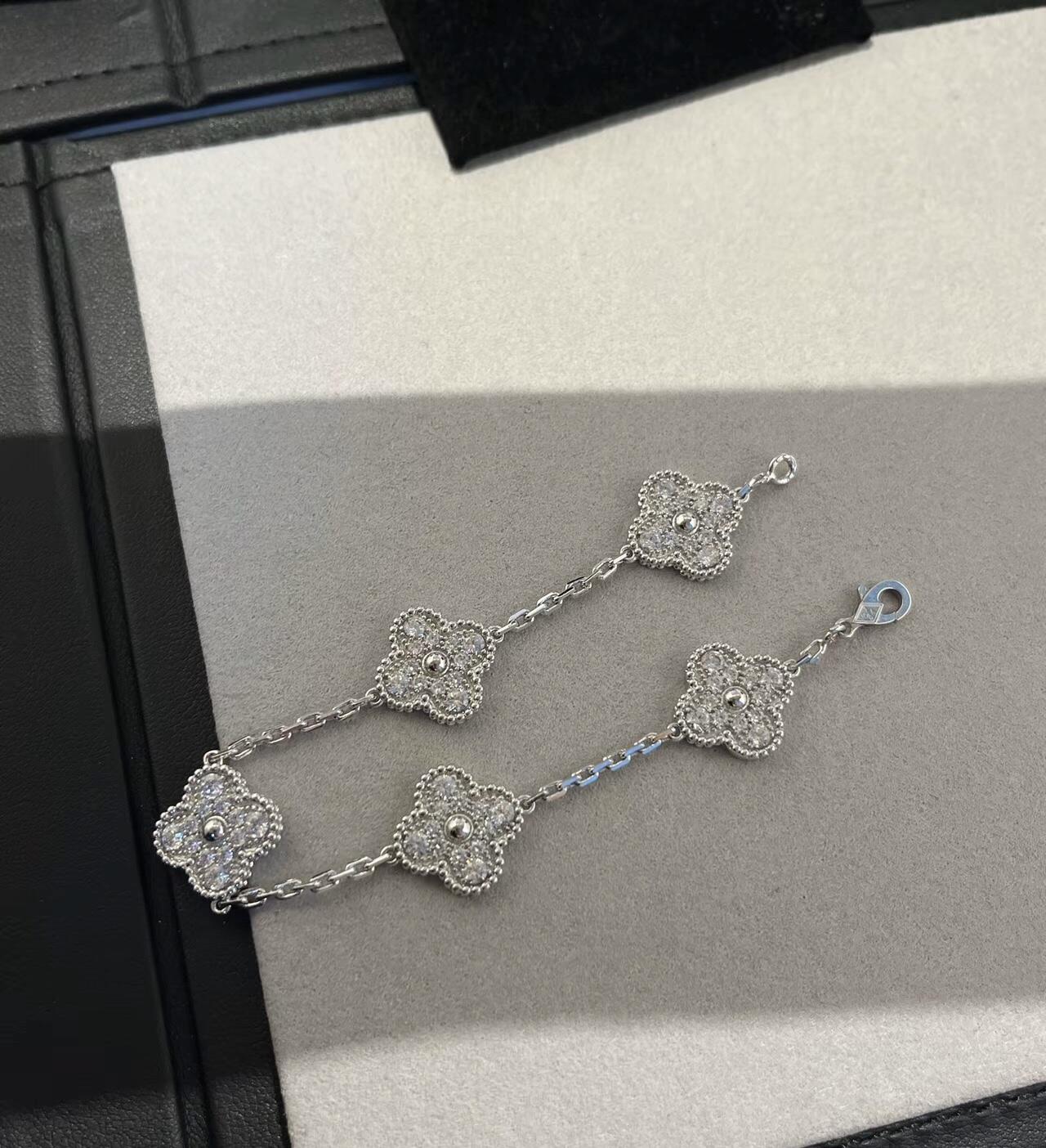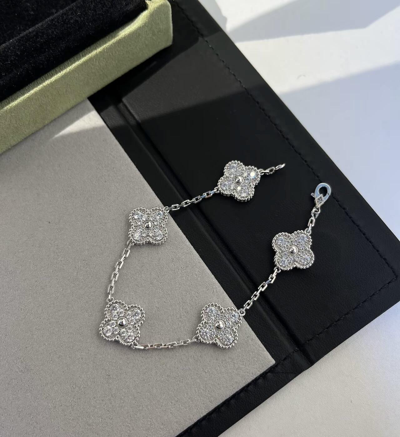 【深度定制】zp开版 梵克雅宝VCA镭射五花手链 白金清冷感无敌! 很显高级 闪闪的很灵动✨ 五花玄学保佑我,㊗️大家都有好运啦~