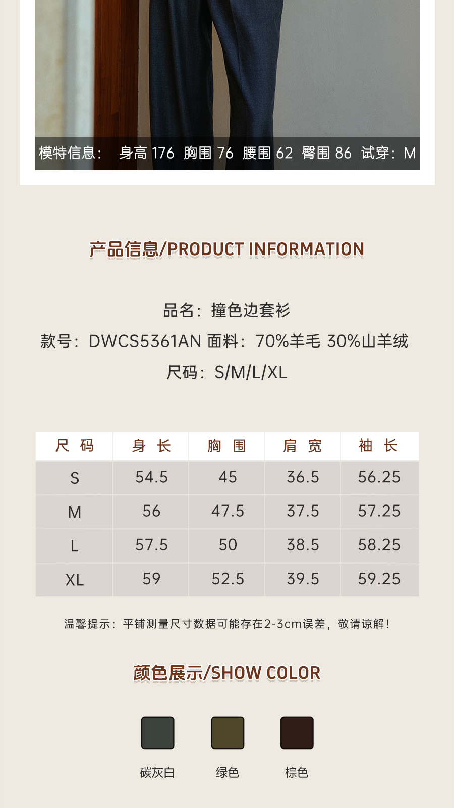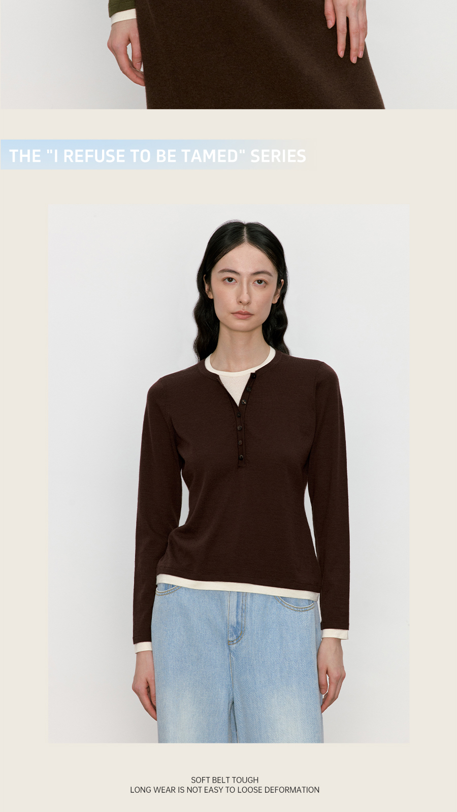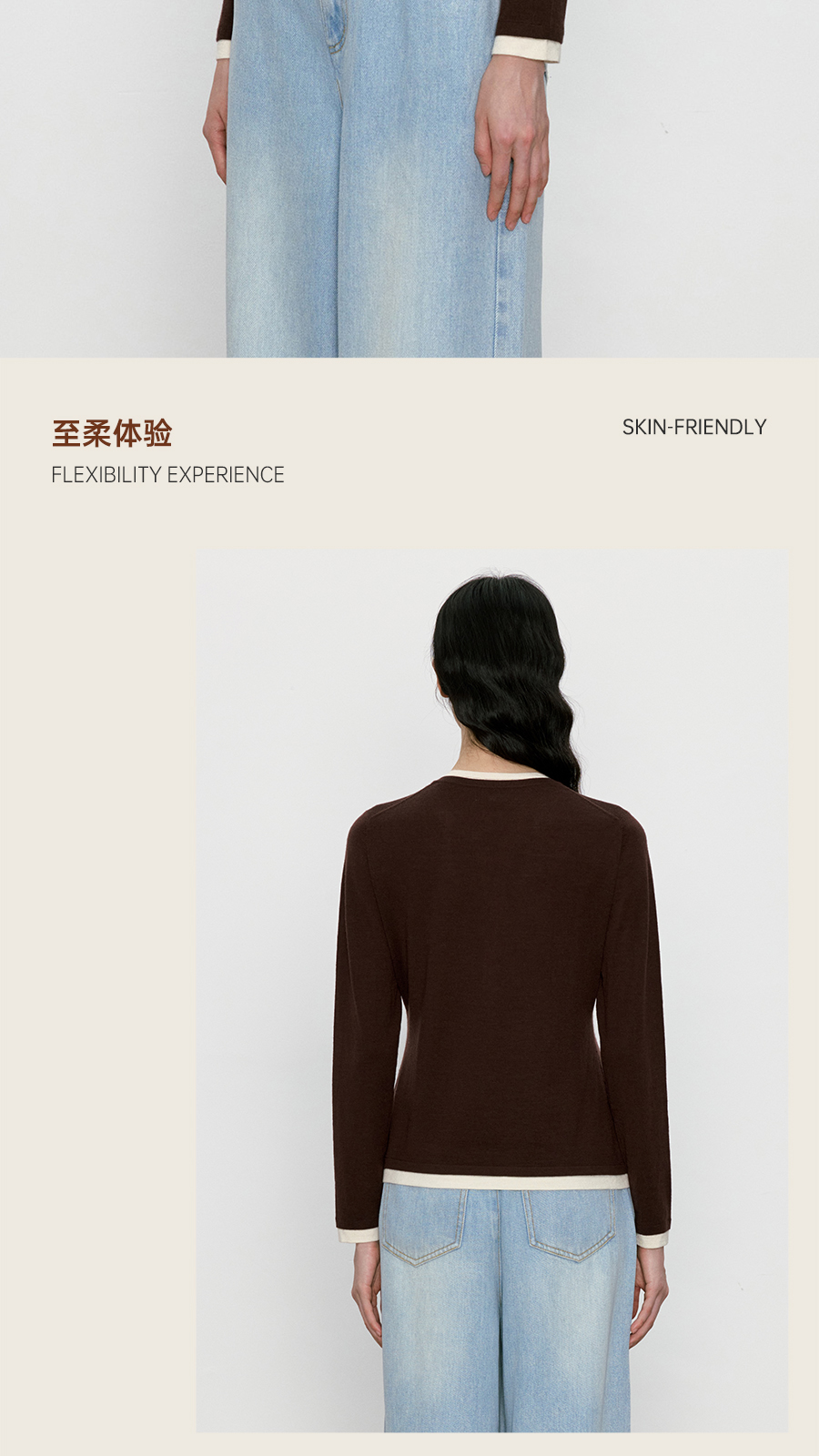 东黎 • 我不被驯化 三缀白 山羊绒混纺女士秋季撞色边套衫 5361