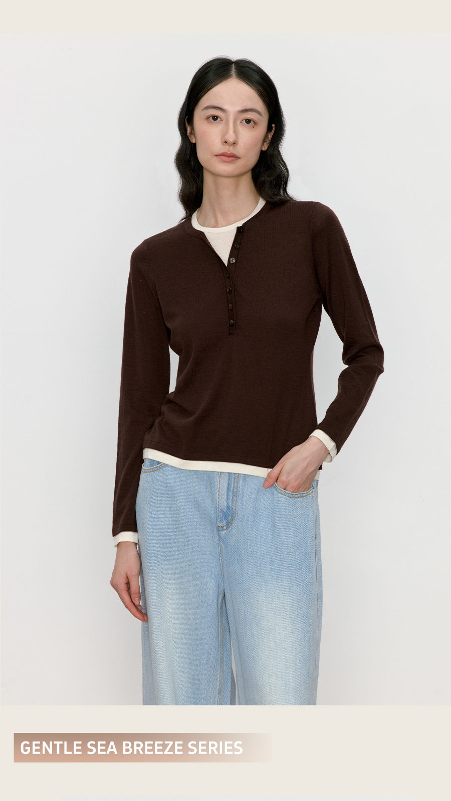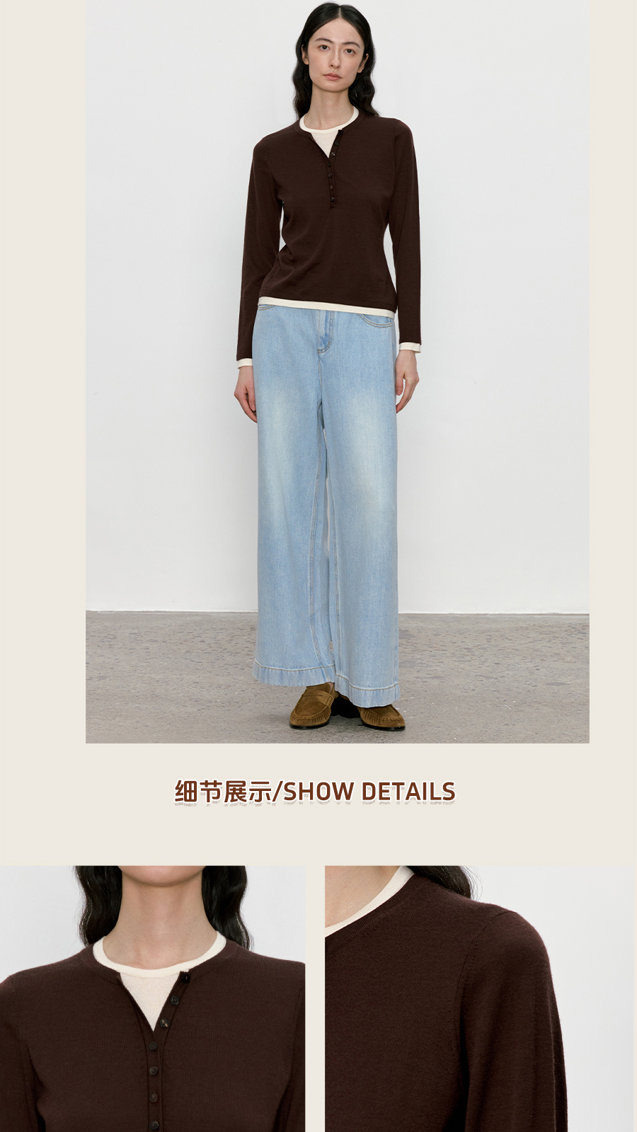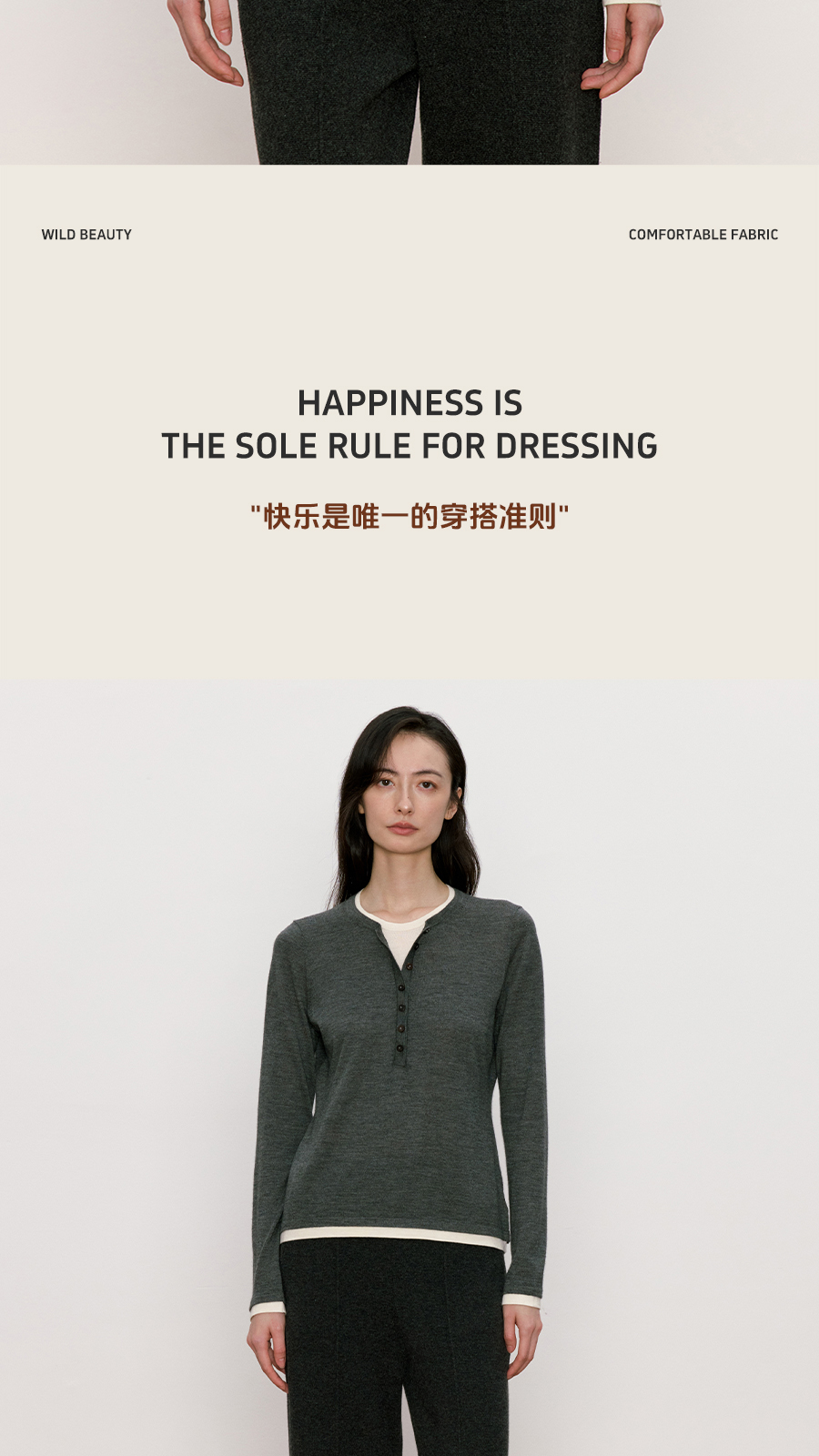 东黎 • 我不被驯化 三缀白 山羊绒混纺女士秋季撞色边套衫 5361