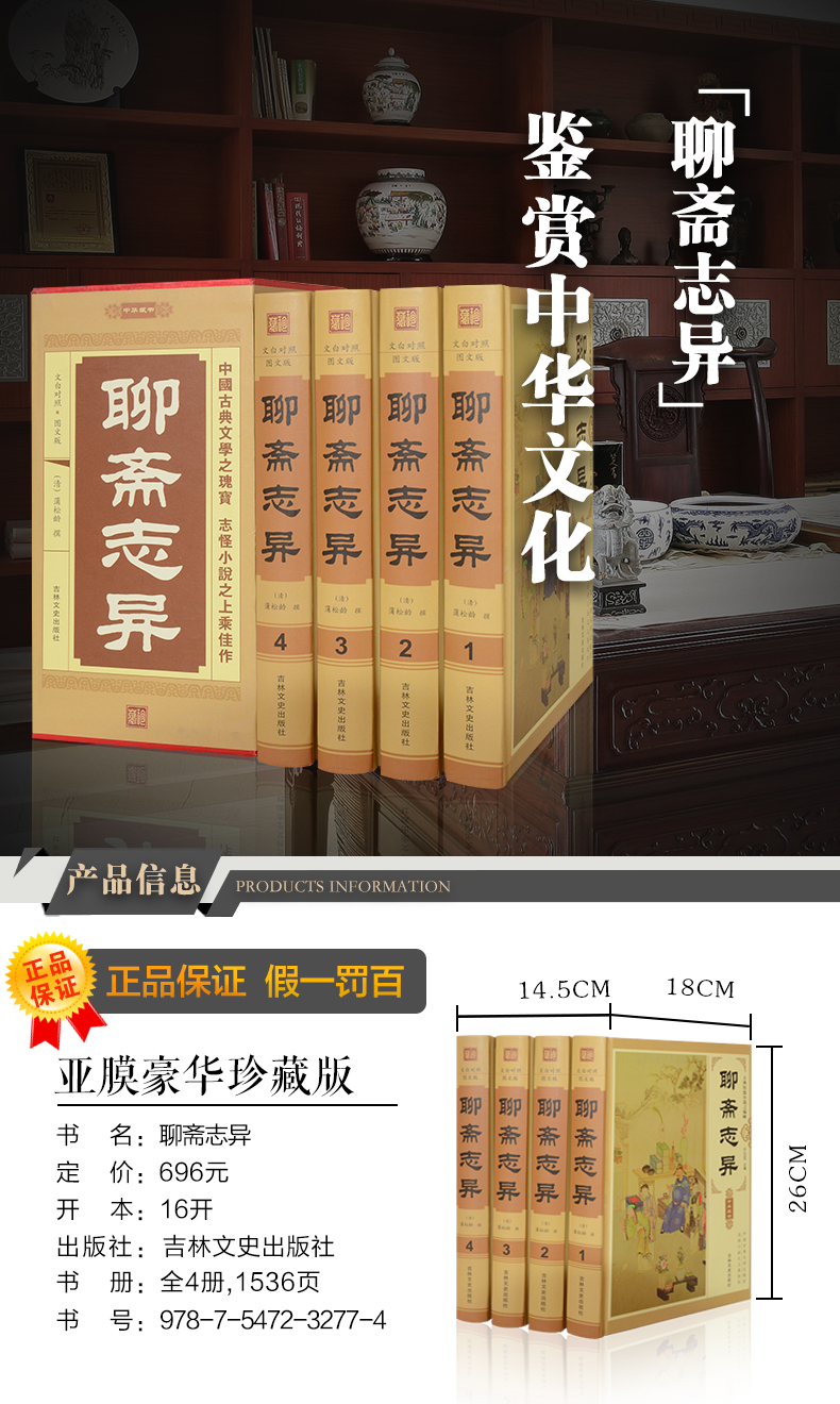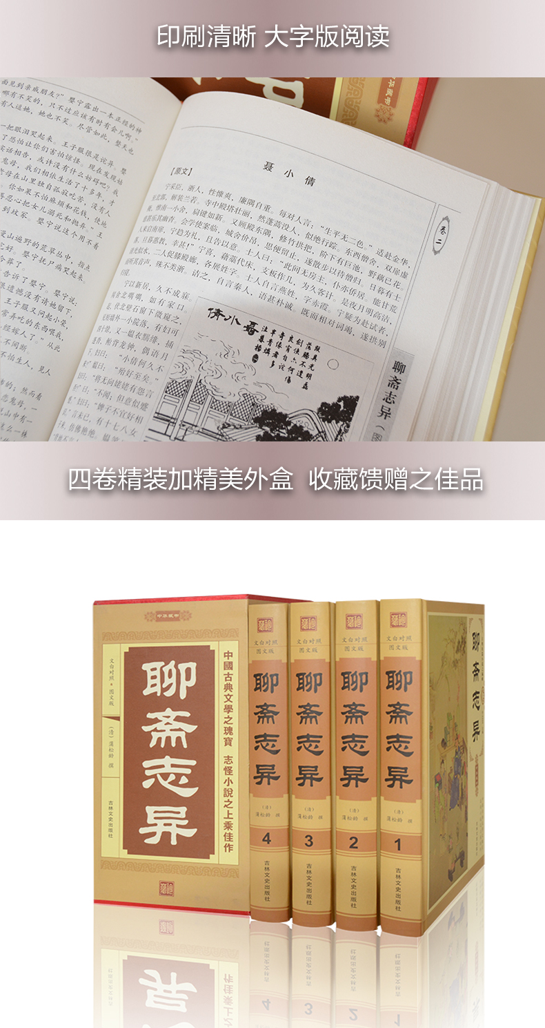 【优惠套装】聊斋志异 包邮全4册 带注释插图版 原文+白话注释全集中国古典/志怪神魔小说 鬼怪小说 中国古代文学图书 带插盒 正版书籍