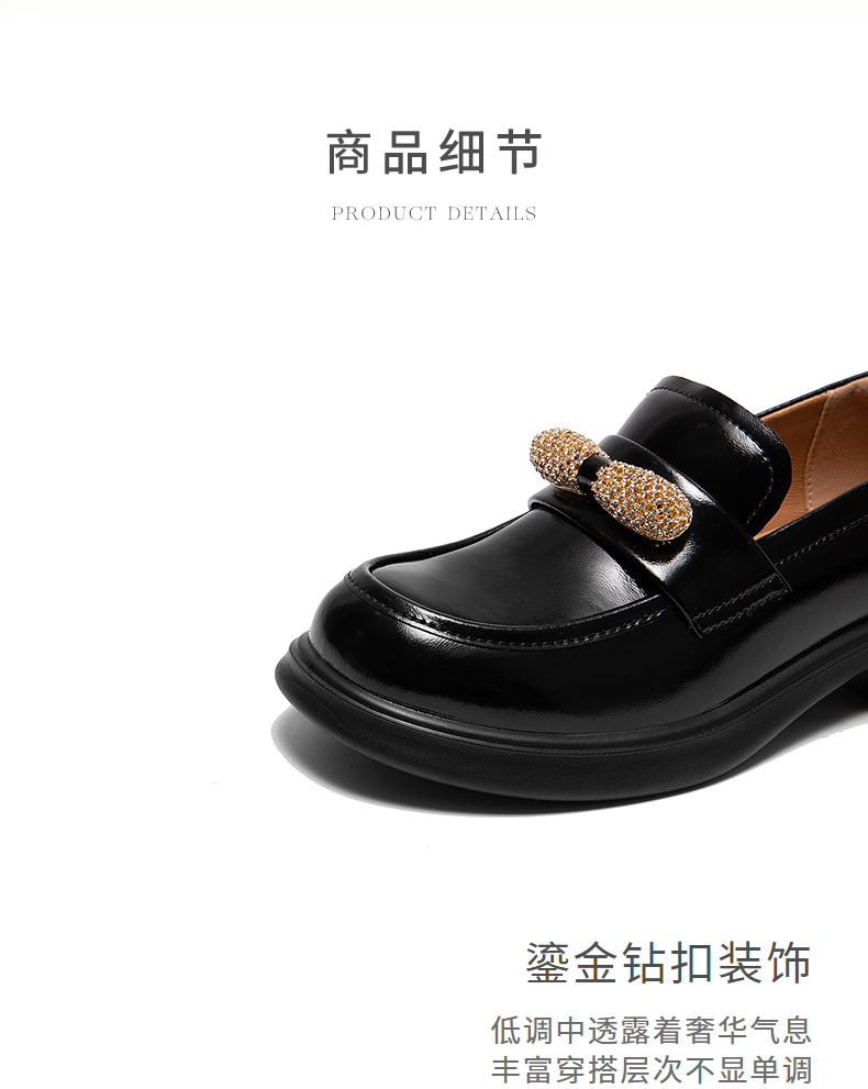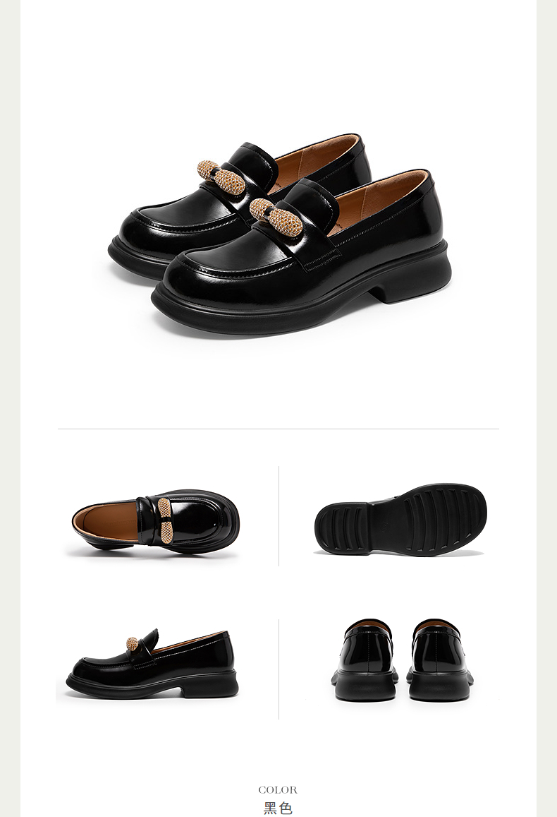 千百度经典通勤乐福鞋女款厚底黑色一脚蹬JK小皮鞋A25163720