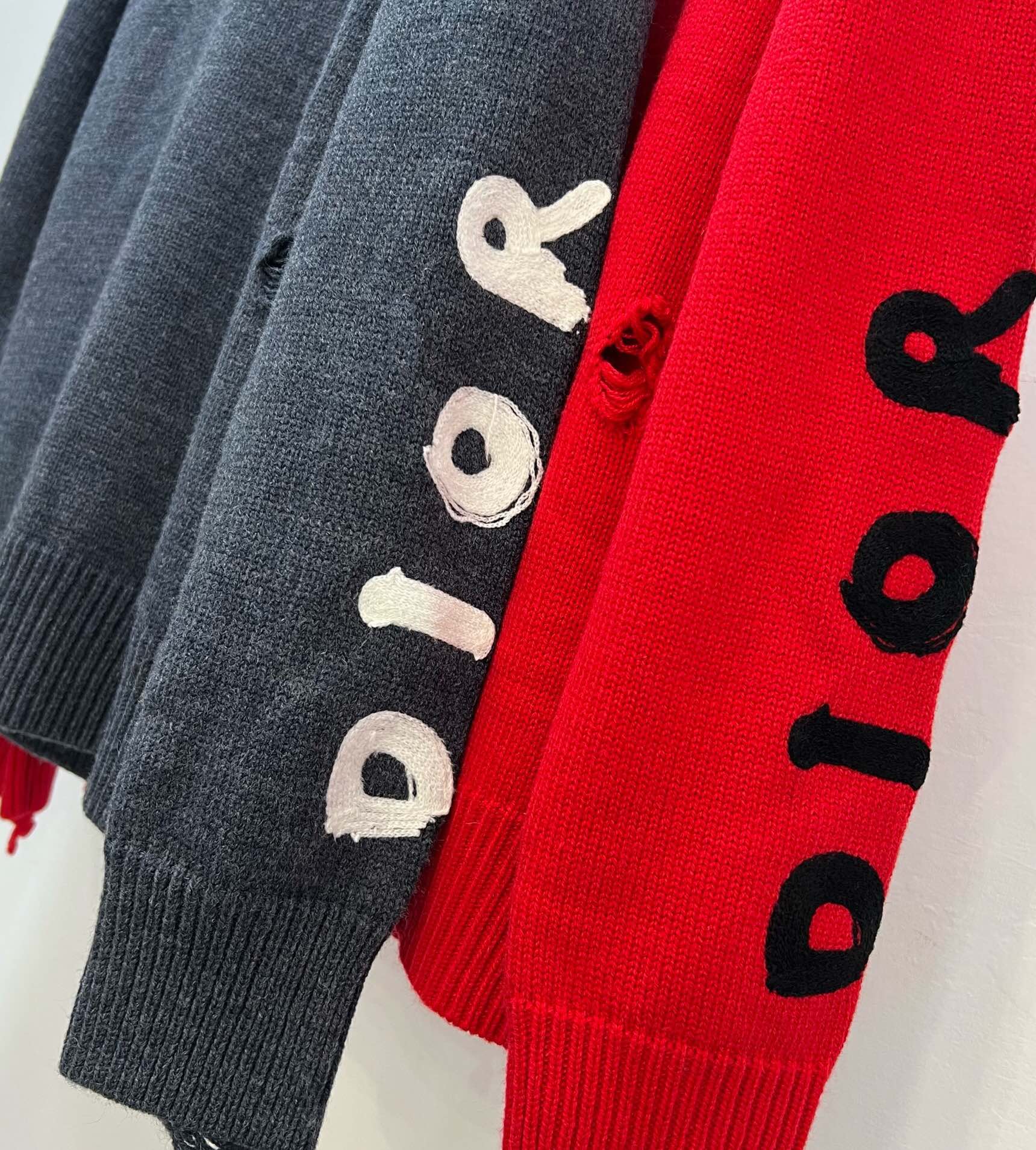 2339# 🔥🔥🔥 【新款】Dior/迪奥女士 恐龙图案刺绣提花 时尚气质破洞毛针织衫毛衣🌹🌹 100%羊毛 颜色:灰 红 码数:SML