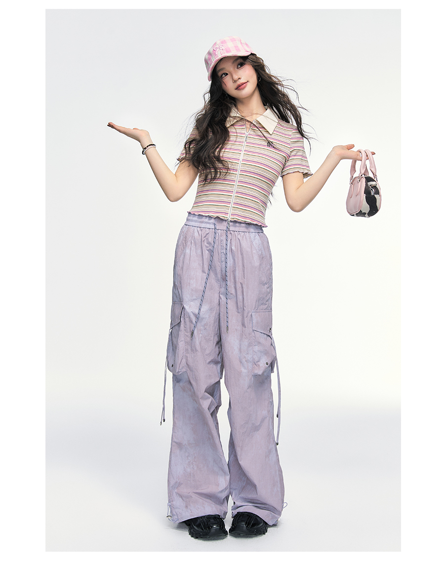 P&X设计师女装 美式抽绳工装梭织休闲长裤宽松显瘦825209215 紫色