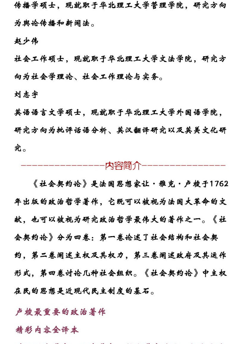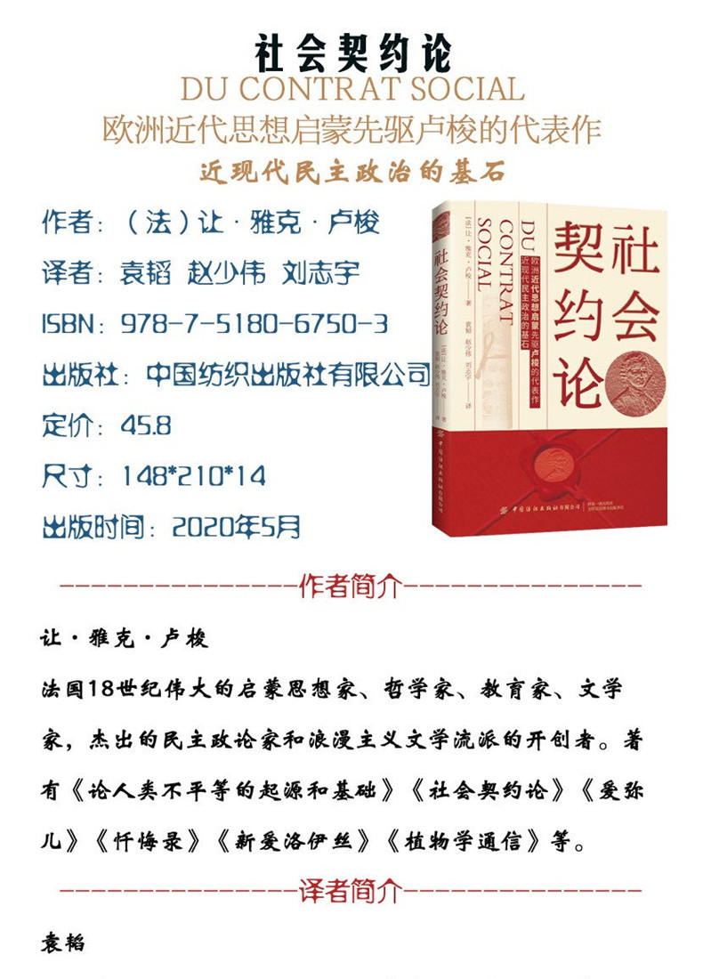 2020新书 社会契约论 欧洲近代思想启蒙先驱卢梭的代表作 现代民主政治的基石 中国传统文学 中国历史科普 政治思想文化 哲学思想