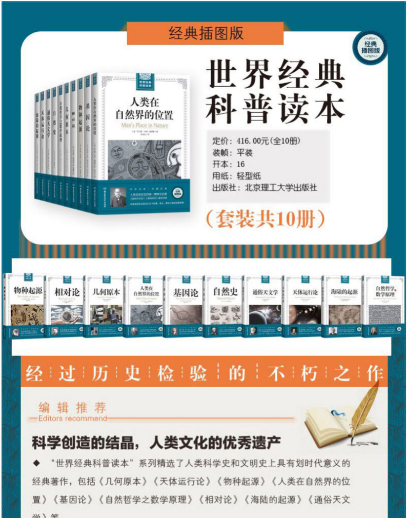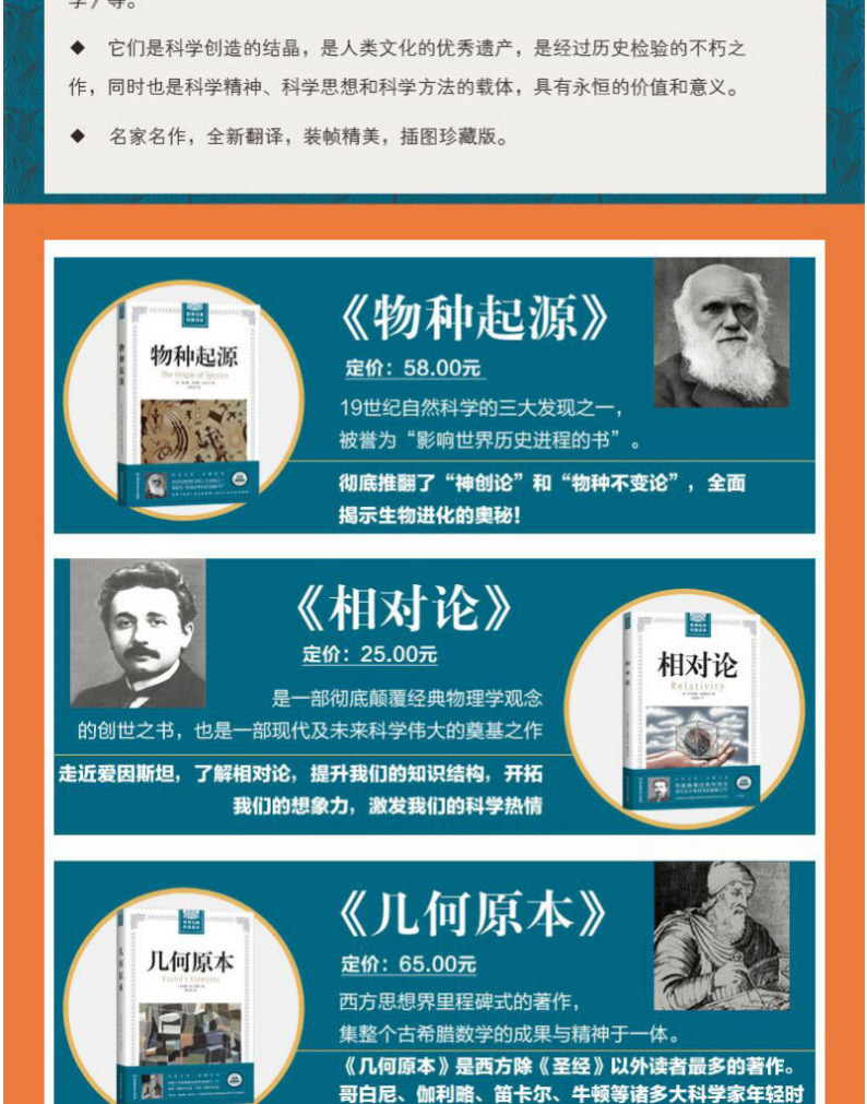 【优惠套装】全10册插图版世界经典科普读本 几何原本+物种起源+自然史+相对论+基因论+天体运行论+数学原理等 达尔文爱因斯坦世界名著畅销书籍