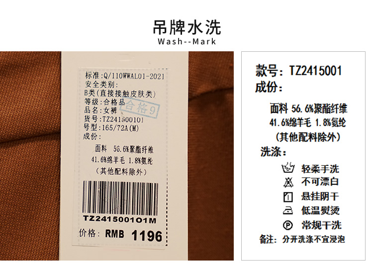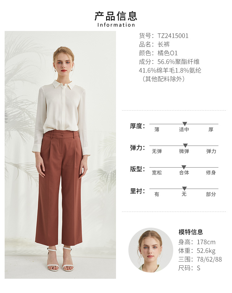 VIVIAN LIU薇薇安刘TZ2415001秋女装新款斜插兜显瘦直筒长裤