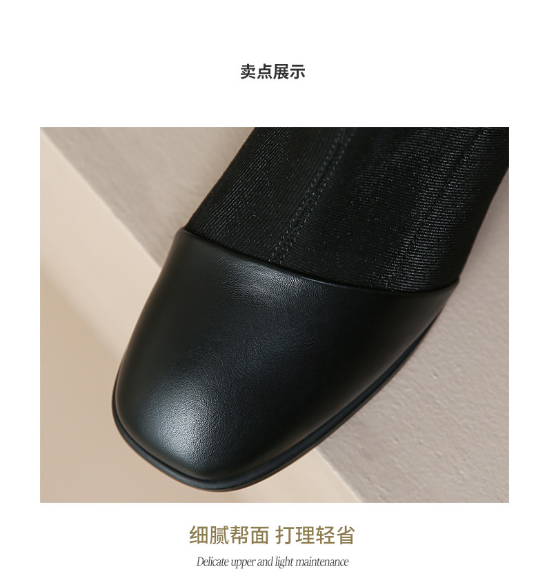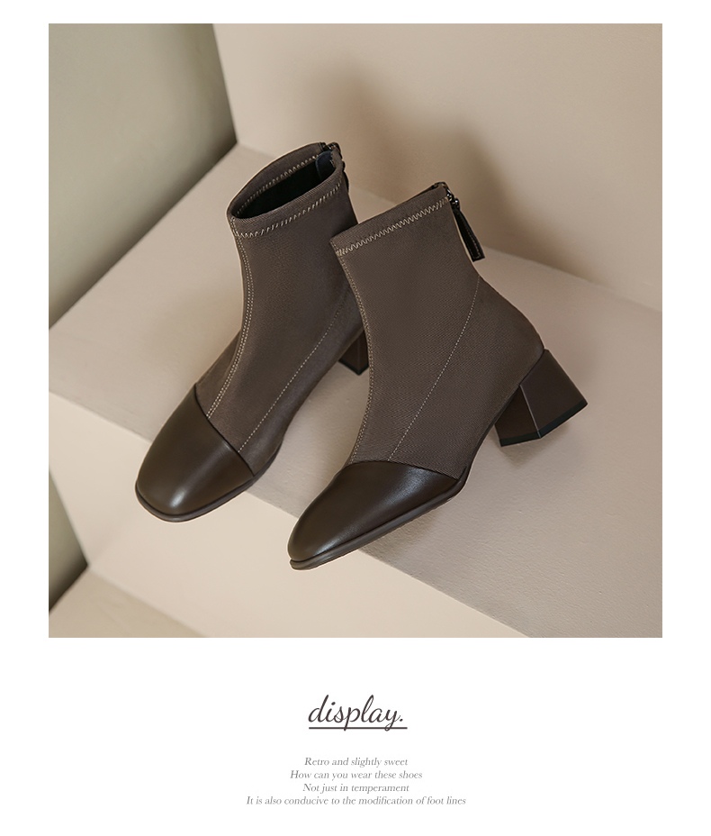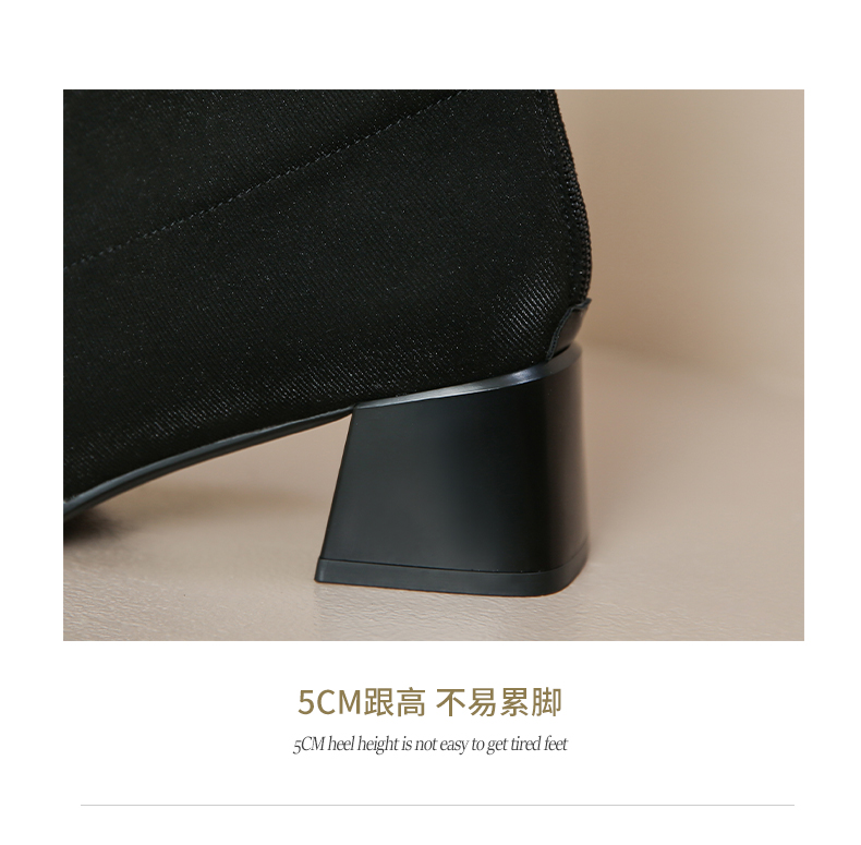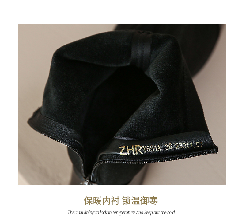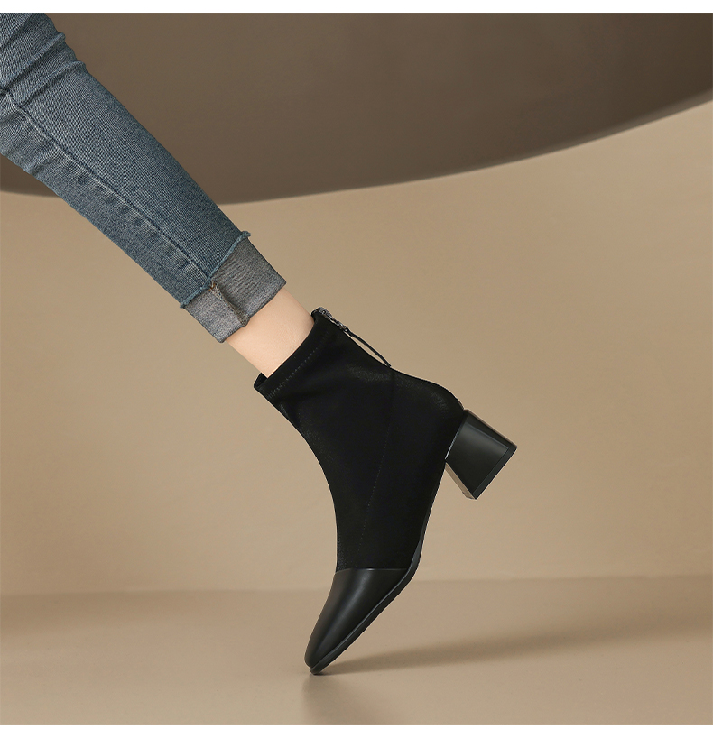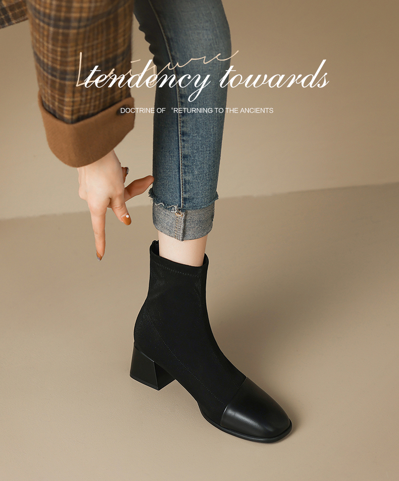 ZHR中跟短靴女2022秋冬新款韩版方头粗跟女靴百搭加绒保暖瘦瘦靴