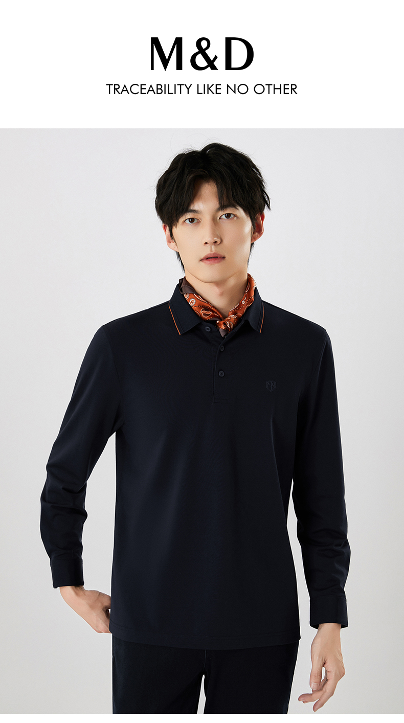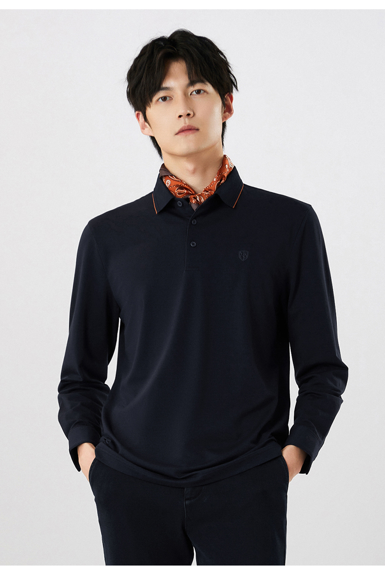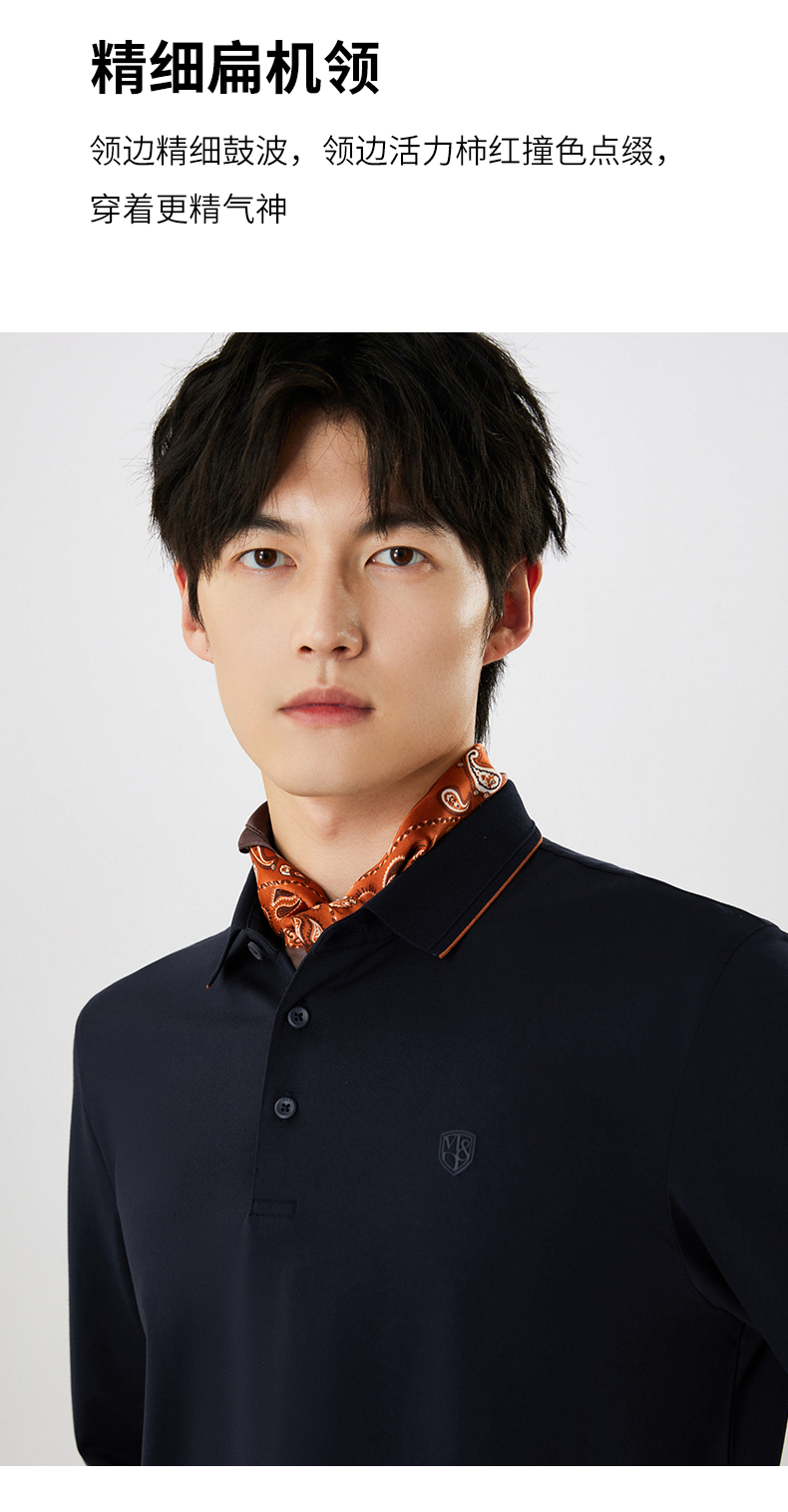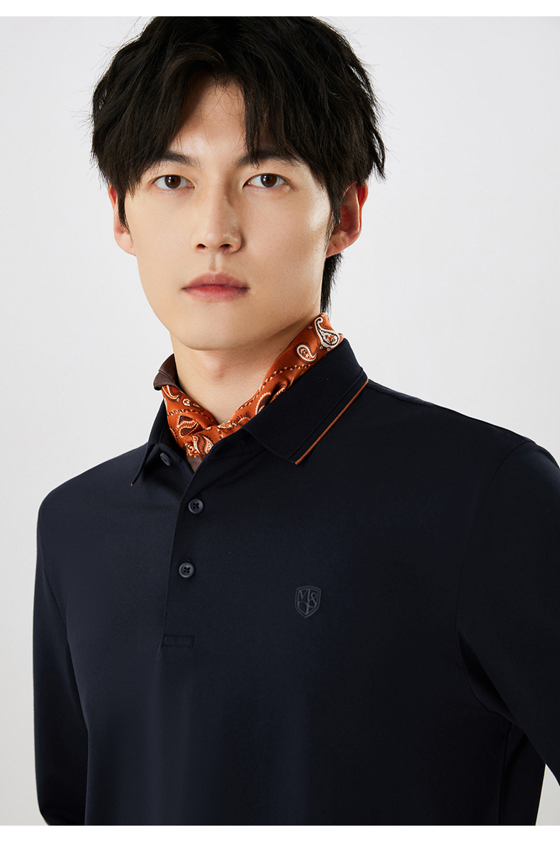 【名盾】撞色长袖POLO衫,珠地结构面料,透气干爽,不易变形MXCL11677B