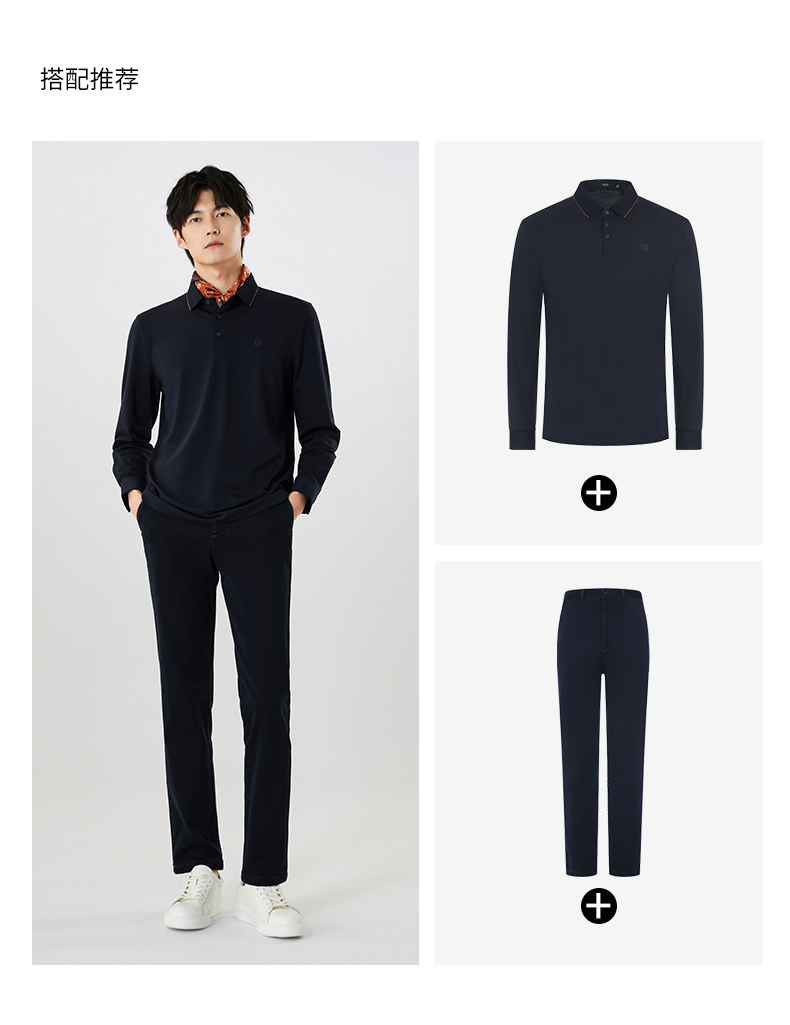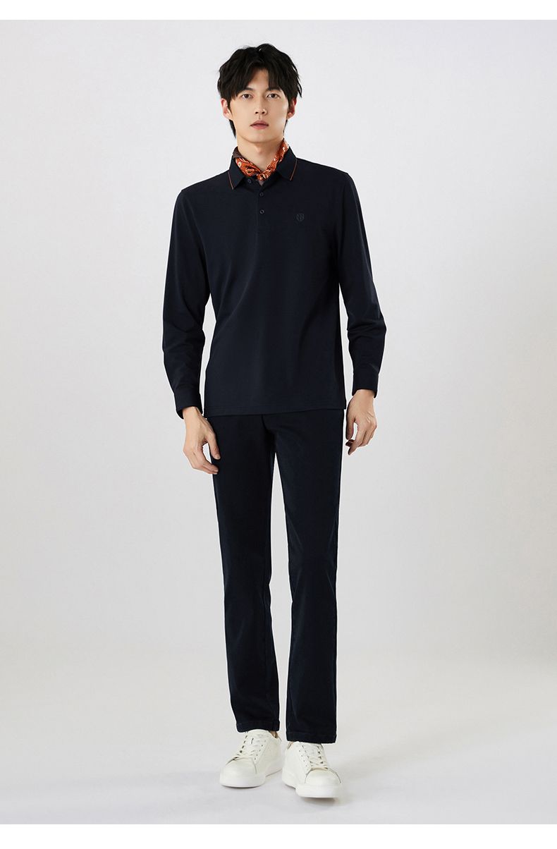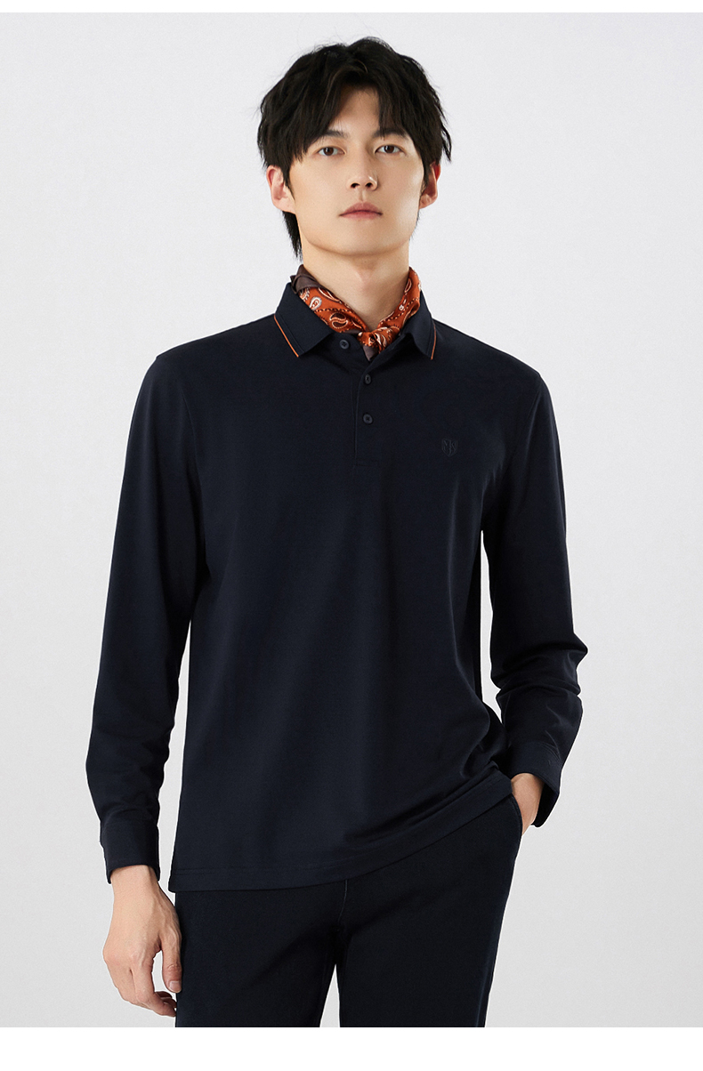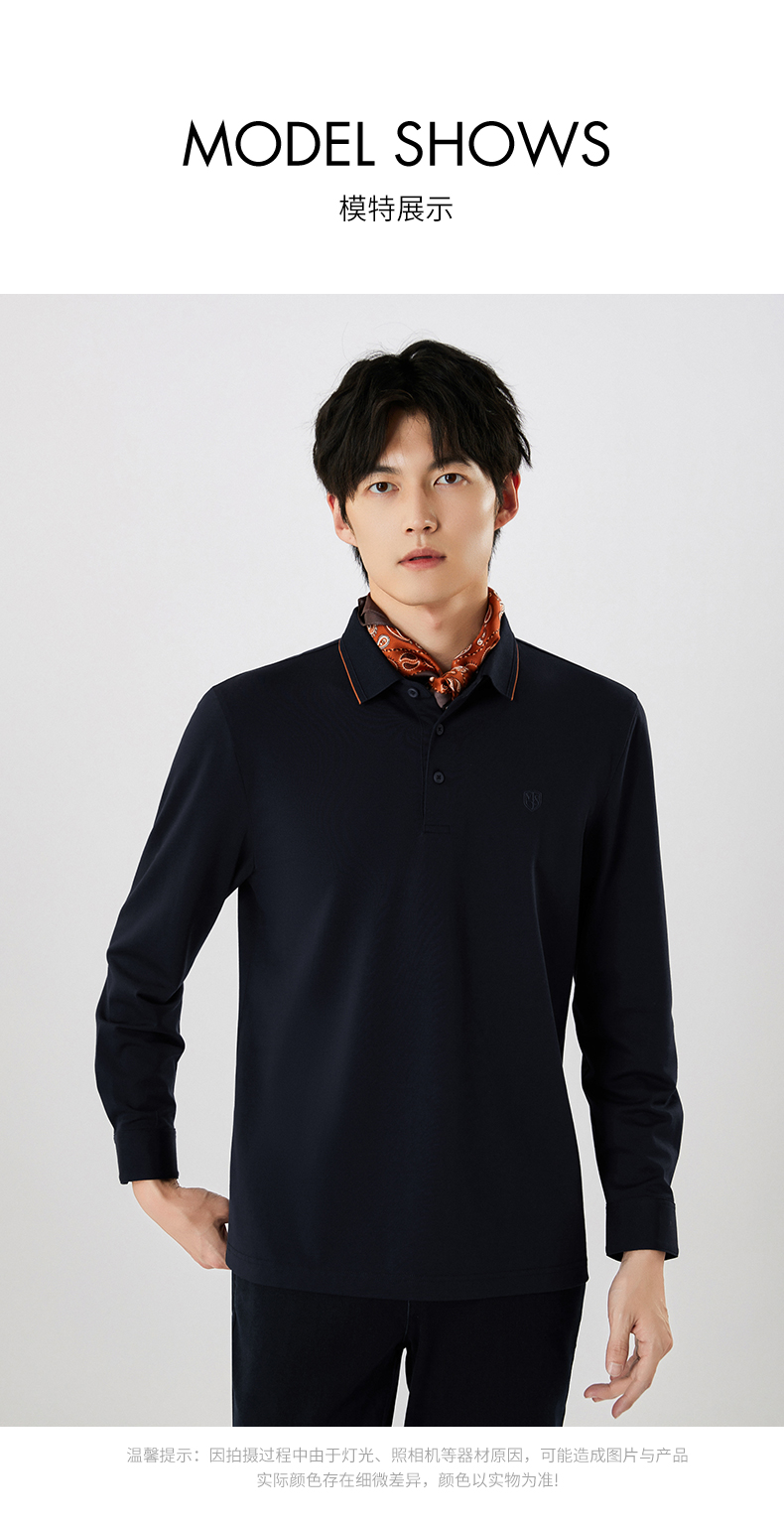 【名盾】撞色长袖POLO衫,珠地结构面料,透气干爽,不易变形MXCL11677B