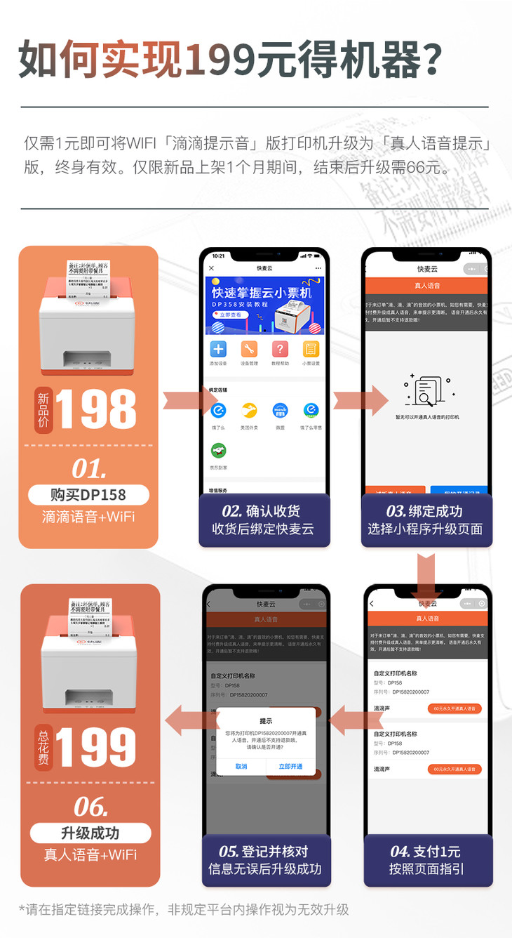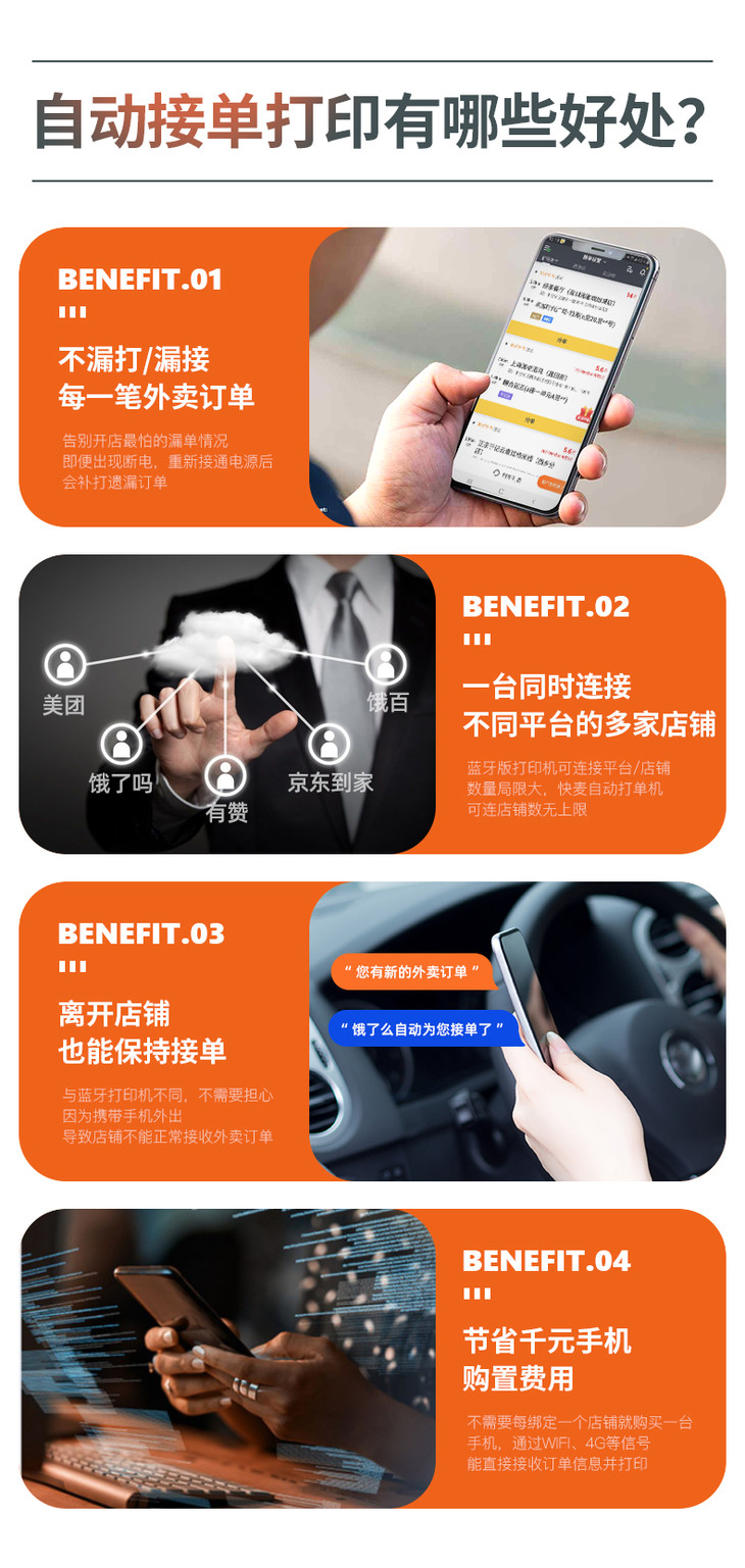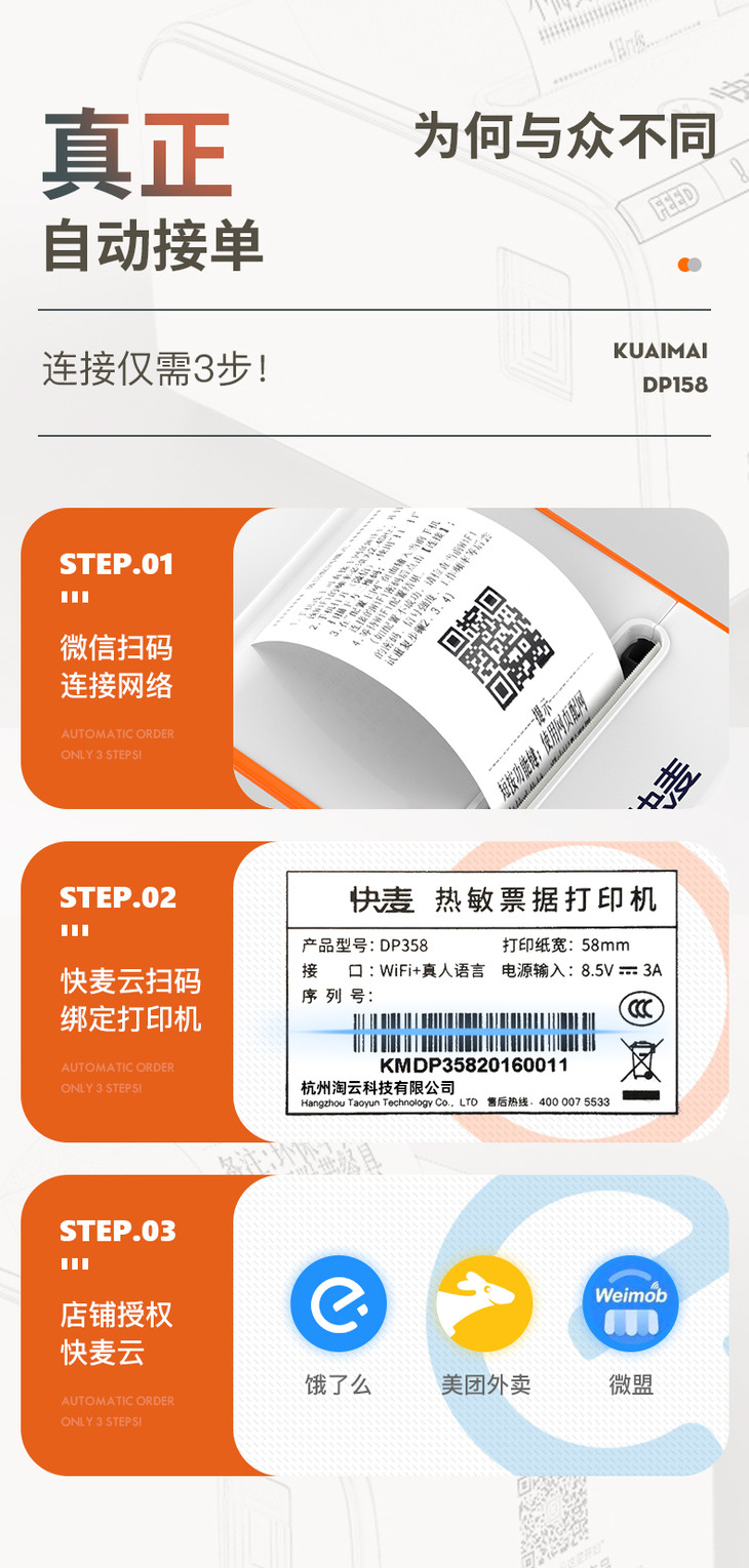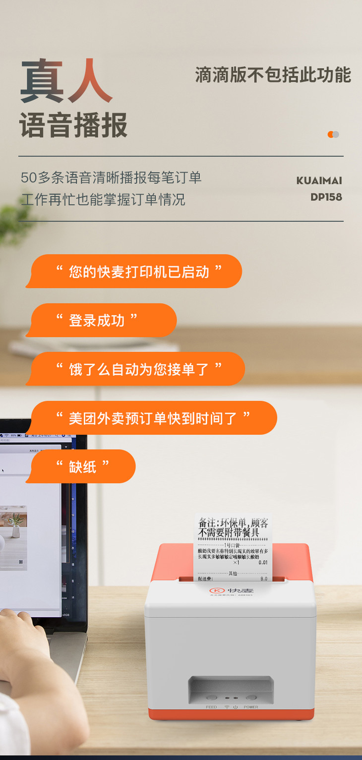 快麦外卖打印机饿了么真人语音全自动接单神器多平台热敏打单机订单美团手机无线WIFI云打印机微盟收银小票据