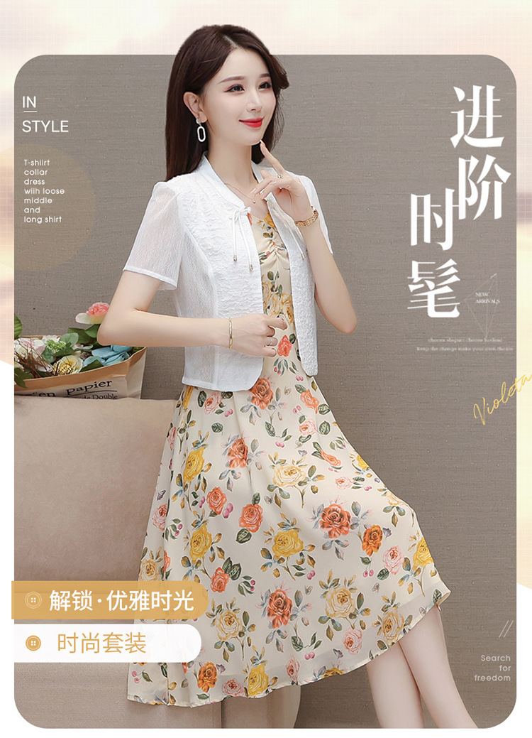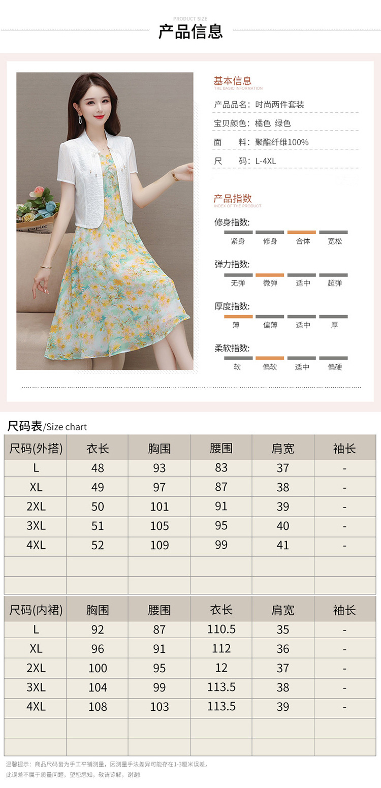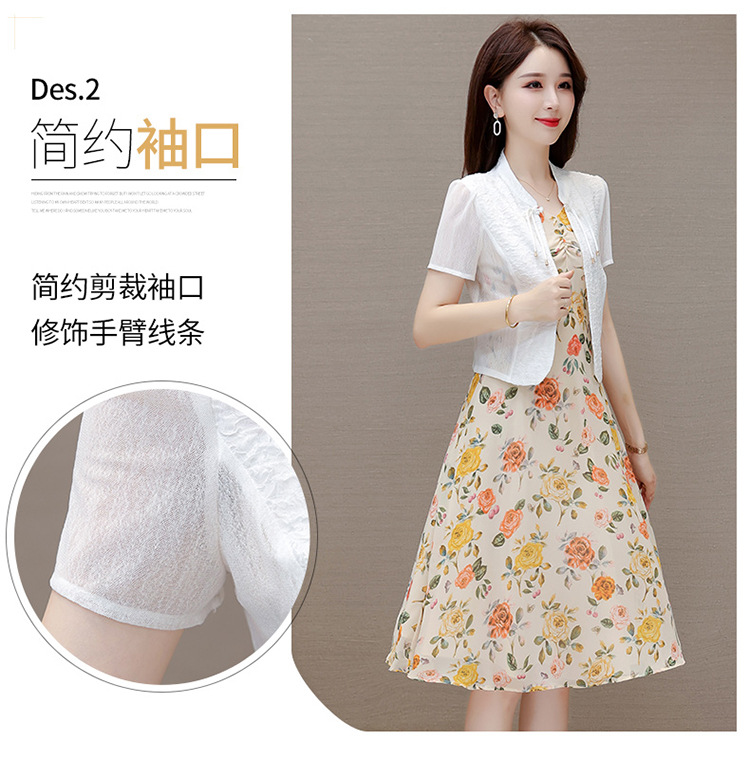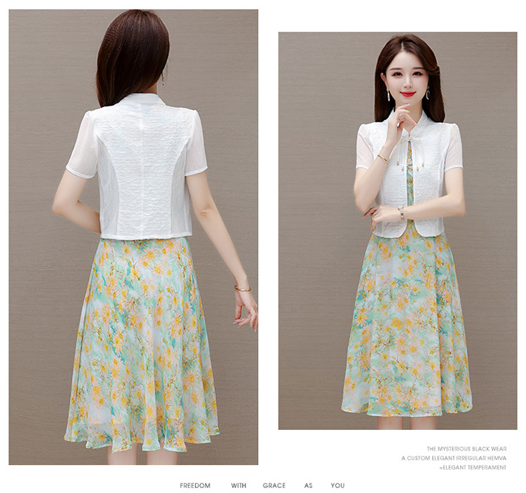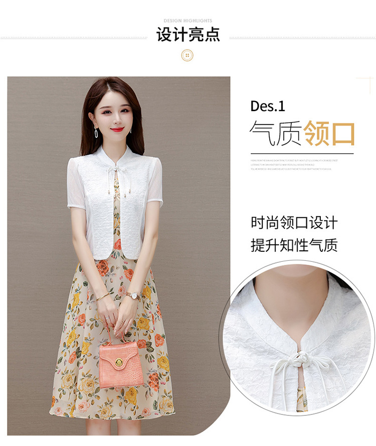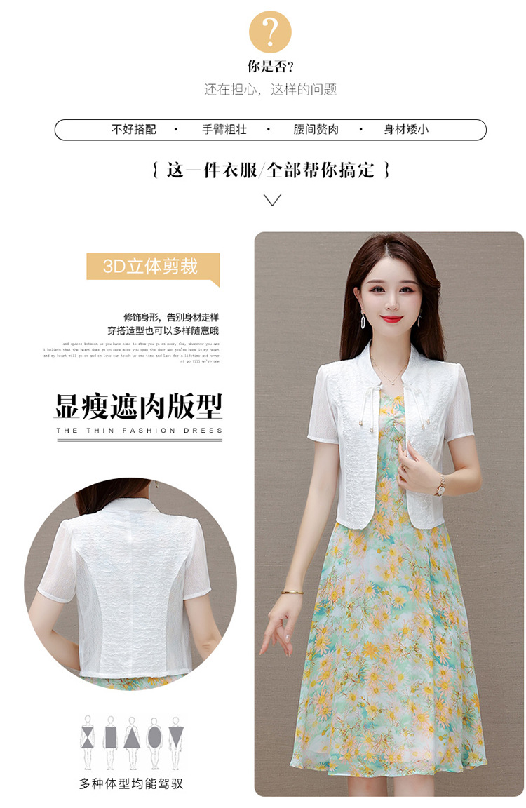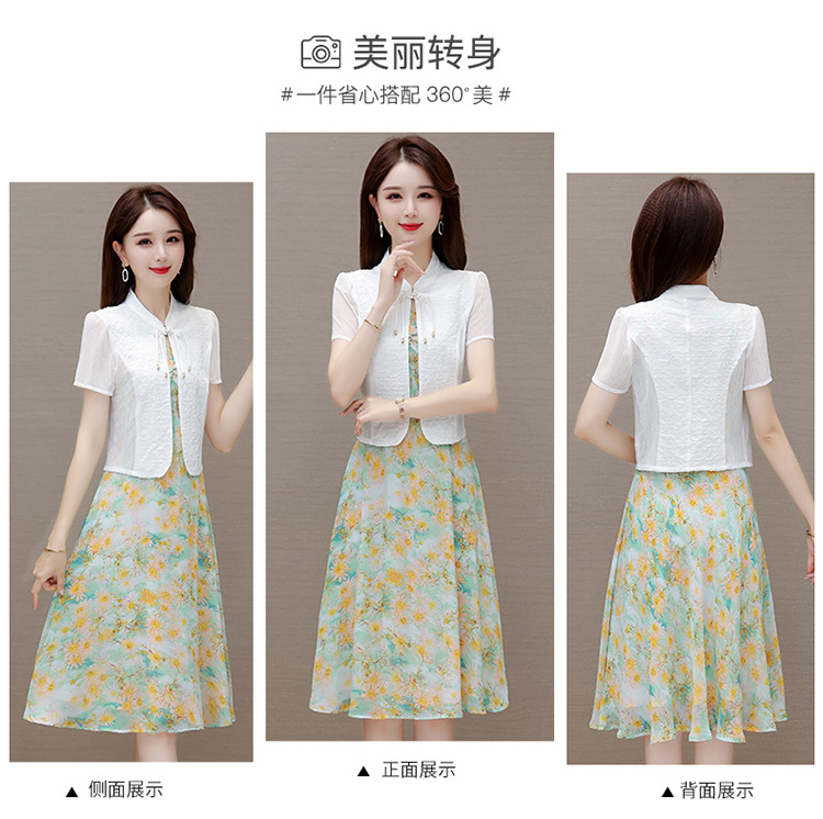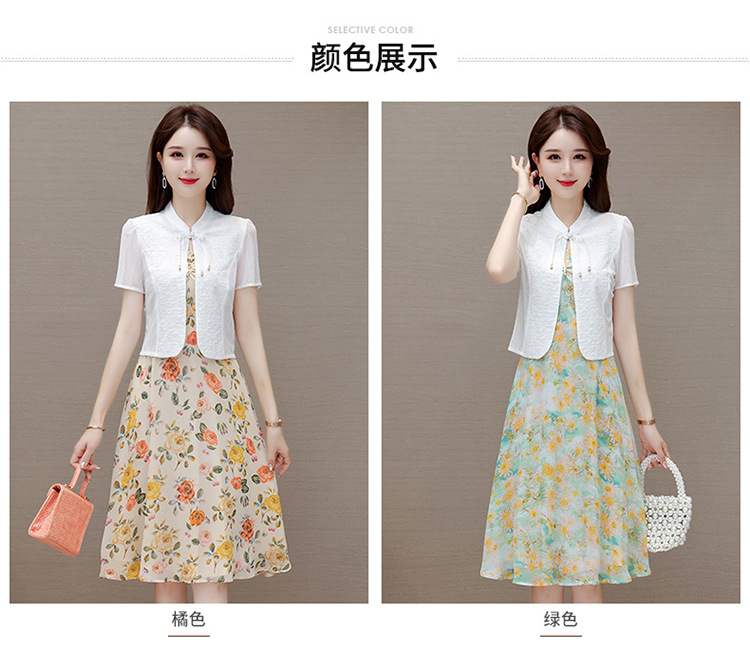 夏款时尚,印花简约中长款内搭连衣裙国风时髦短袖开衫两件套QYM-XYKL-J49-L