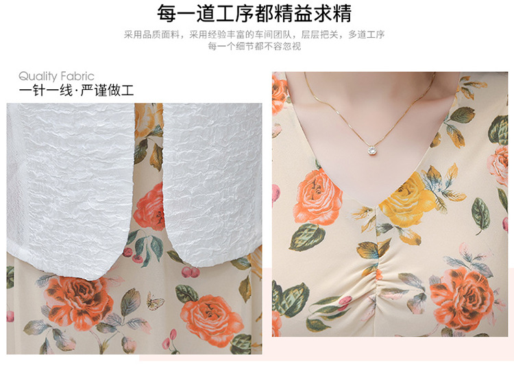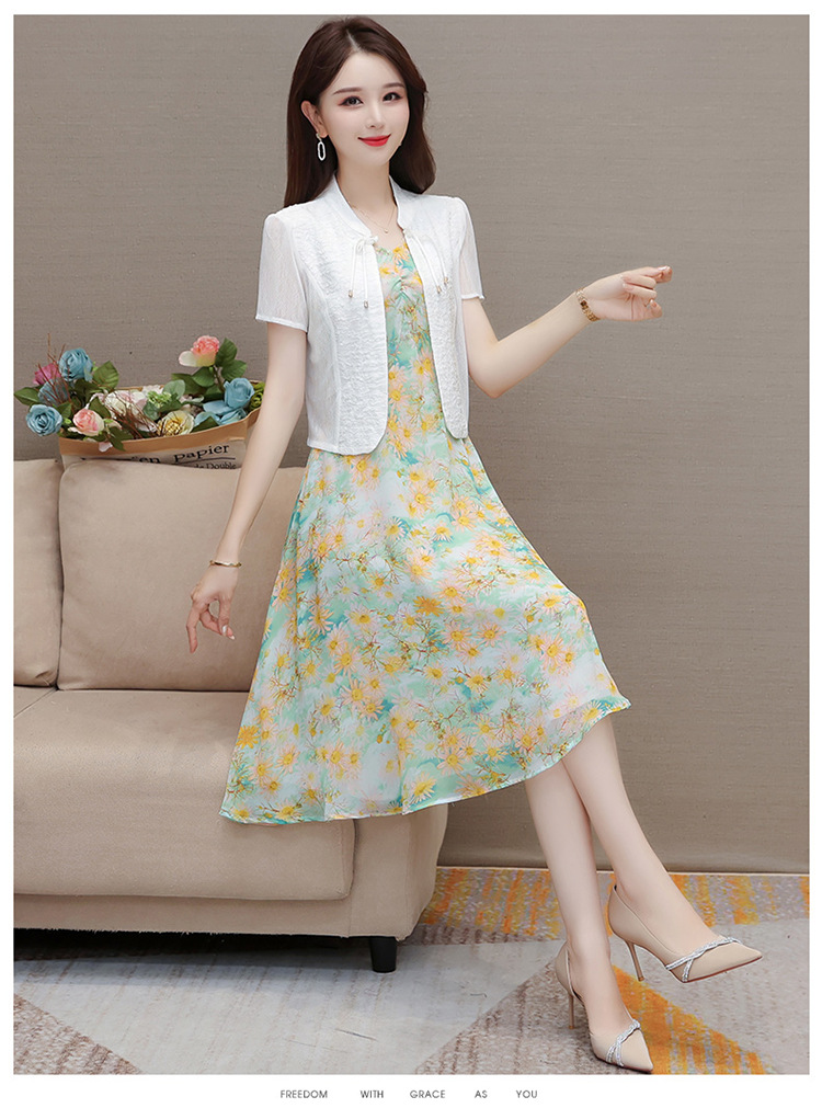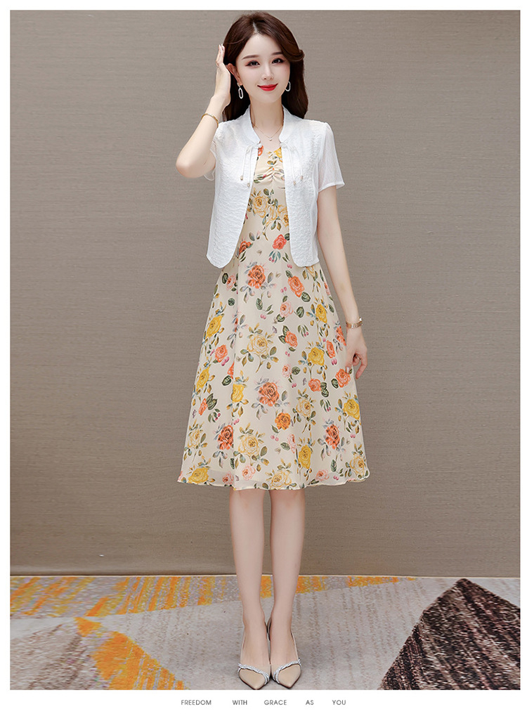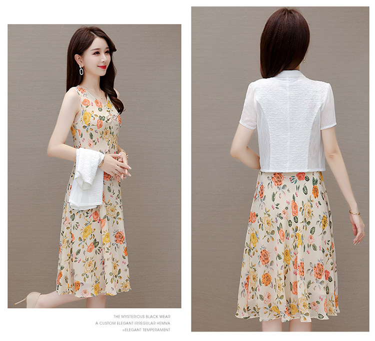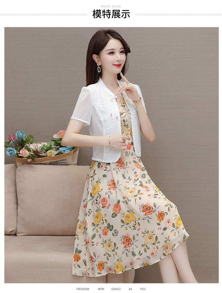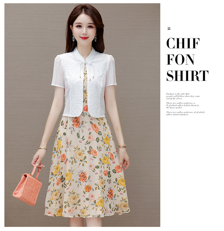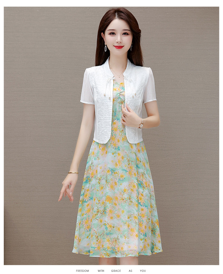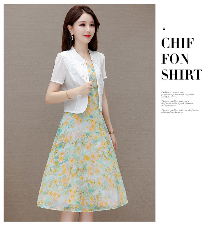 夏款时尚,印花简约中长款内搭连衣裙国风时髦短袖开衫两件套QYM-XYKL-J49-L