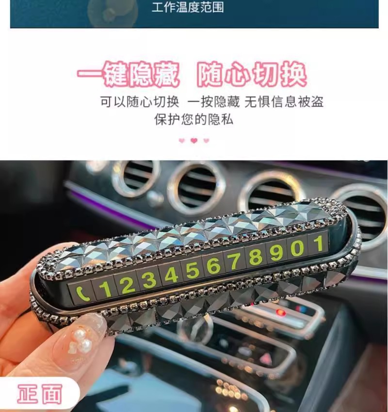 「高颜值!隐藏可移动号牌」停车号码牌 夜光塑料防滑型通用款黑色电话牌挪车牌车载饰品