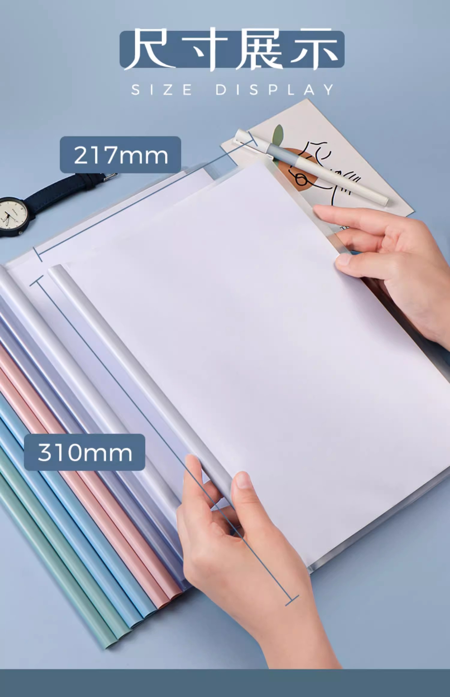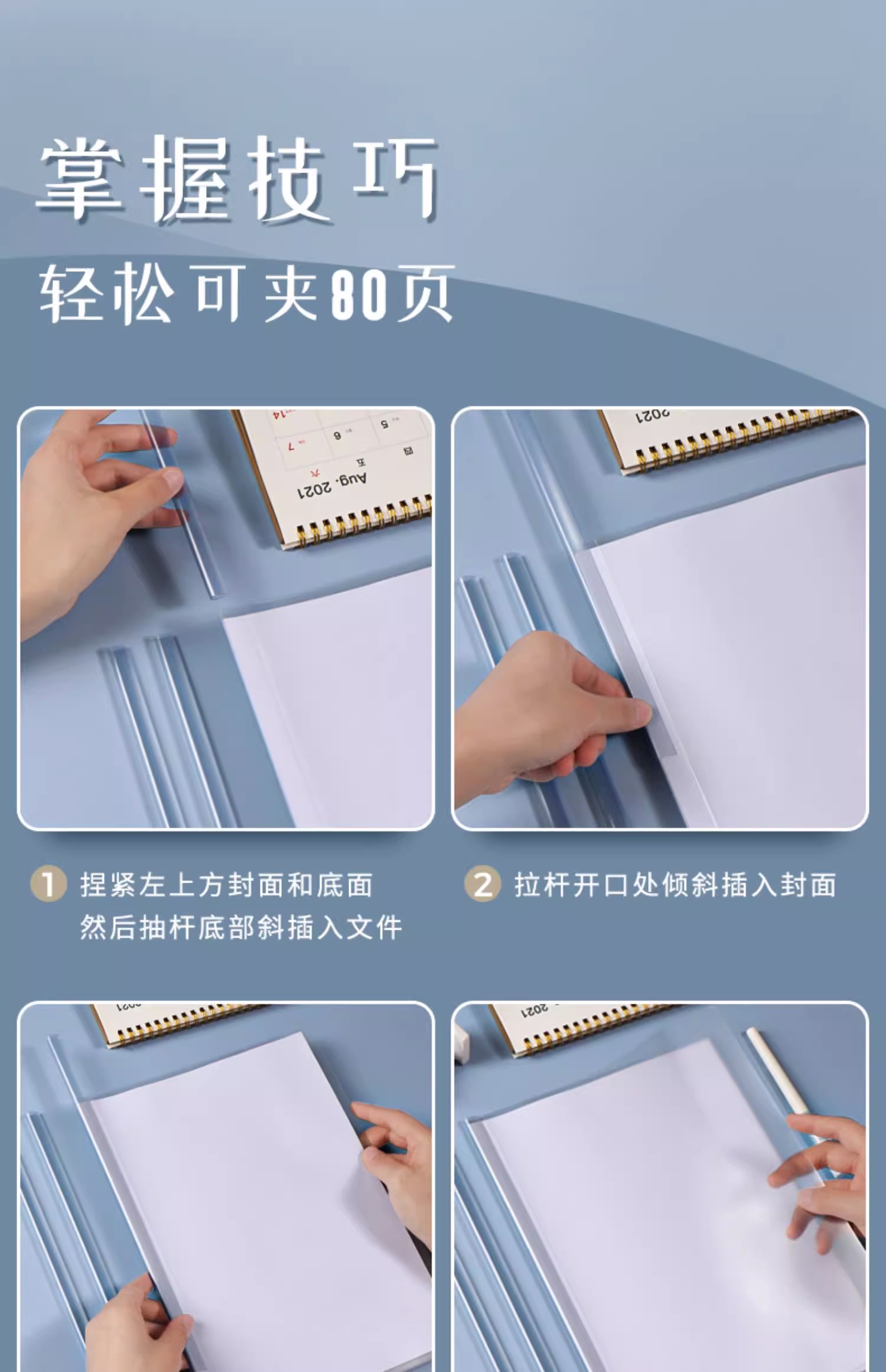 心选丨开学季福利!【莫兰迪色水滴杆 20个装 可夹100张】 A4抽杆夹资料夹拉杆夹文件夹加厚大容量档案试卷书皮夹书夹子学生用资料收纳册抽拉杆透明插页办公用品活页夹