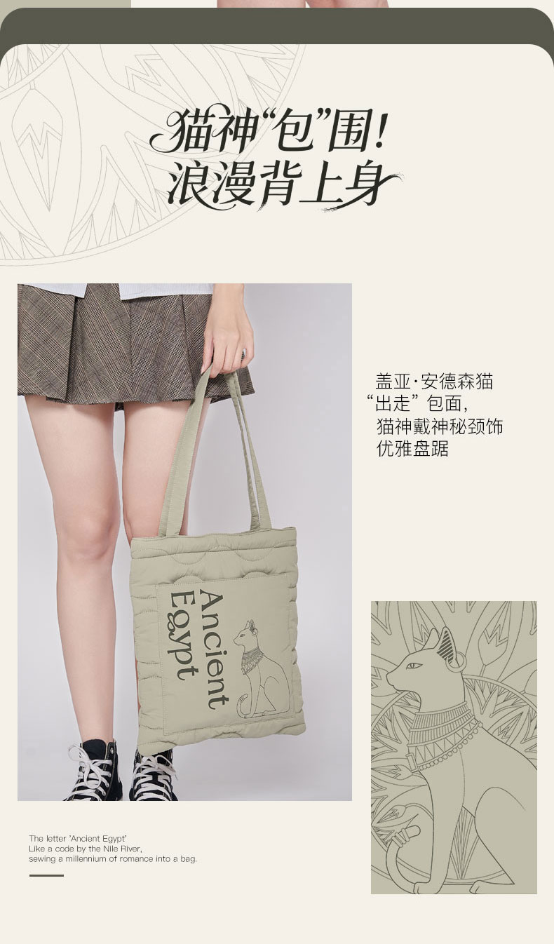 大英博物馆 盖亚·安德森猫系列 珩缝口袋电脑包单肩包
