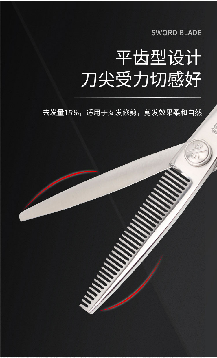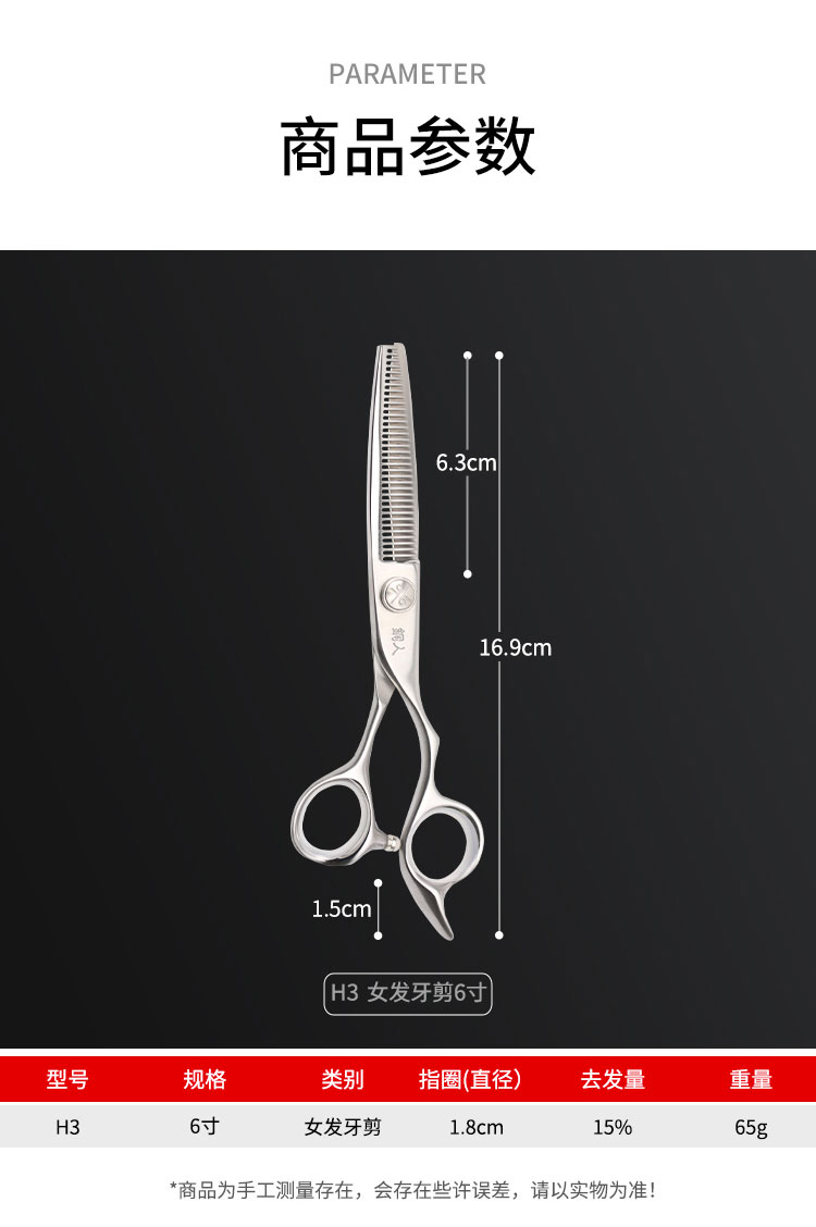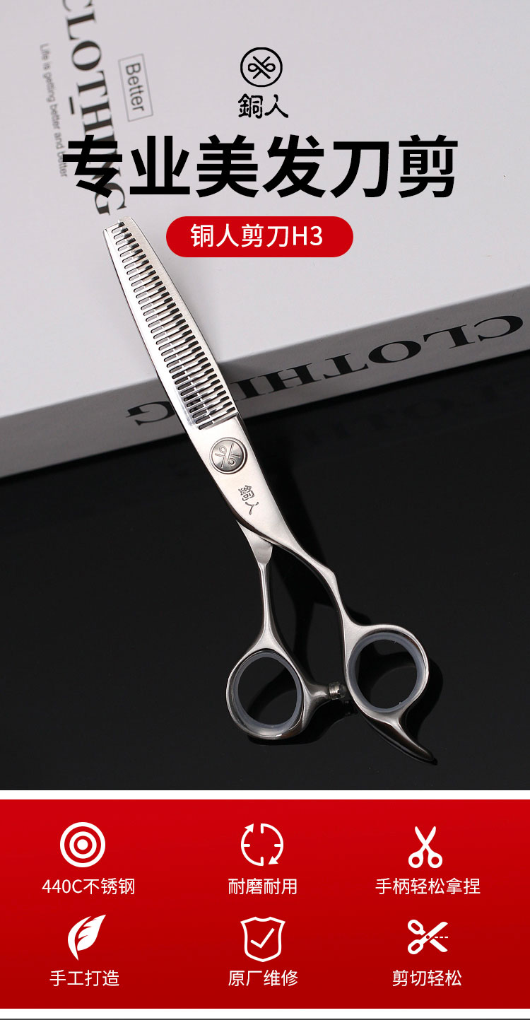 铜人牙剪H3 牙剪/调量剪/女发牙剪/打薄剪/去发量15%/ 平齿/30根齿/正刃/6寸