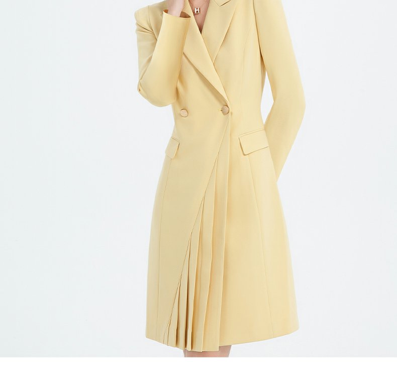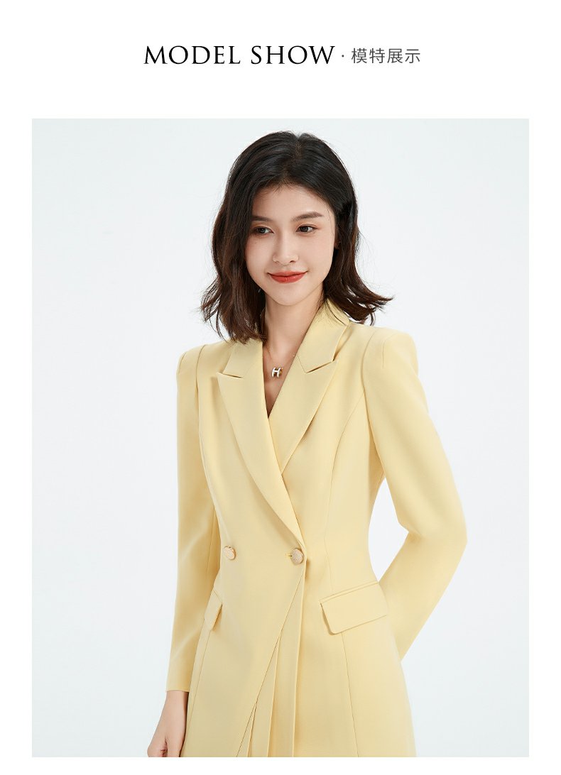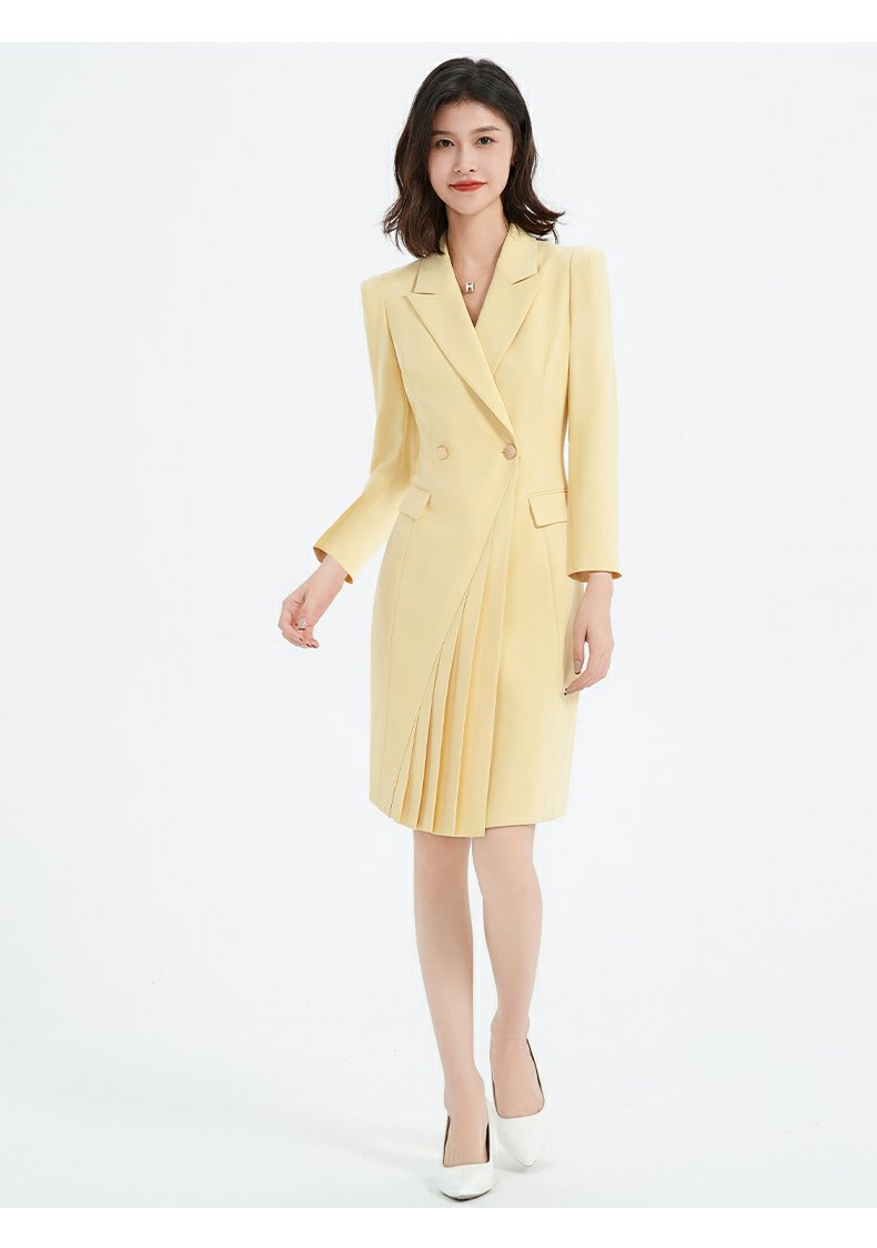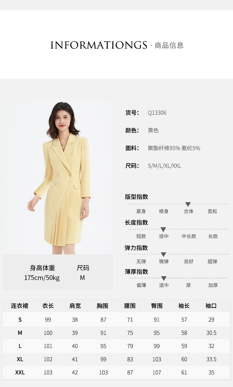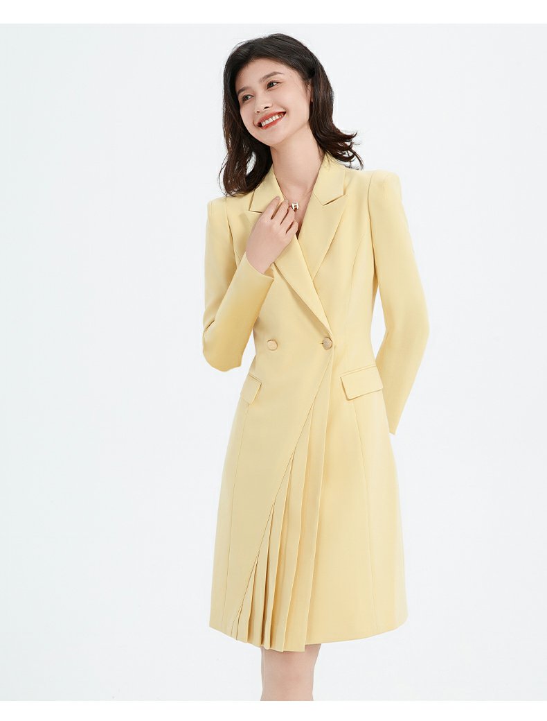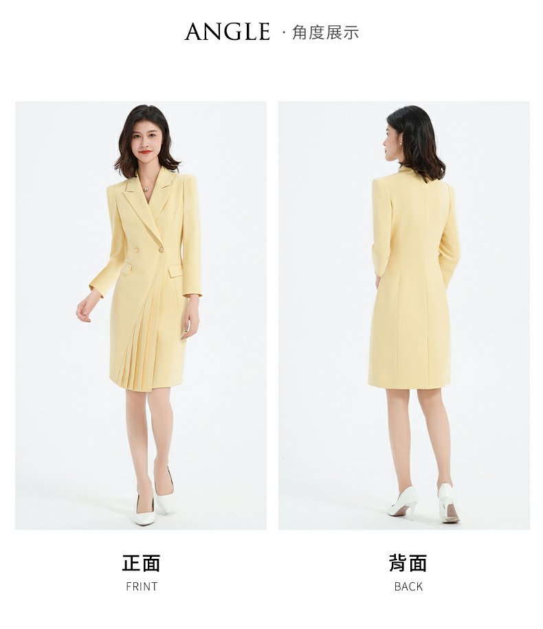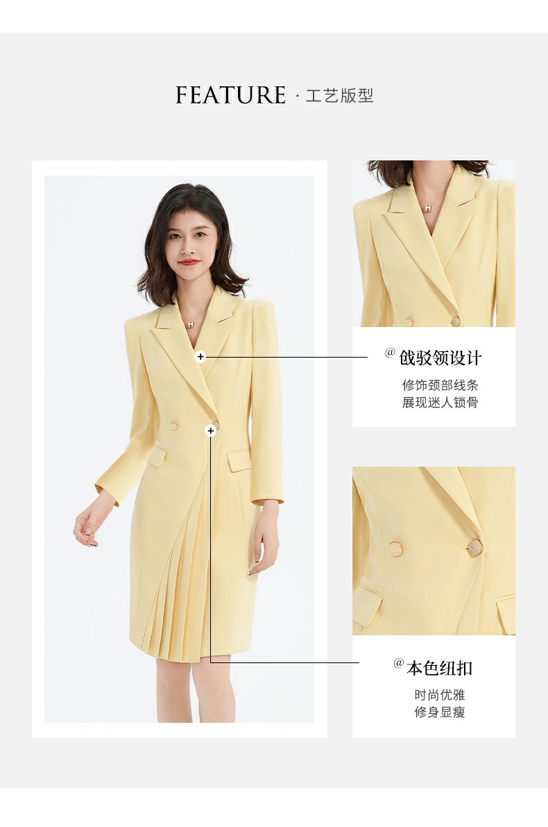 IWY/秋冬款长袖西装连衣裙女气质百褶显瘦上镜播音艺考裙设计感工Q13306