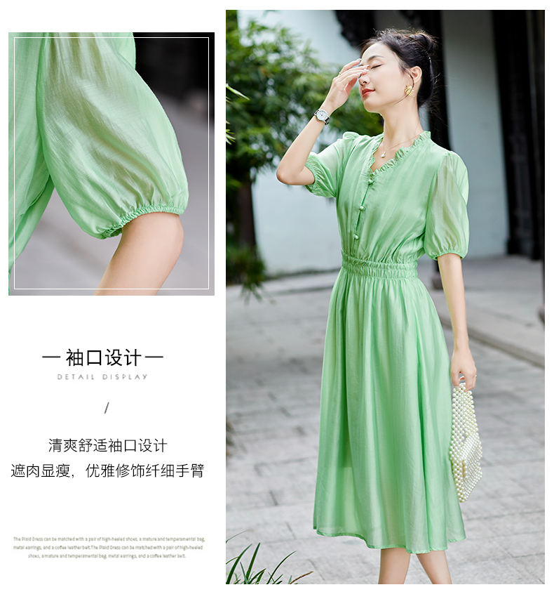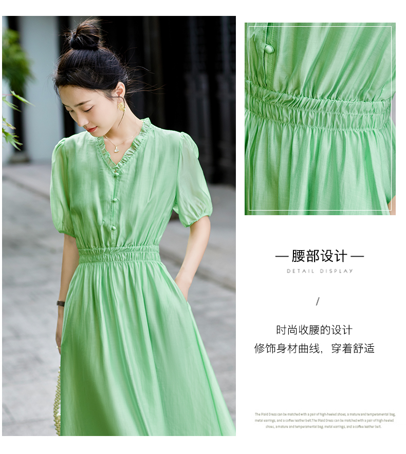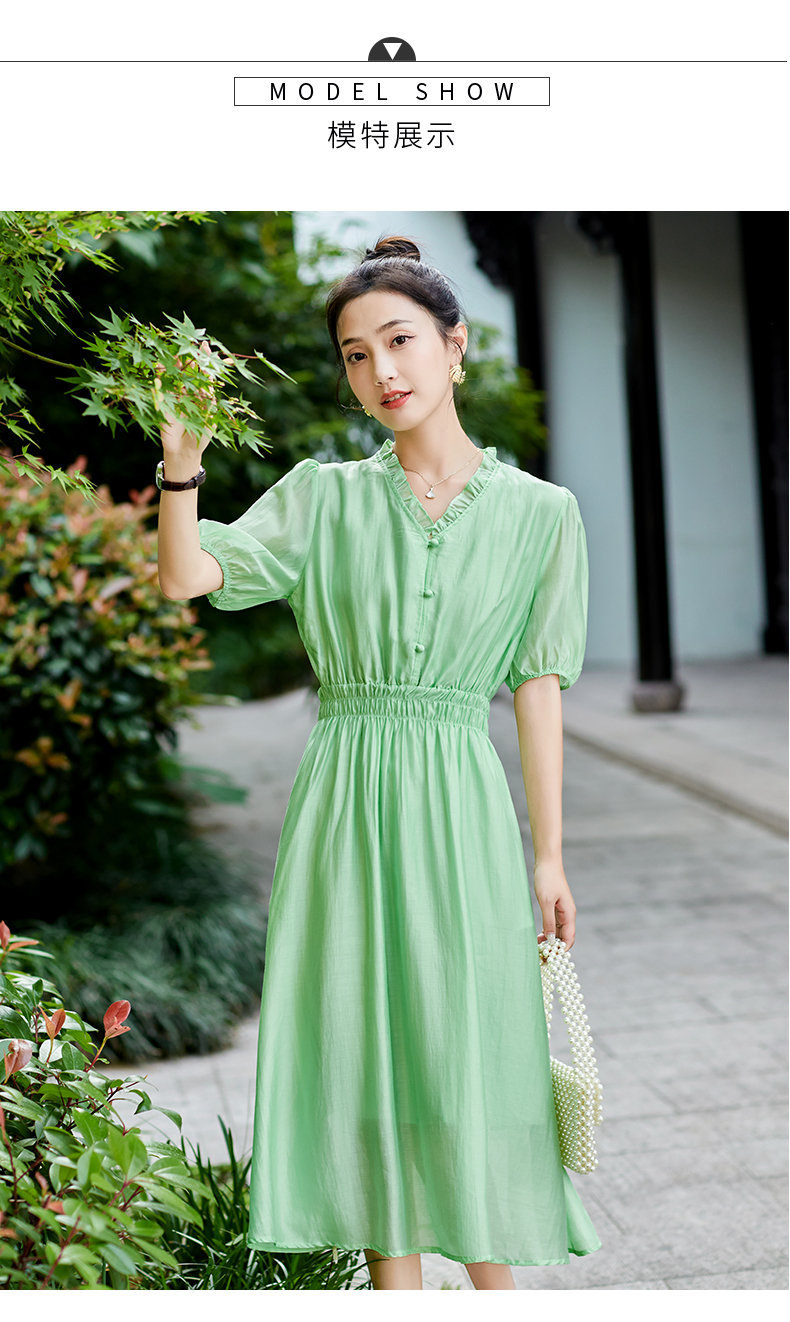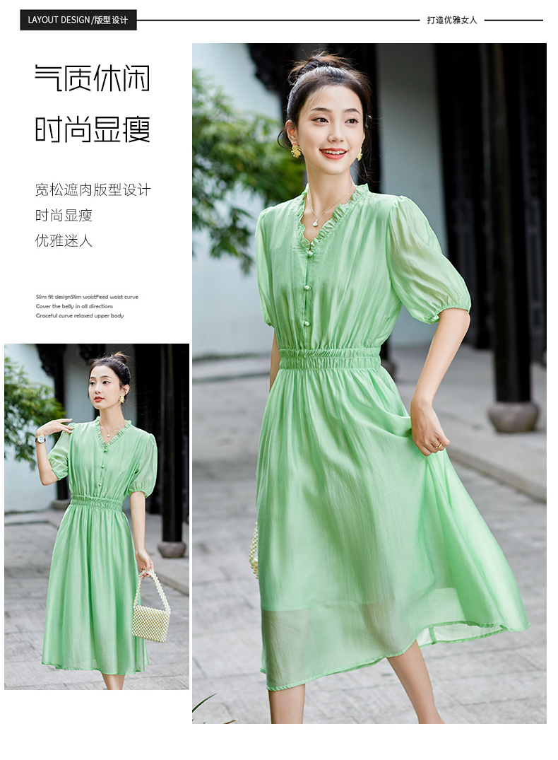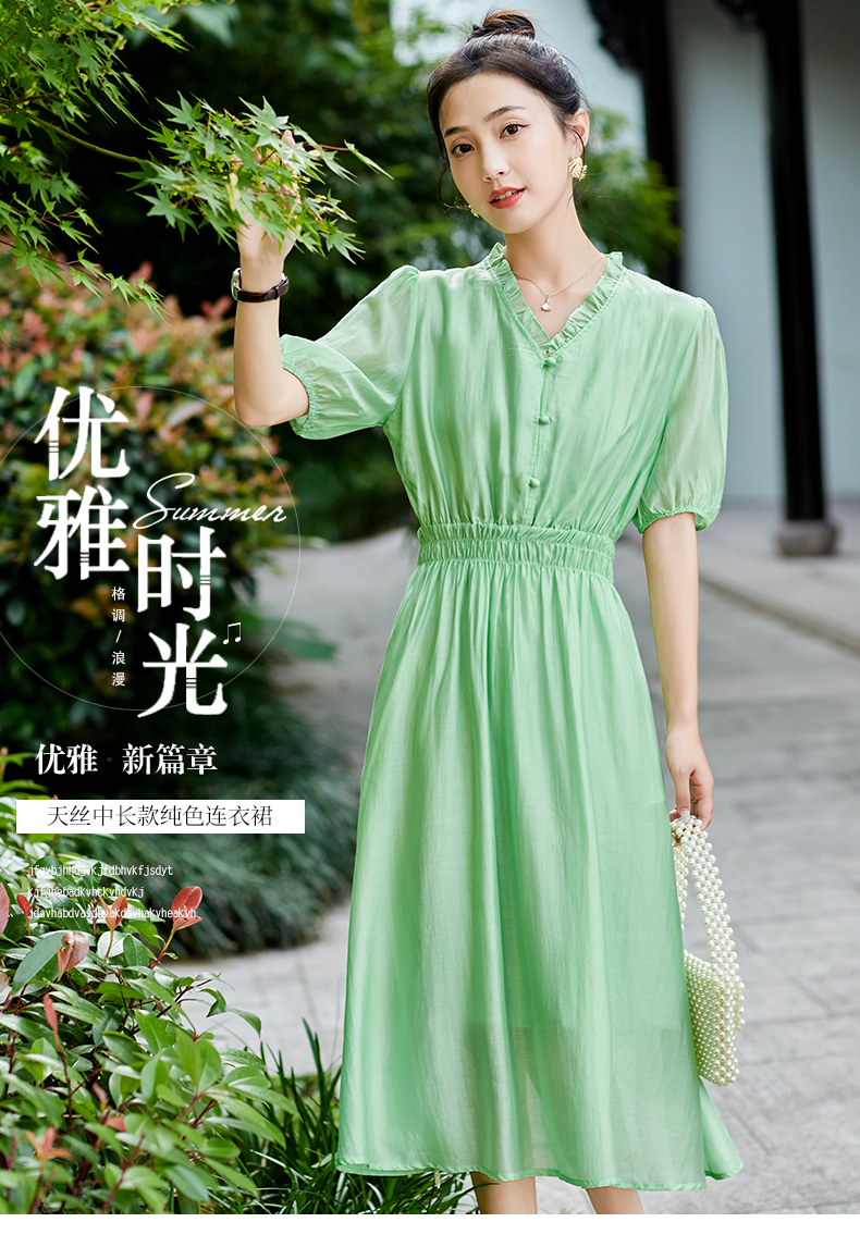 纯色小清新,天丝收腰连衣裙HR-SYY2323B-1