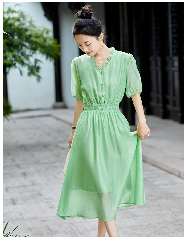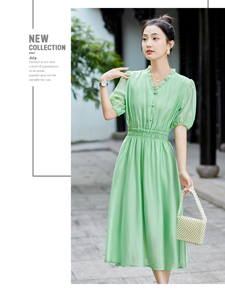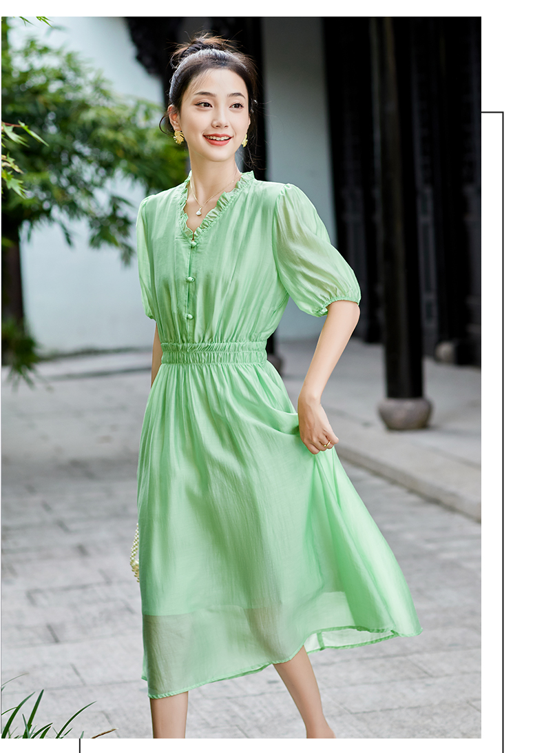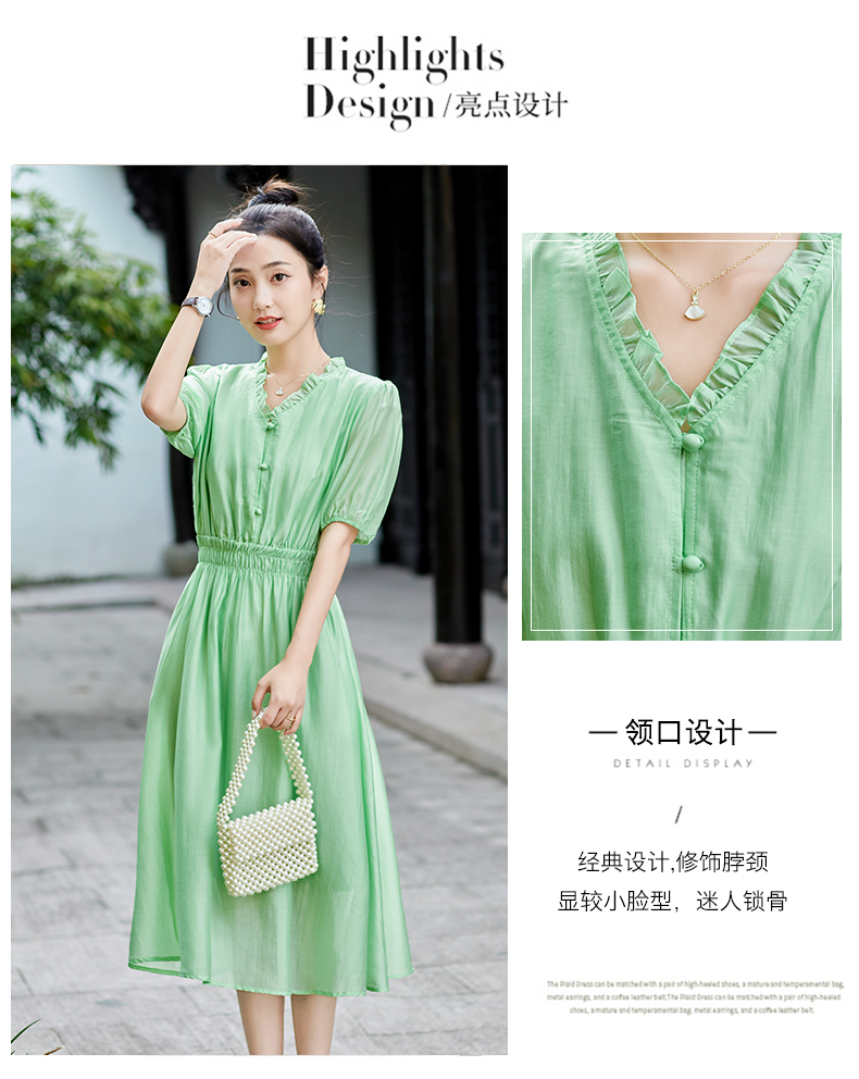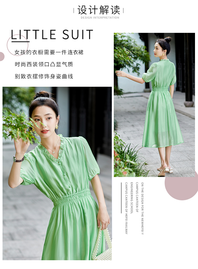 纯色小清新,天丝收腰连衣裙HR-SYY2323B-1