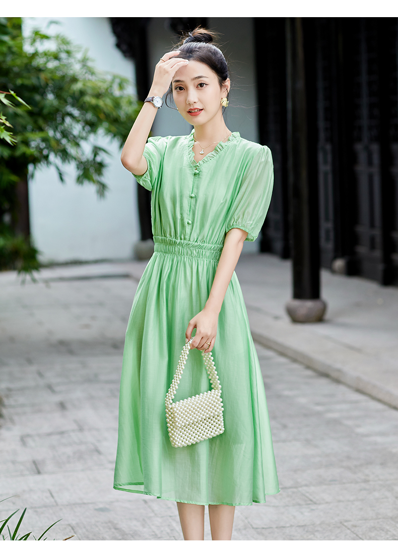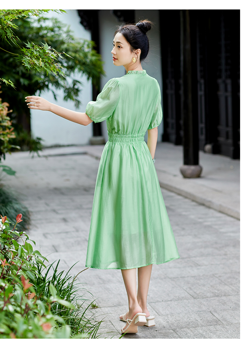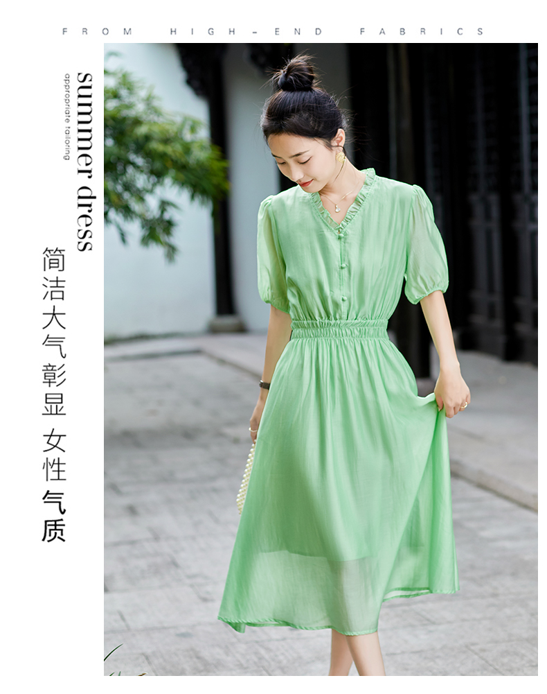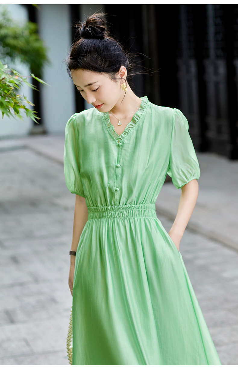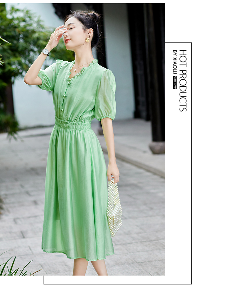 纯色小清新,天丝收腰连衣裙HR-SYY2323B-1