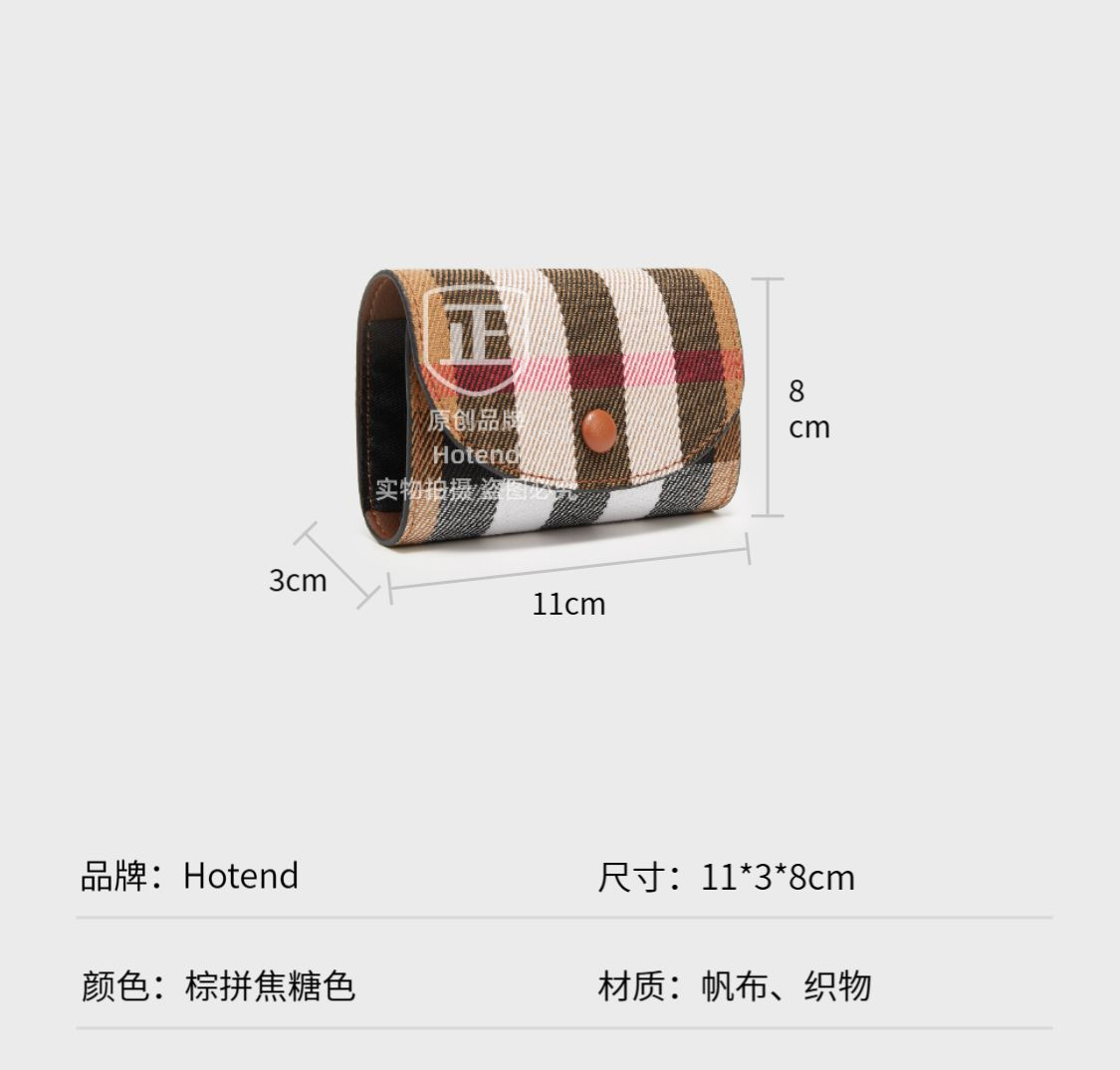 【国内普通仓】Hotend轻奢经典时尚条纹扣式卡包 约11*3*8cm