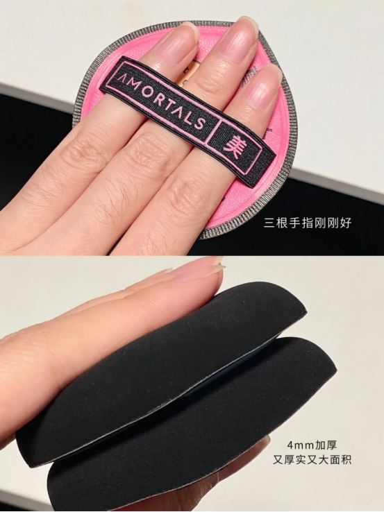 黑加粉扑采用rubycell扑面材质💯 高分子材料结构✅不易吃粉 💖4mm加厚超大扑面上妆软糯厚实 黑色扑面能👀看清取粉情况 棉花糖般触感🆙高弹高密度海绵 中空结构支撑力气🤗稳定上妆瓷实服帖