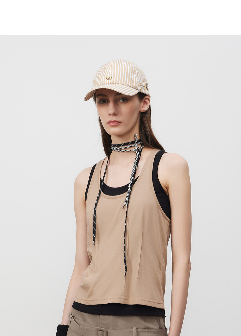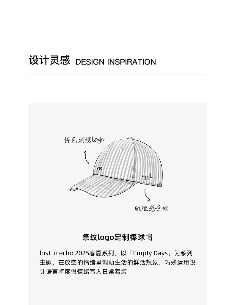 lost in echo2025春夏新款时髦百搭撞色条纹logo蓝白棒球帽帽子