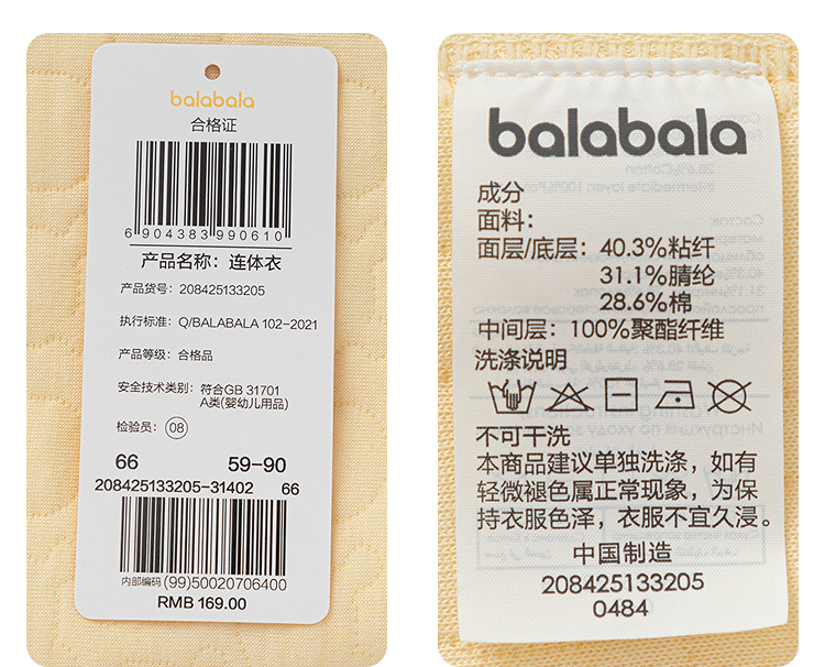 巴拉巴拉balaOne婴儿连体衣冬装2025新款新生儿衣服夹棉保暖舒适