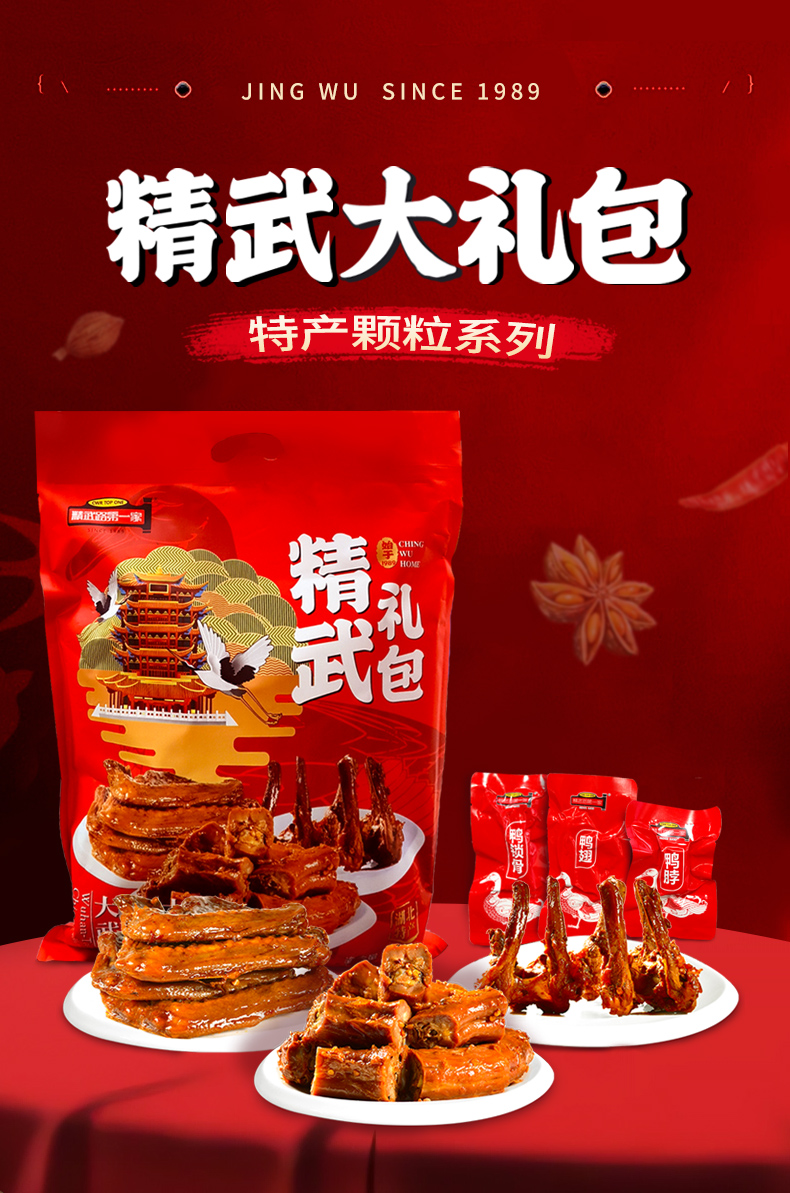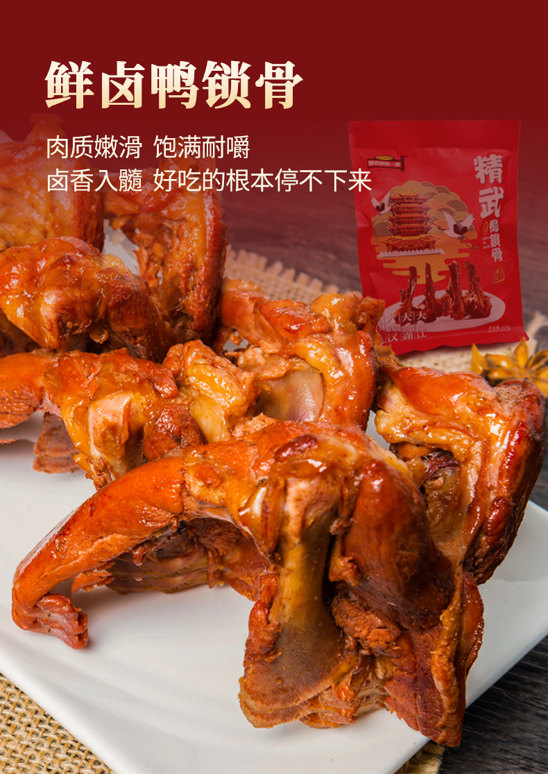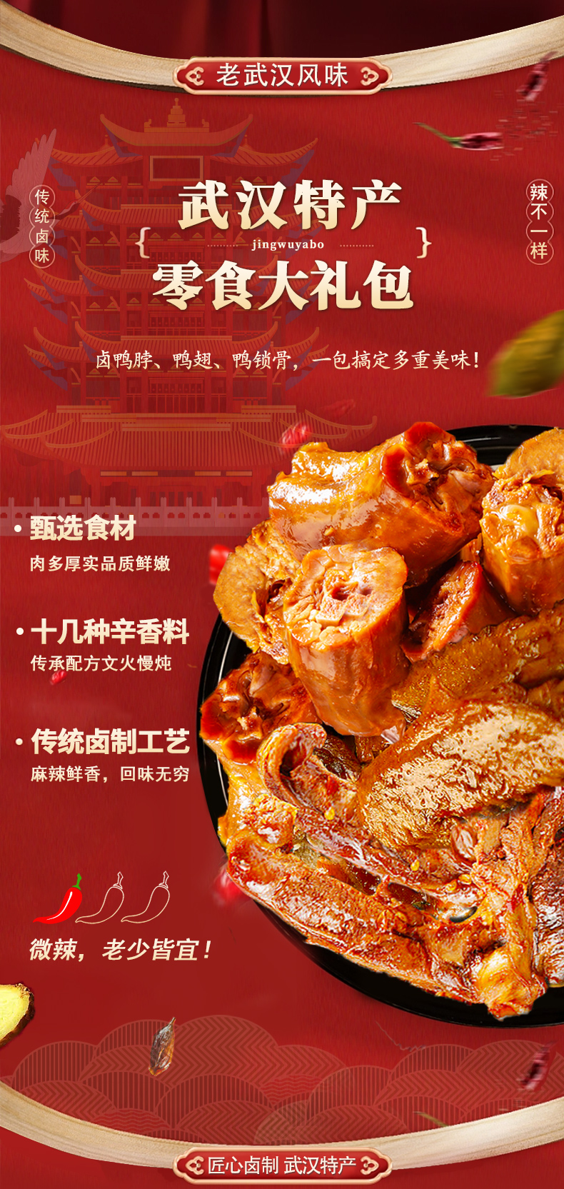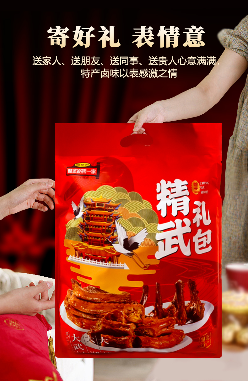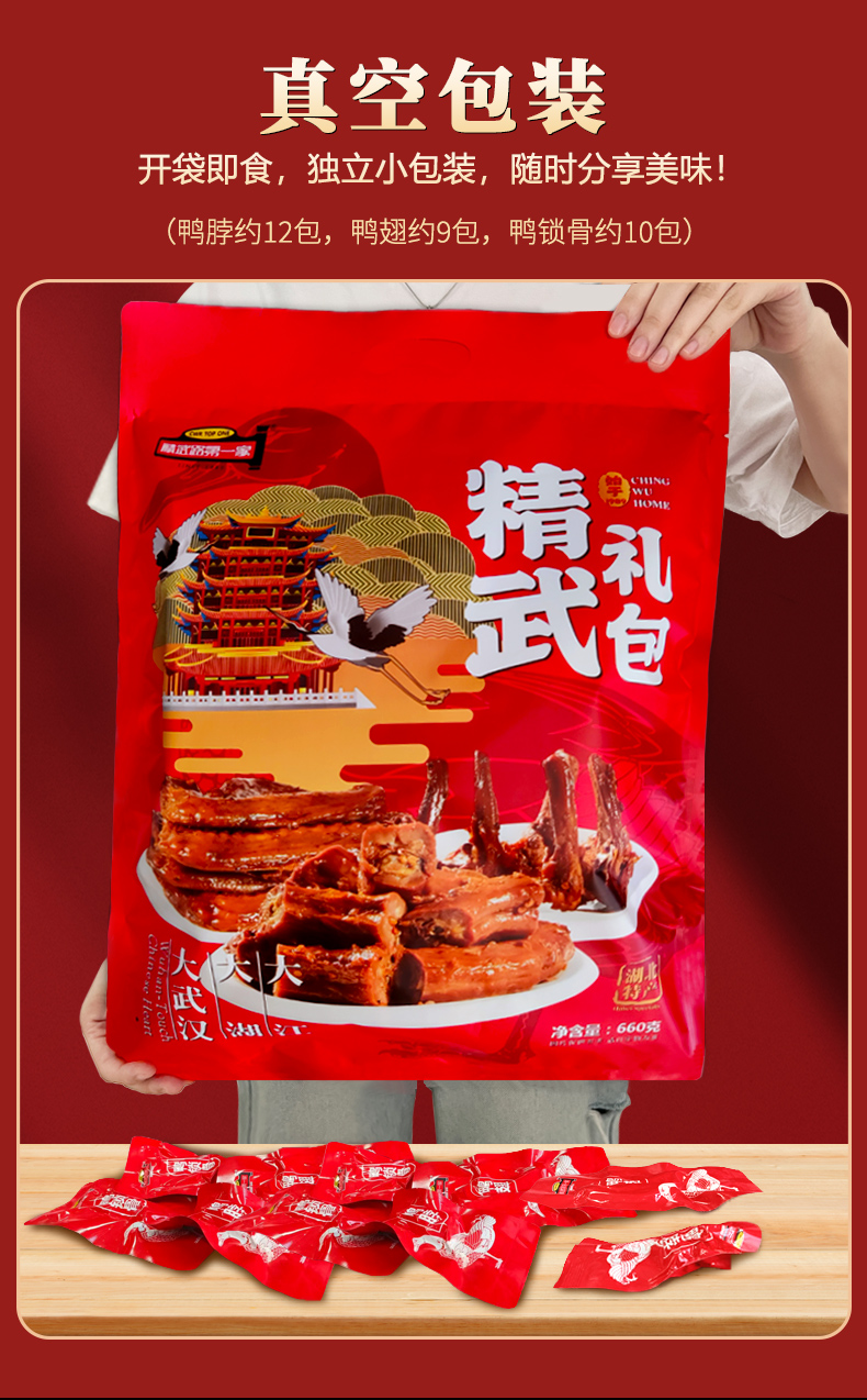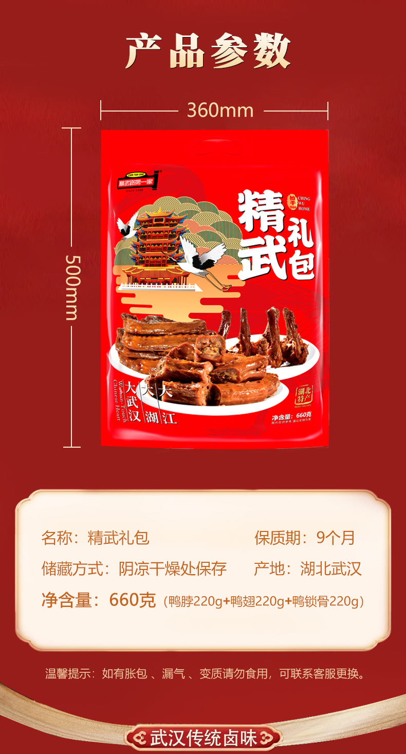 【武汉】江城百臻精武特产礼包660g(鸭脖220g、鸭翅220g、鸭锁骨220g)