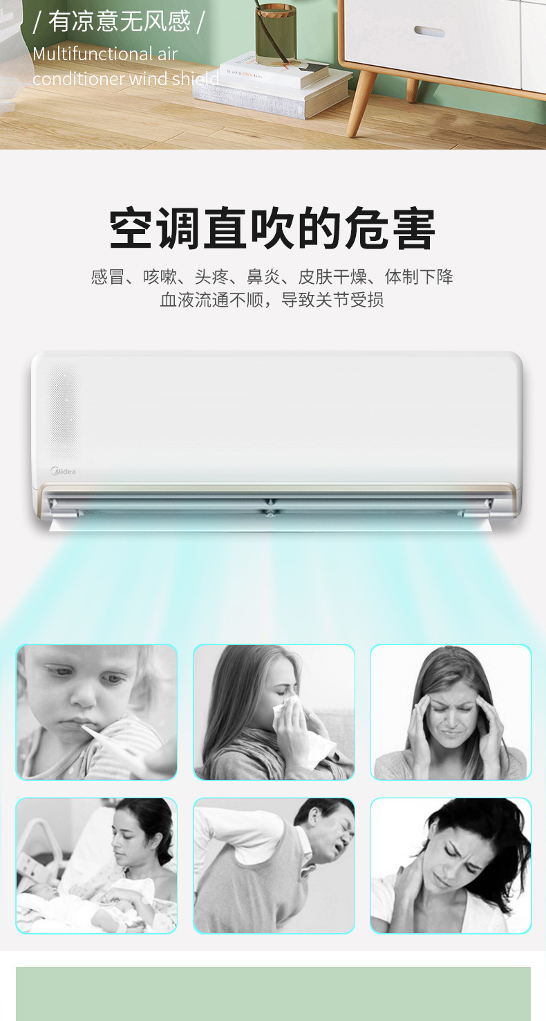 【晚间睡觉!避免直吹】空调挡风板家用导风透气遮风板月子防直吹导风挡风罩挂机防风挡板。ry