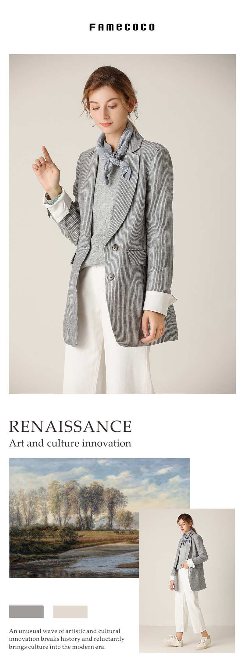 - Famecoco作为中国本土设计师品牌之一的她,创建于美丽的时尚花都广州,自2013年创立以来,一直致力于打造优雅、知性、文艺的穿着理念。