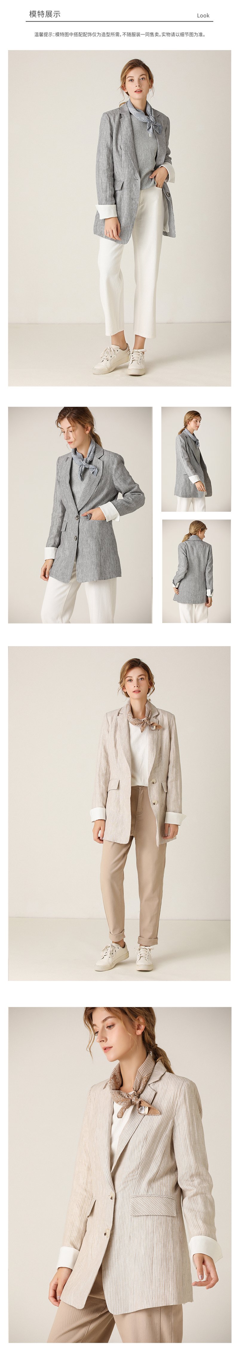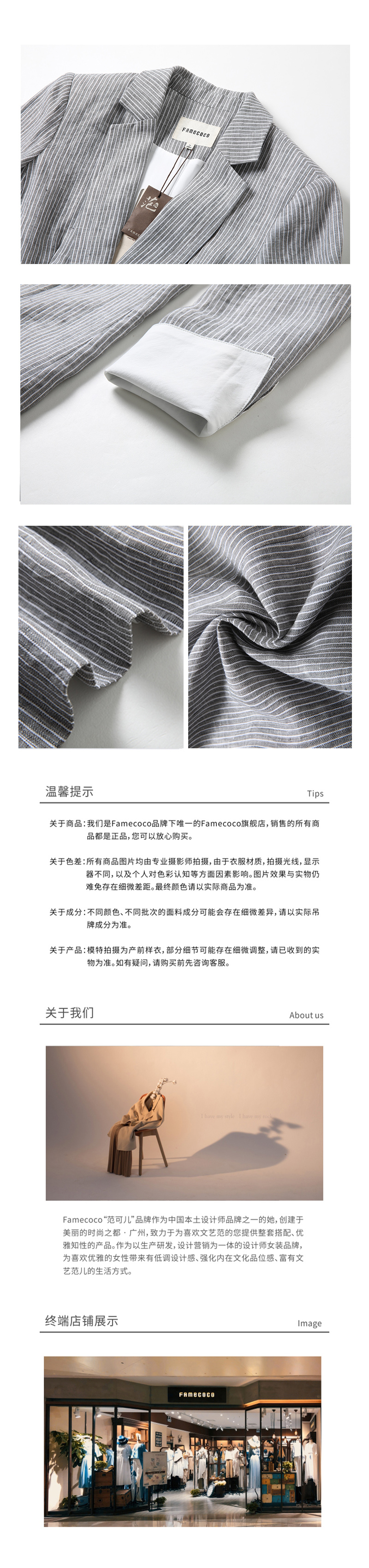 famecoco范可儿条纹西装长袖短外套F201AB026