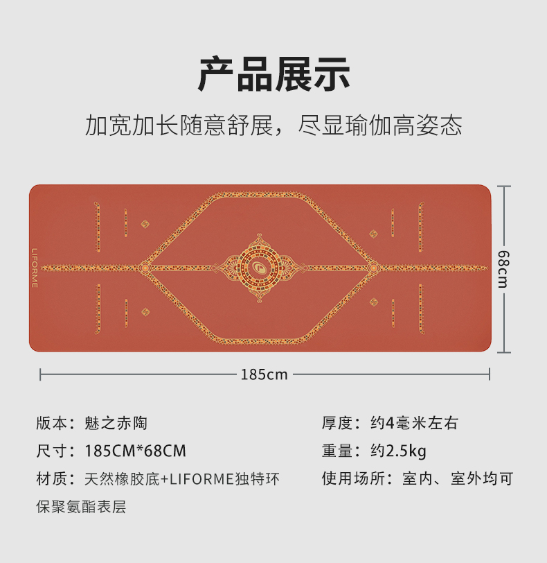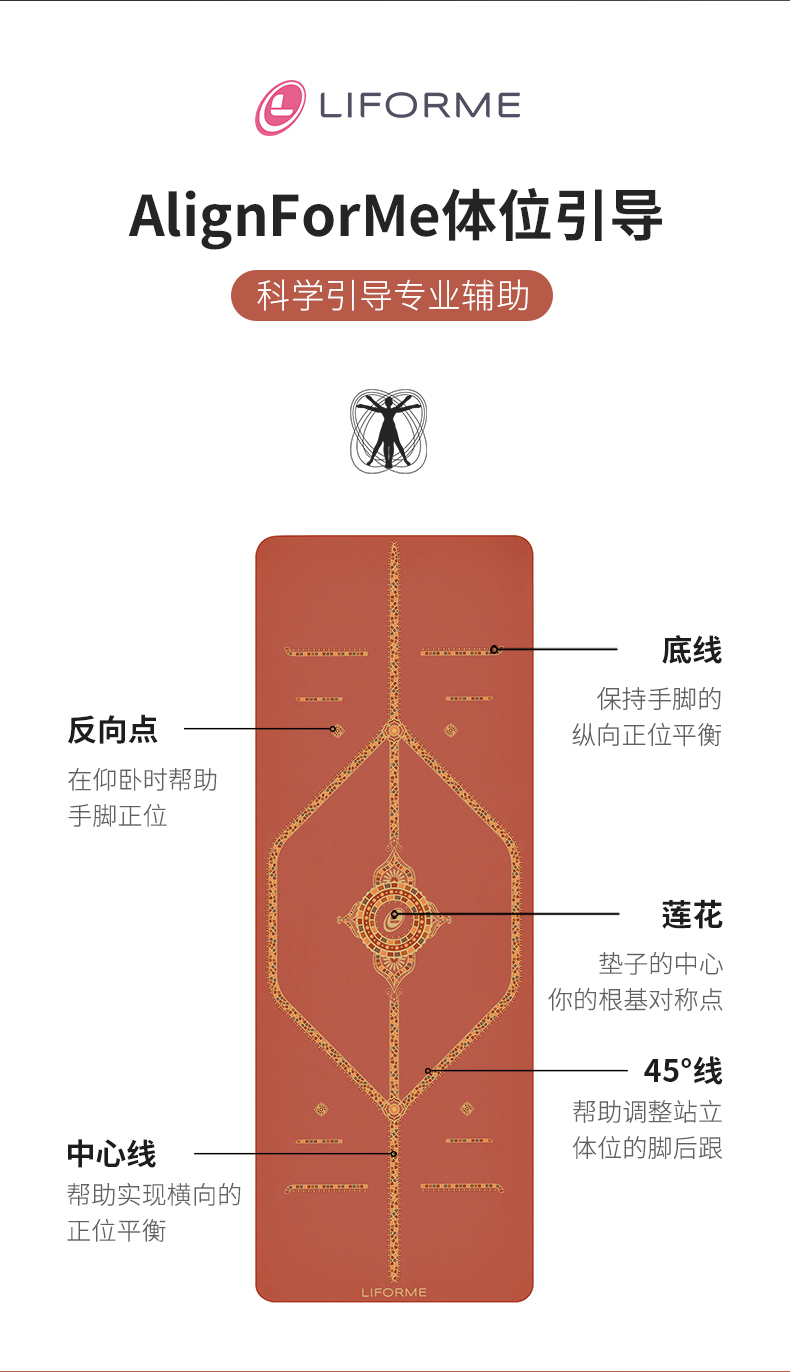 LIFORME瑜伽垫|魅之赤陶 Tantalizing Terracotta 天然橡胶吸汗防滑体位线