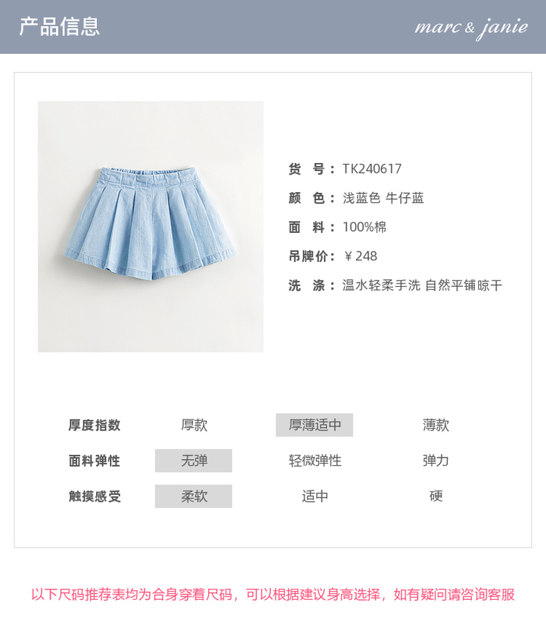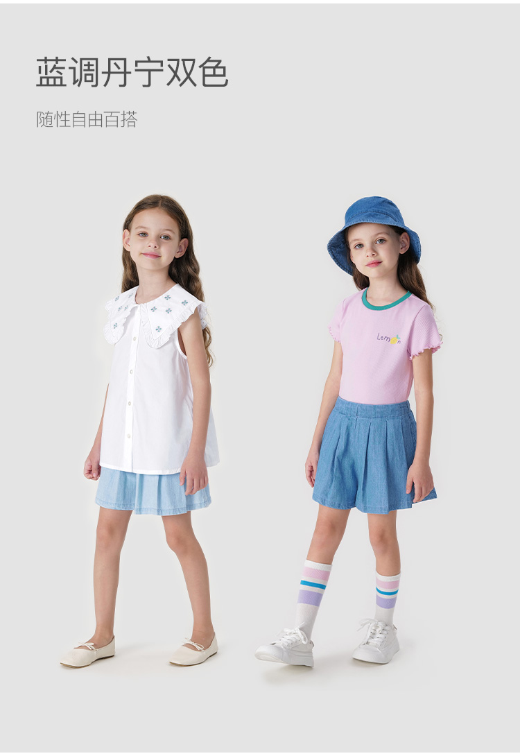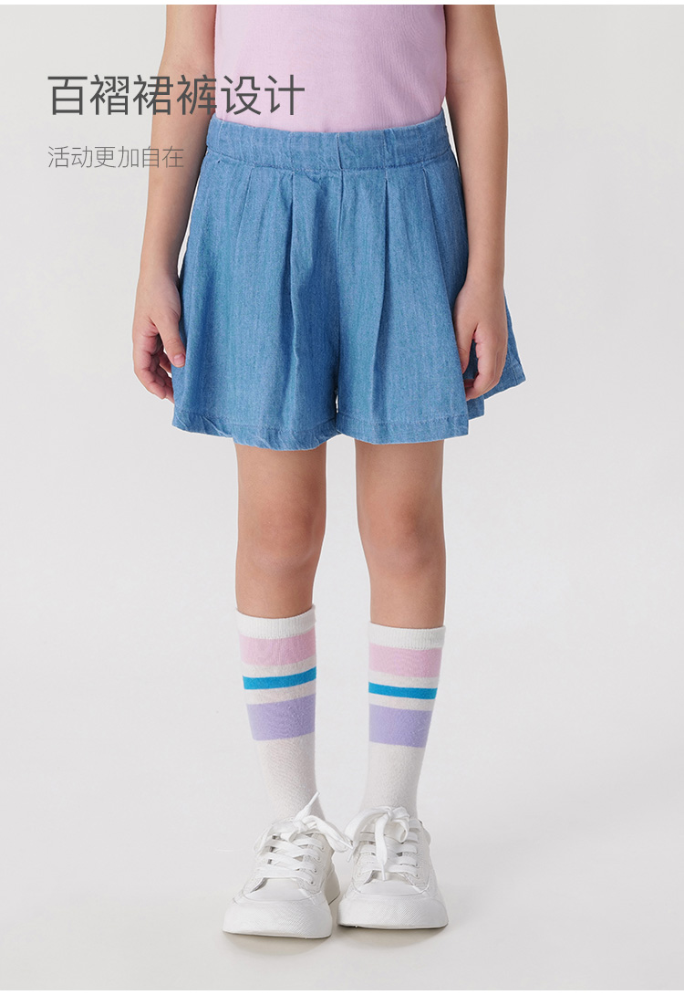马克珍妮女童甜美A字百褶牛仔裙裤 儿童纯棉裤子夏装新款240617